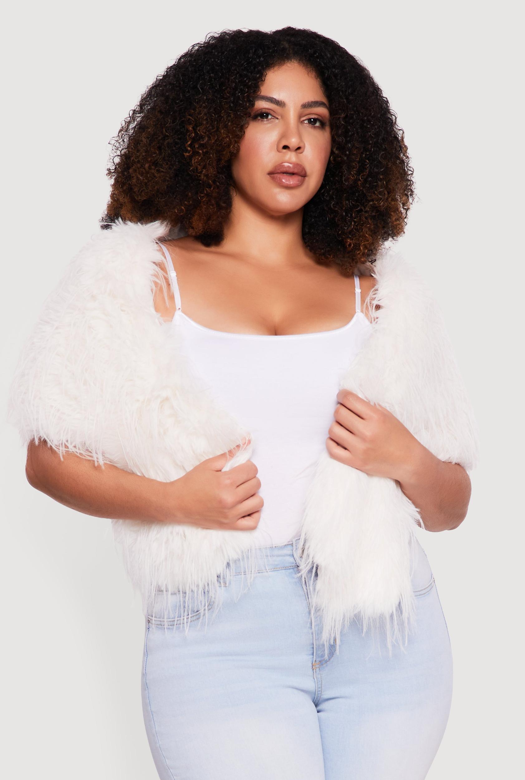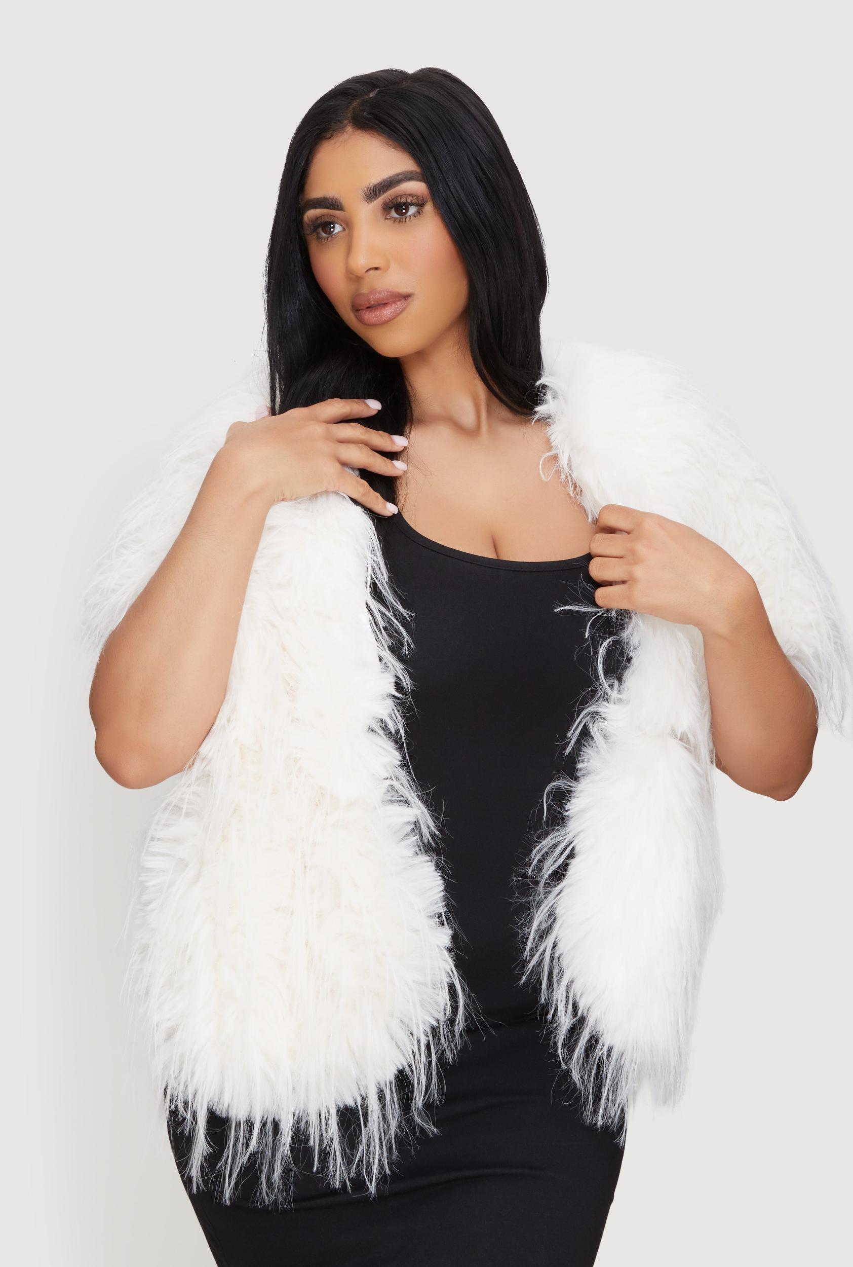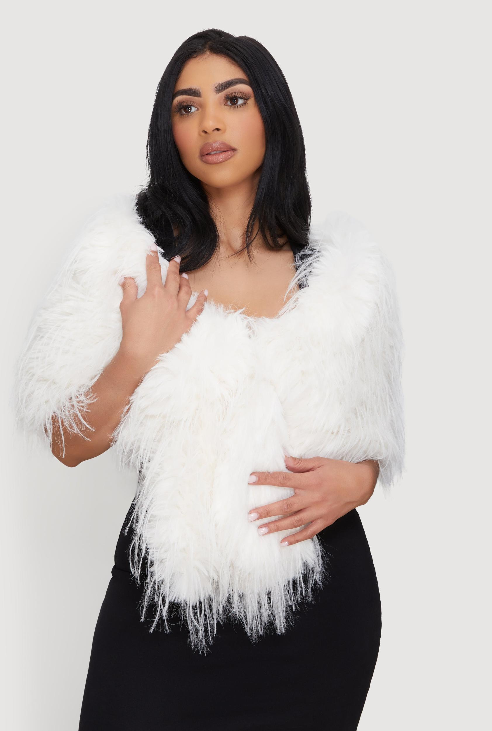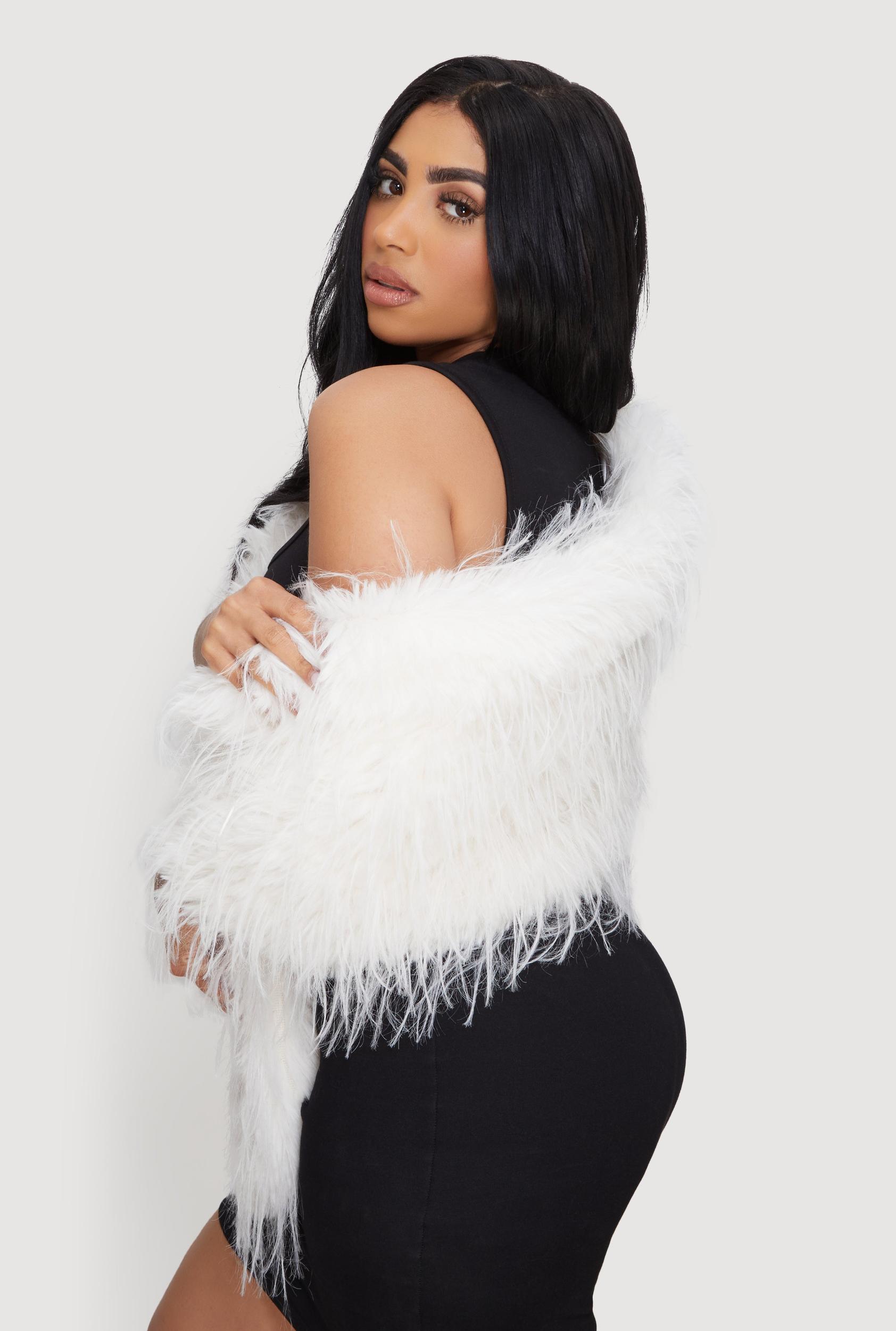 Turn heads and stay cozy with this Off The Shoulder Shaggy Faux Fur Wrap Shawl. Designed with a timeless classic fit and a flattering off-the-shoulder neckline, this solid-colored faux fur wrap adds a touch of glam to your casual look. The short sleeves and easy hook closure make it effortless to wear, while the plush texture keeps you warm and stylish whether you're out with friends or running errands. Soft and luxurious faux fur for a chic, cruelty-free look Off-the-shoulder neckline highlights your collarbones and adds flirty flair Short sleeves for comfort and ease Secure hook closure for quick and easy styling Solid color for versatile pairing with any outfit Perfect for casual occasions with a fashionable twist Model Pictured Wearing Size NO SIZEHeight 5 ft 2 in, Bust 32 in, Waist 25 in, Hips 40 inFits True To SizeMeasurementsFull Length: 59 inContent and Care Material: 100% Polyester Faux Fur Country Of Origin: China Rainbow Item Number 3195067445313 WHITE - 3195067445313010