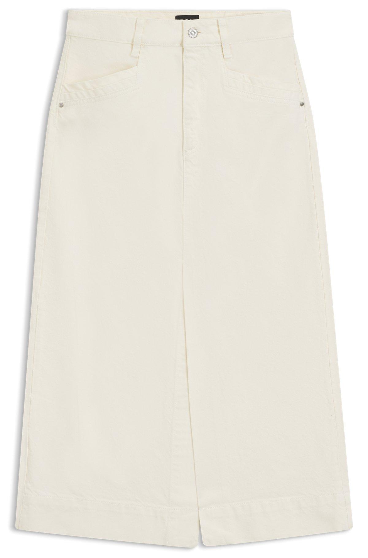 Clean and crisp, this midi-length BOSS Womenswear skirt is a casual must. Off-white rigid denim. Slit details and tailoring-inspired pockets.