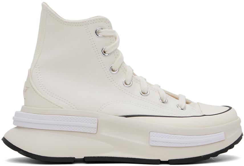 High-top canvas sneakers in off-white.