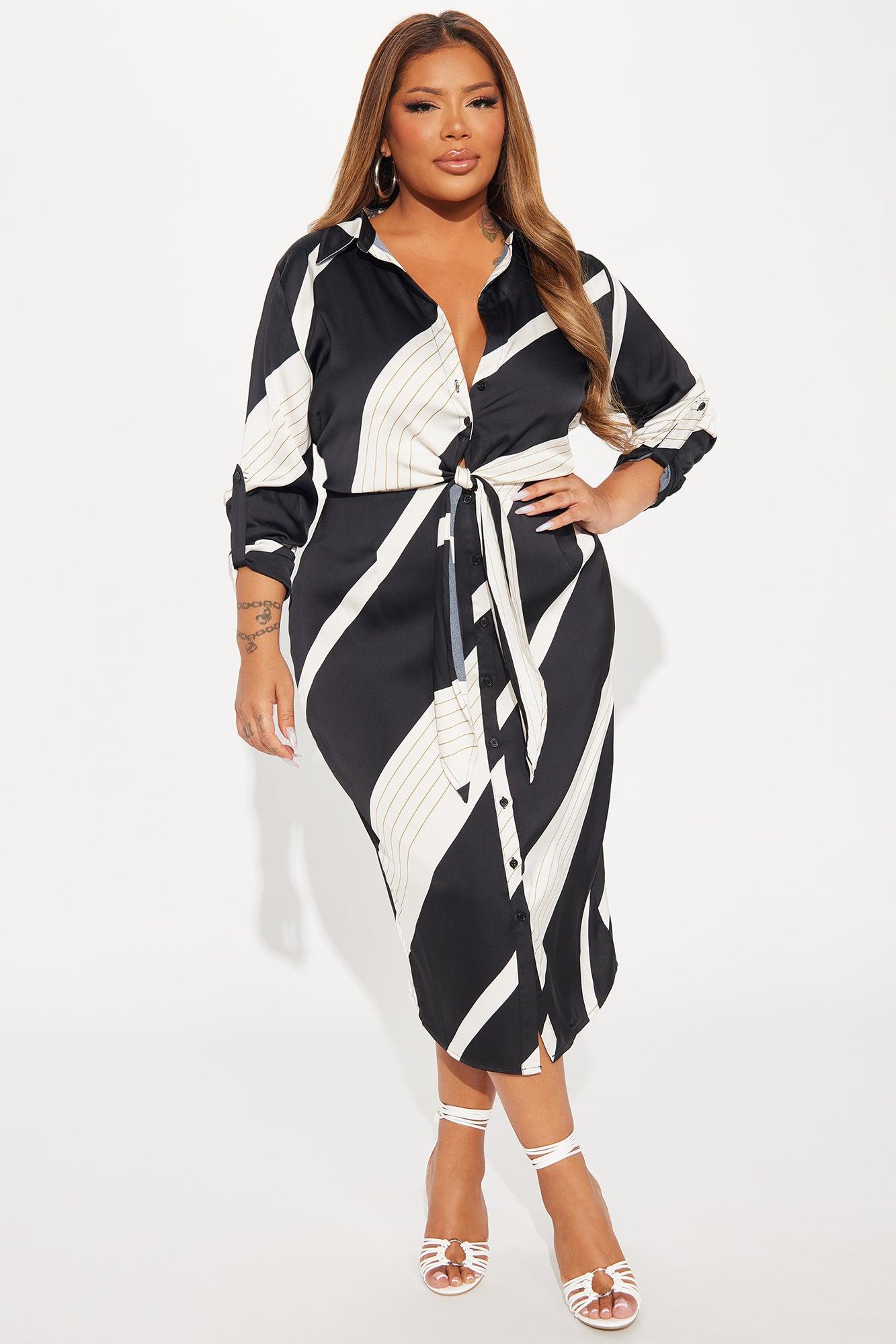 Office Elegance Satin Midi Dress - Black/White