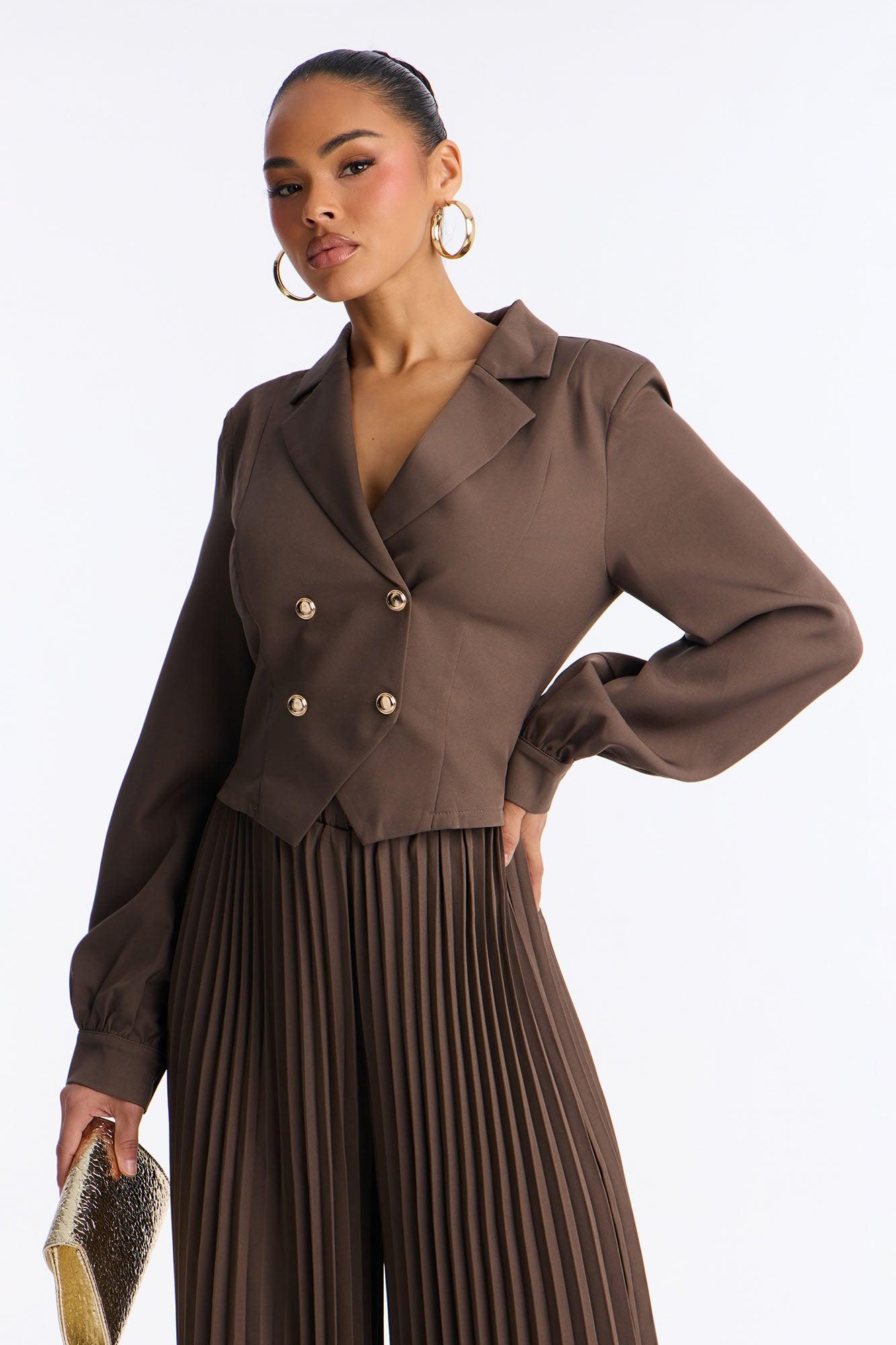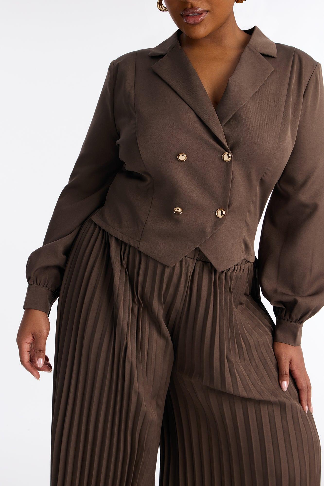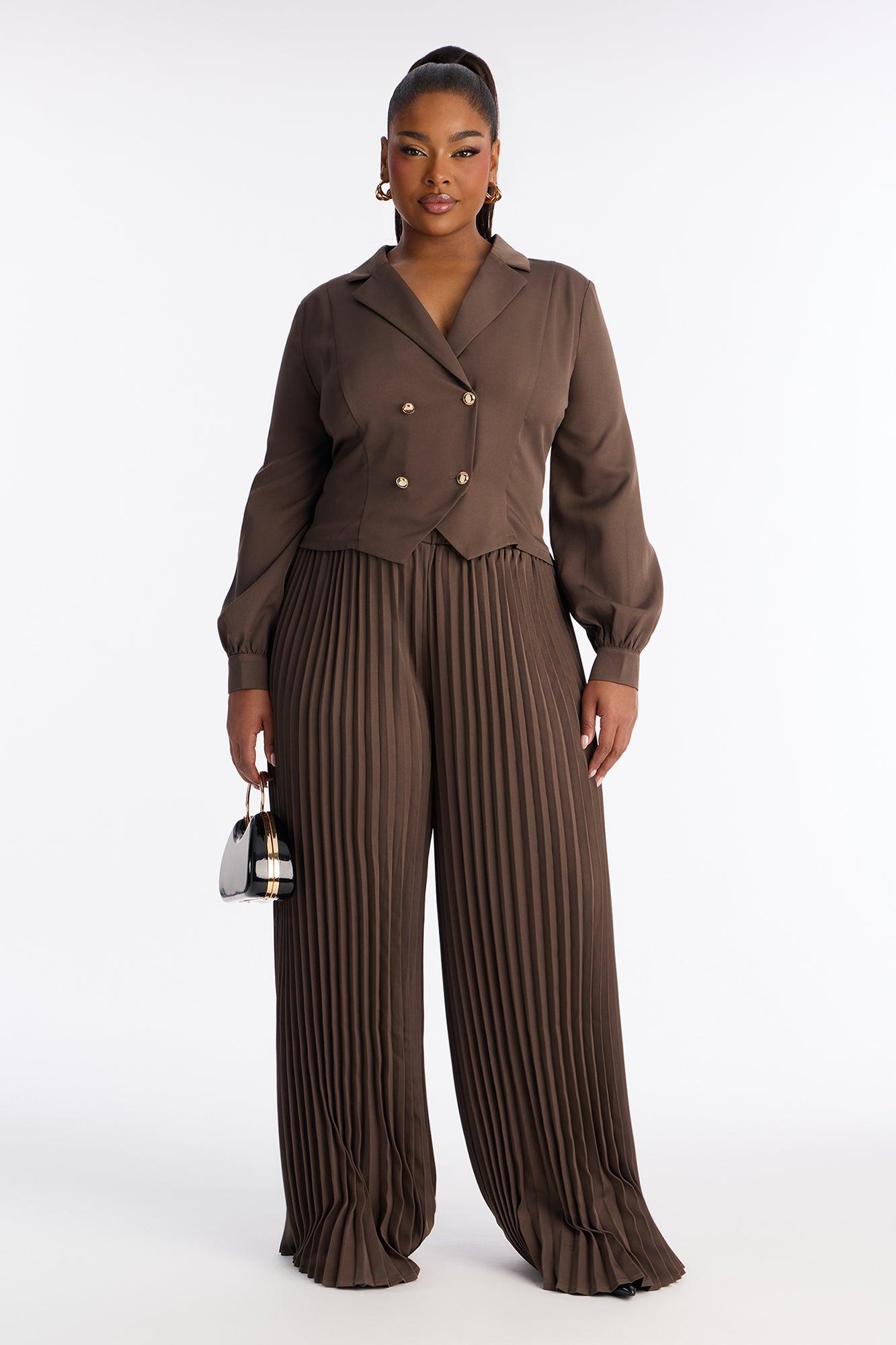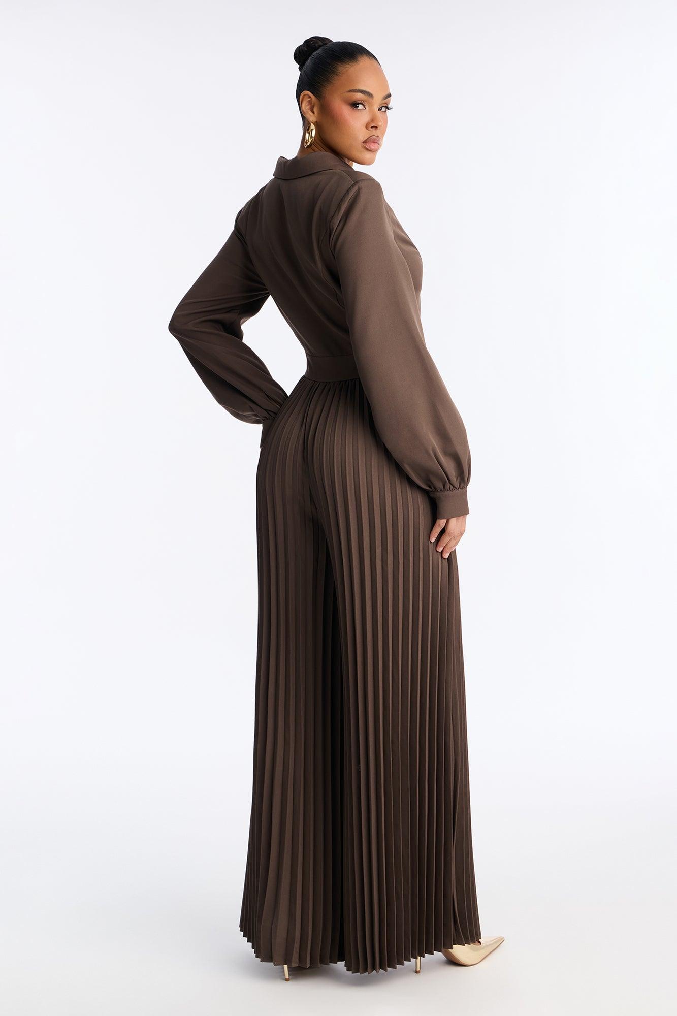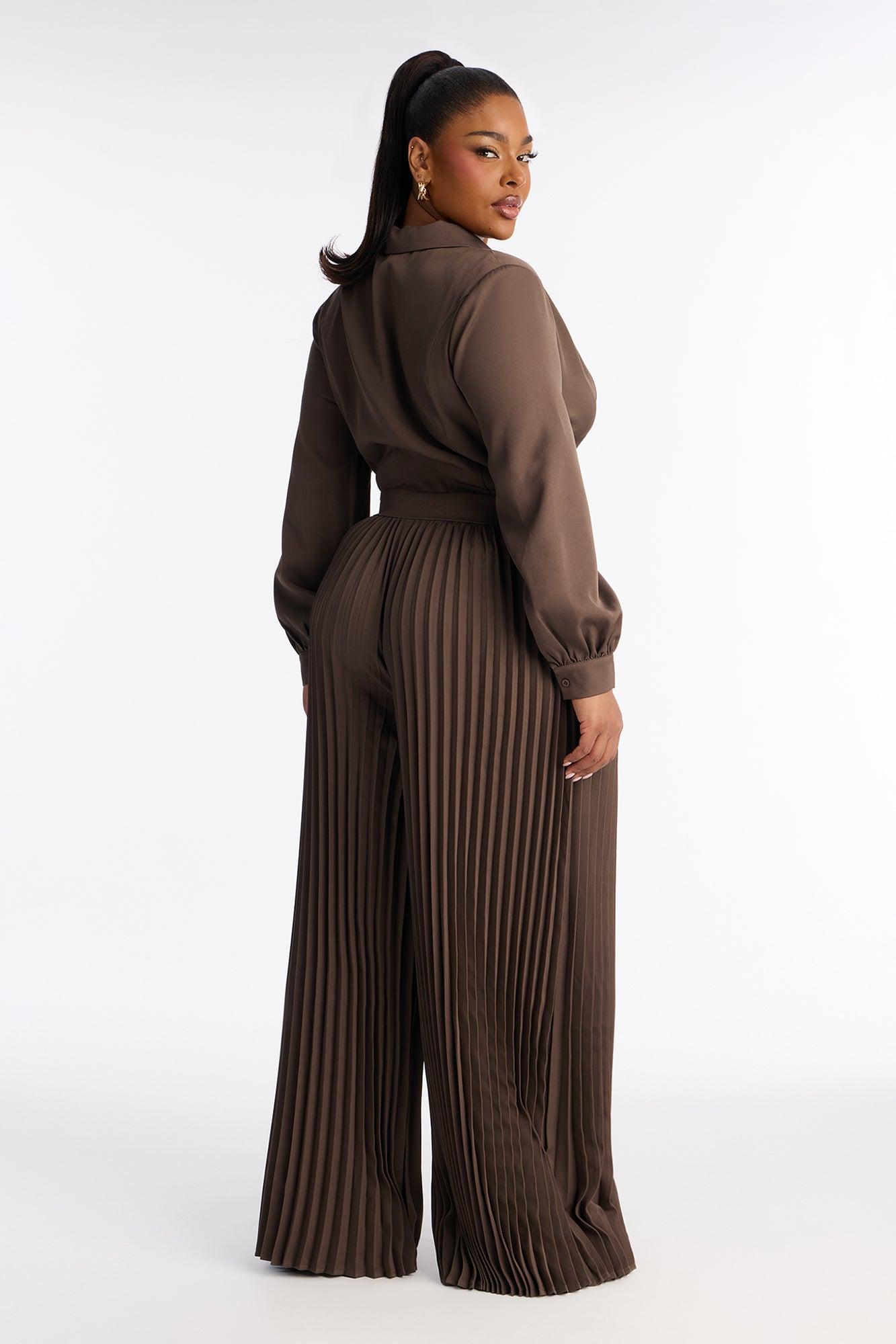 Office Ready Pleated Wide Leg Jumpsuit - Brown Female