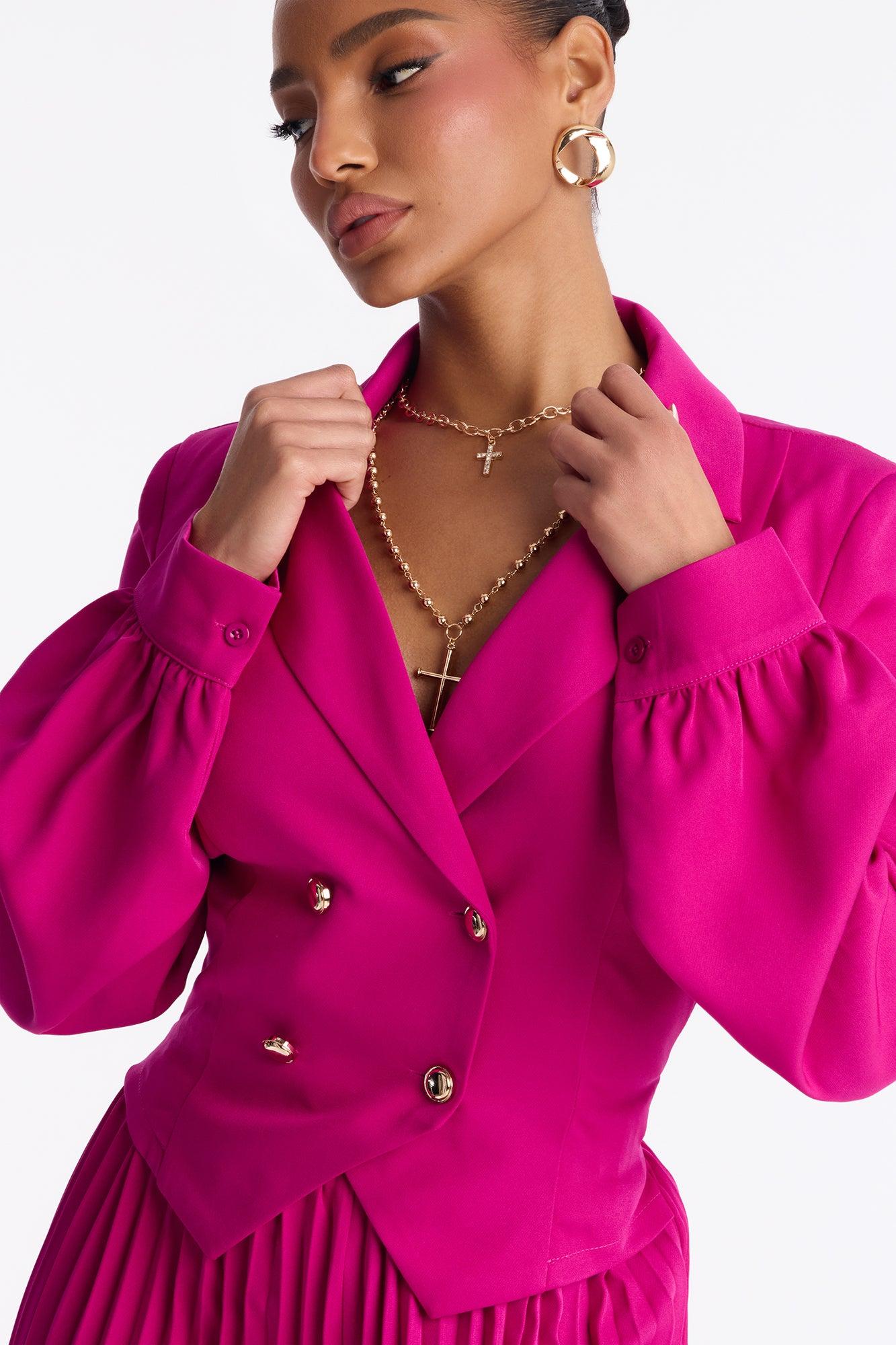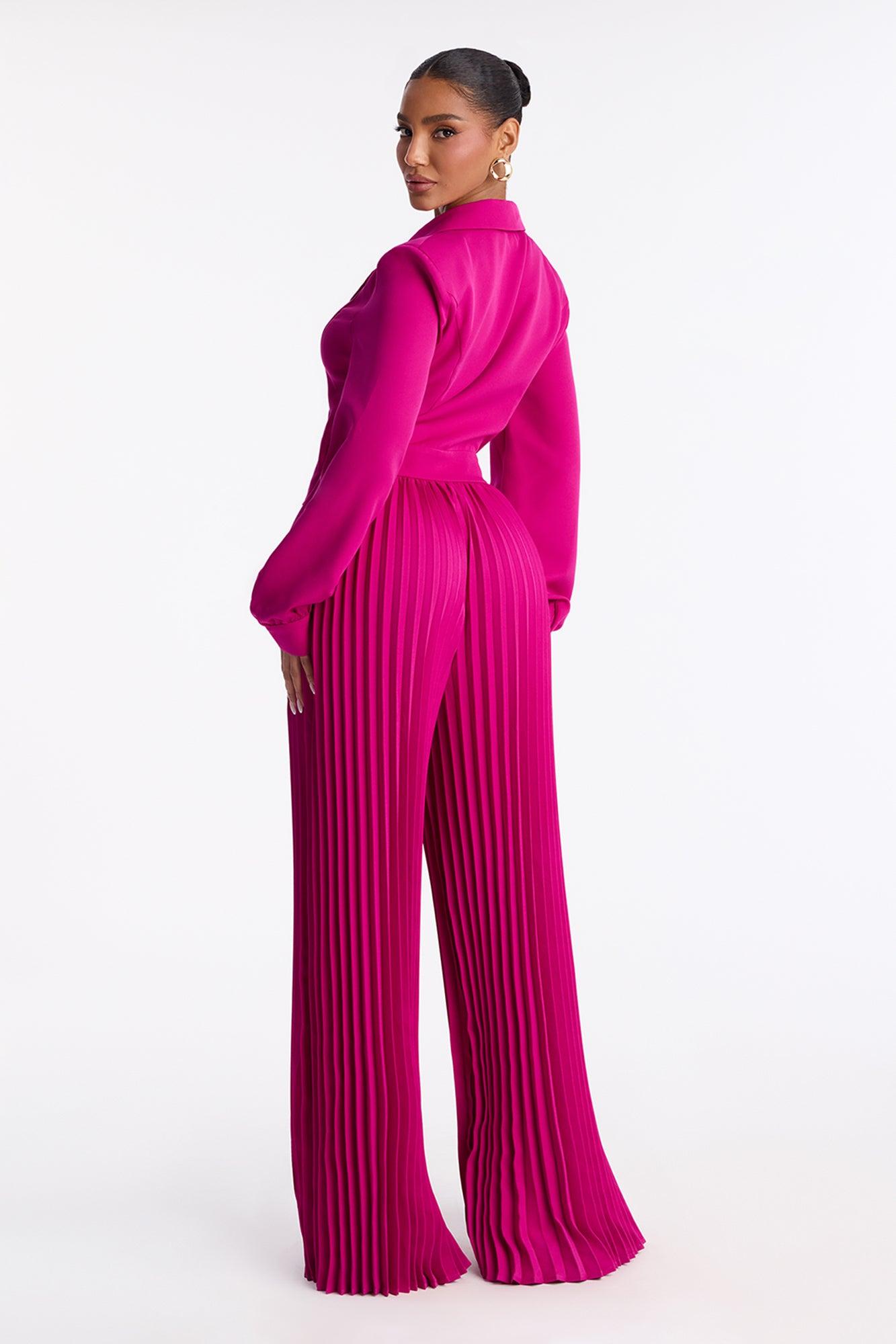 Office Ready Pleated Wide Leg Jumpsuit - Fuchsia Female