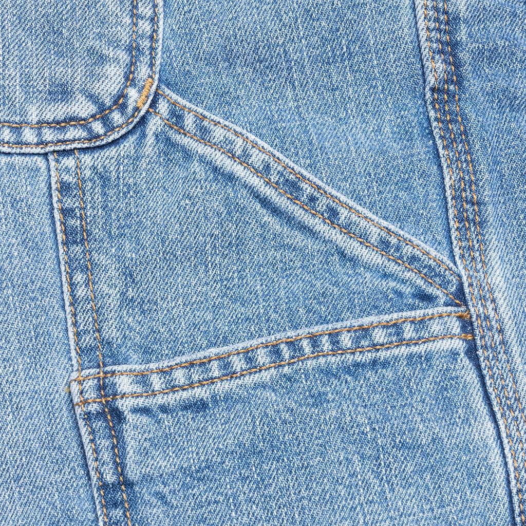 The OG Single Knee Short from Carhartt WIP is constructed from heavyweight cotton denim and designed to have a loose fit with a regular waist. Featuring triple stitching, tool pockets, and a hammer loop for utilitarian edge. Finished with a classic zip-fly, 4-pocket design, and a signature woven Carhartt WIP label on the rear pocket. 100% Cotton Loose fit Regular waist Triple stitched Zip-fly with metal button closure Tool pockets and hammer loop 4-pocket design Woven Carhartt WIP label Style No: 034872-01UR I034872 BLUE