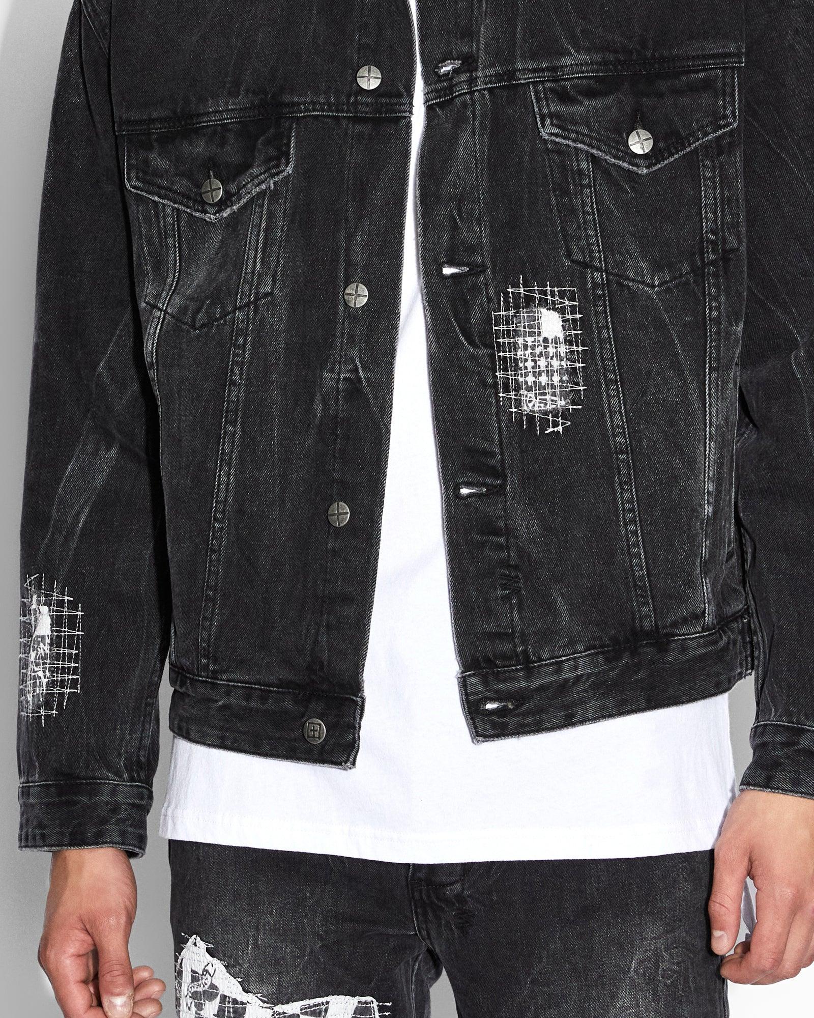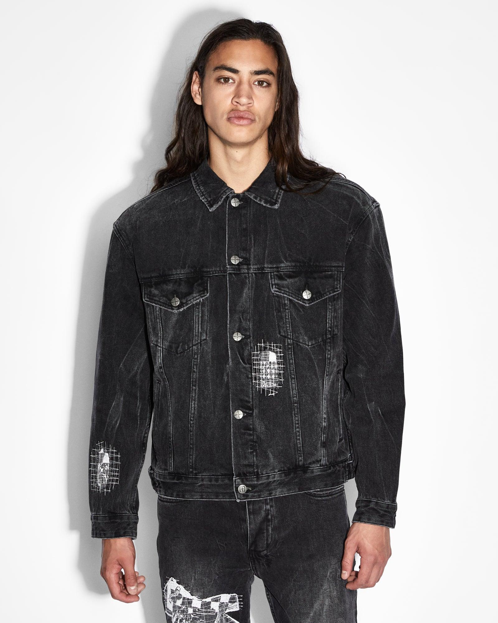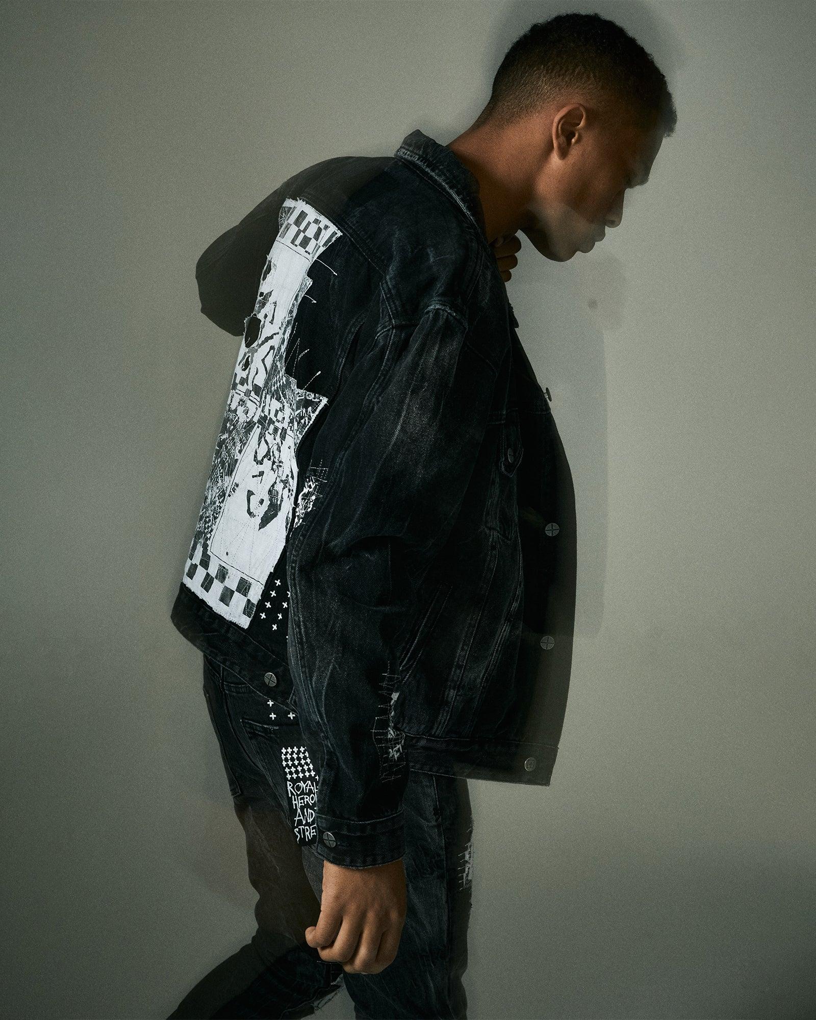The Oh G Jacket Streets features distressed repair patches on the front and back, light grinding, 4x4 cross embroidery on the back, printed t-box and branded hardware. This button through trucker jacket is constructed from a premium rigid denim in a faded black wash. Designed as an oversized jacket, this style has branded hardware and four pockets. Match with the 'Chitch Streets for a full denim on denim look.Cool machine wash with like colours, wash inside out, do not bleach, remove promptly after wash, do not tumble dry, cool iron on reverse, do not iron directly onto prints or metal hardware, colour may transfer onto other garments and upholstery.