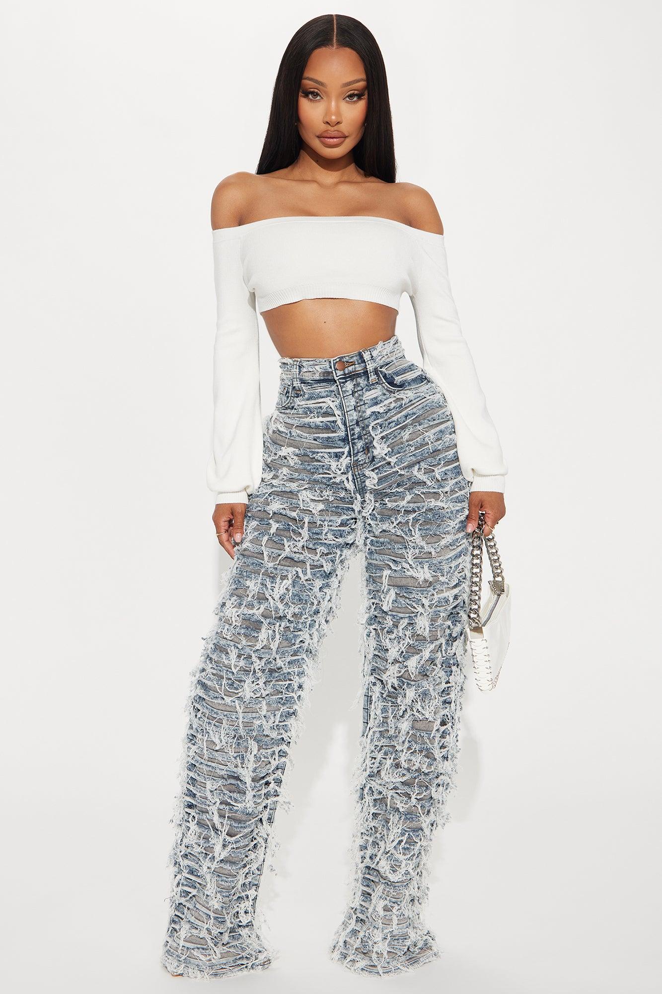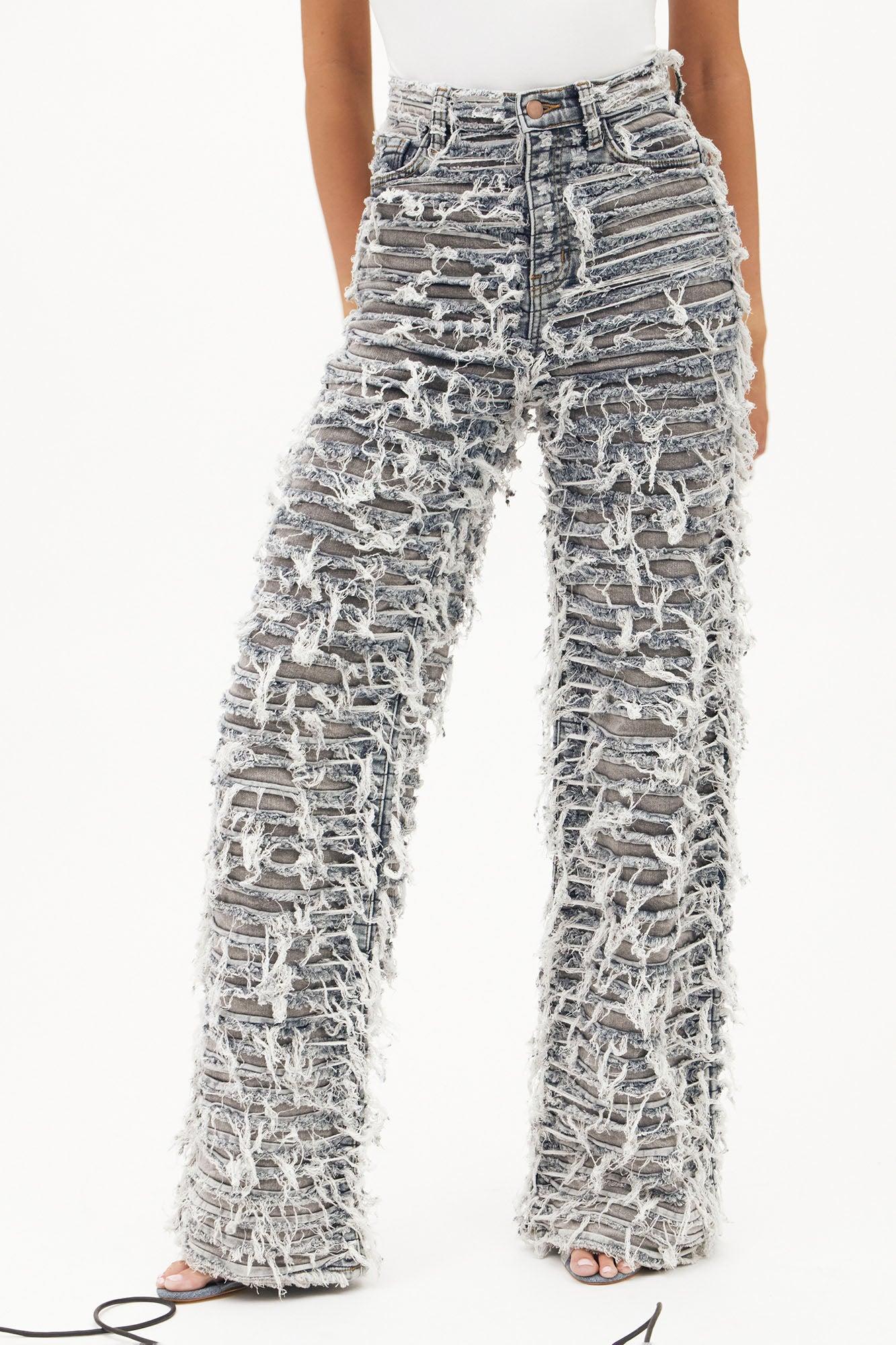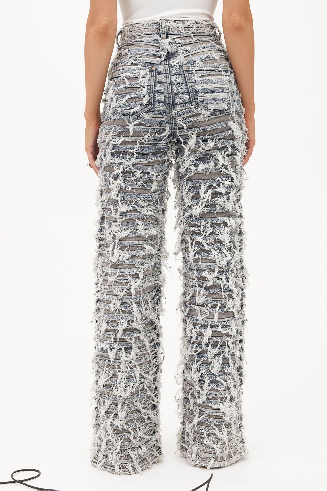 Available In Grey/combo. Straight Leg Jean 5 Pocket Shredded Two Tone 34" Inseam 12" High Rise Low Stretch Disclaimer: Due To The Distressing and wash Process, Each Garment Is Unique Self: 98% Cotton 2% Spandex Contrast: 97% Cotton 3% Spandex Imported California Proposition 65WARNING: Cancer and Reproductive Harm - www.P65Warnings.ca.gov.