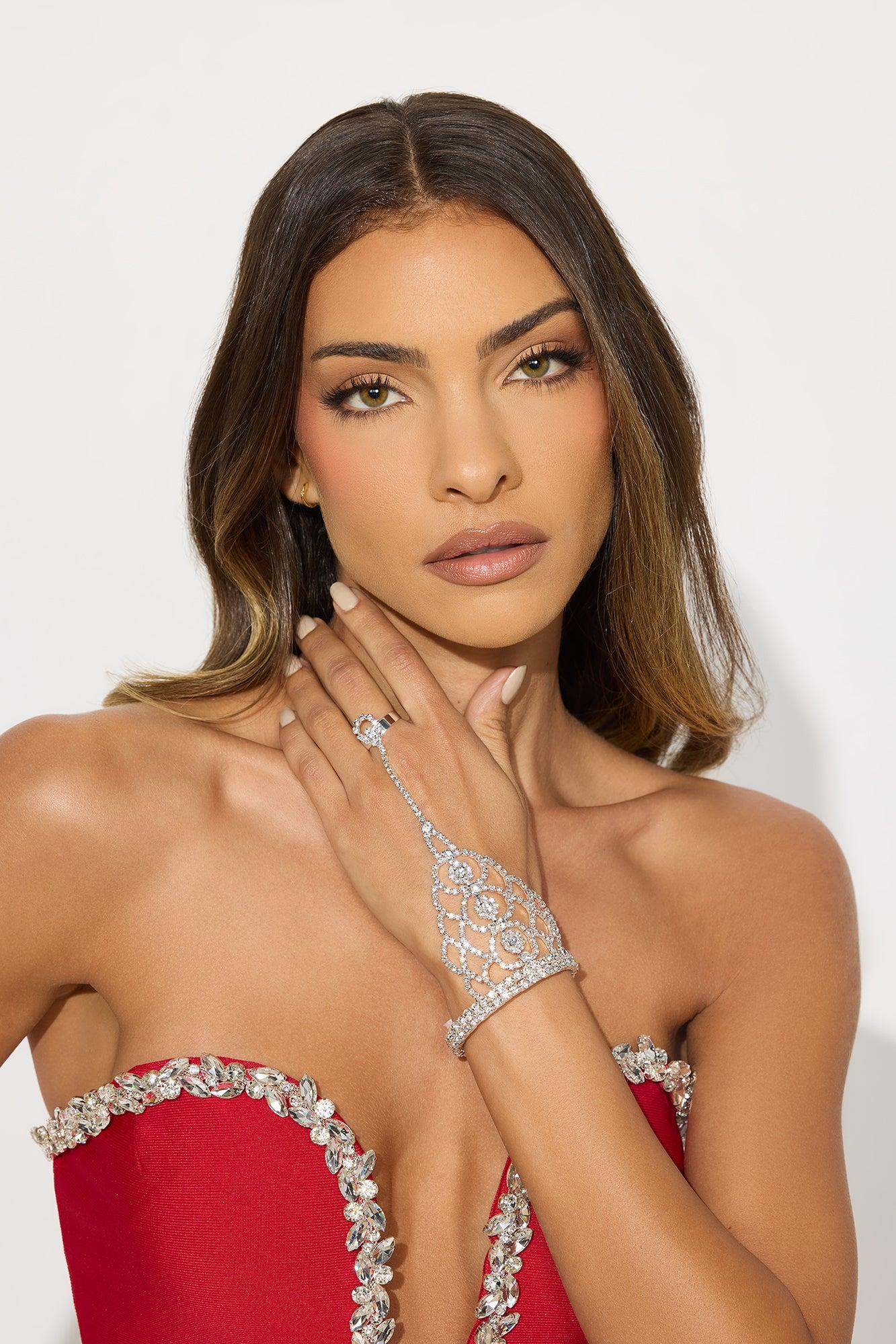 Oh The Drama Rhinestone Handchain - Silver Female