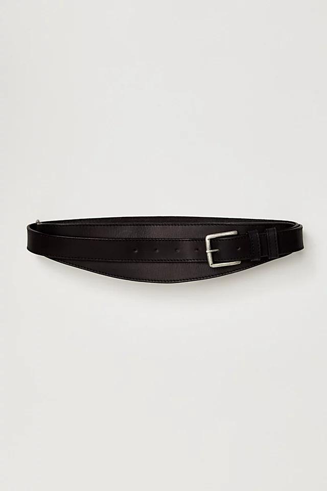 **Features:** Leather fabrication, adjustable fit, buckle closure, waist belt style