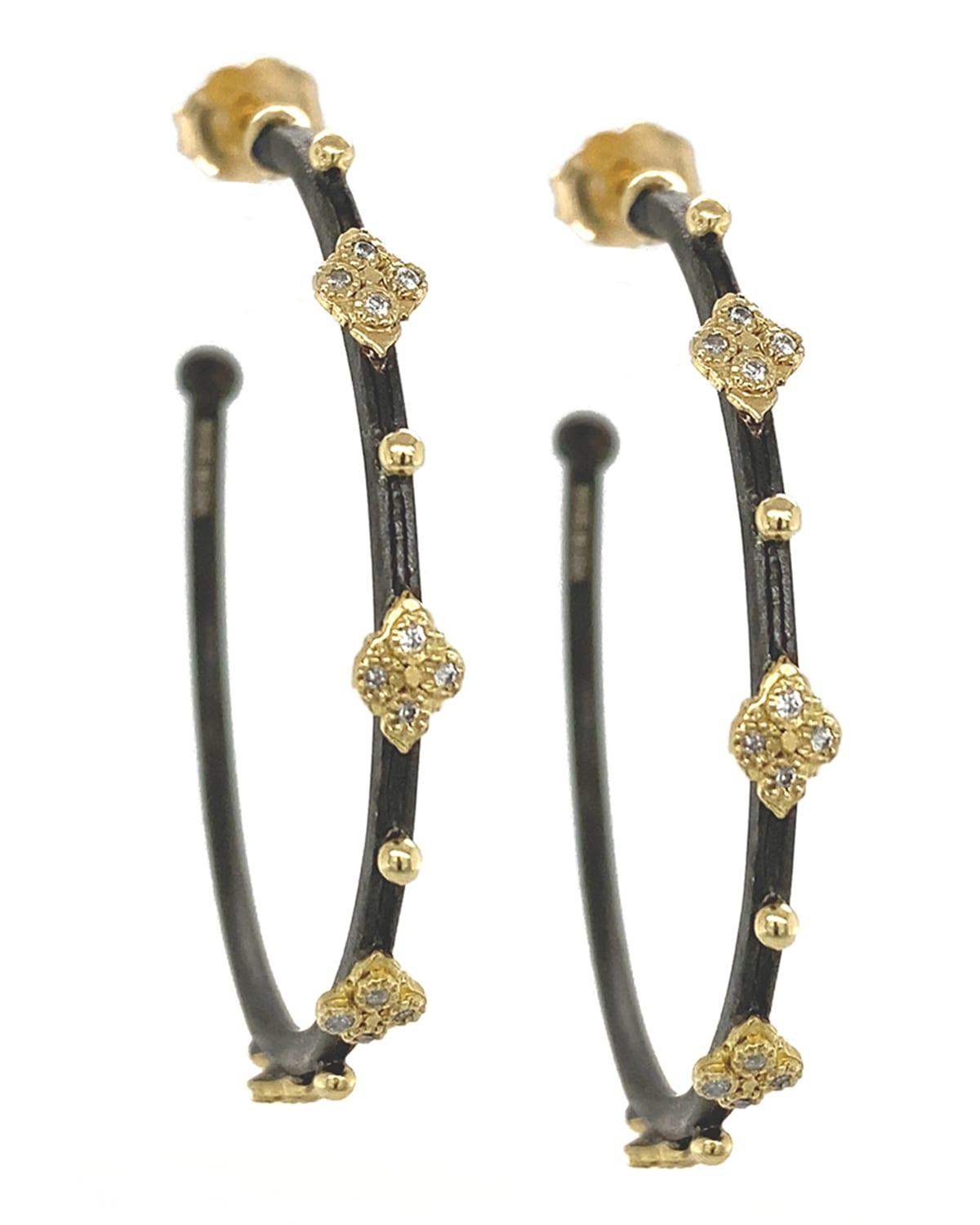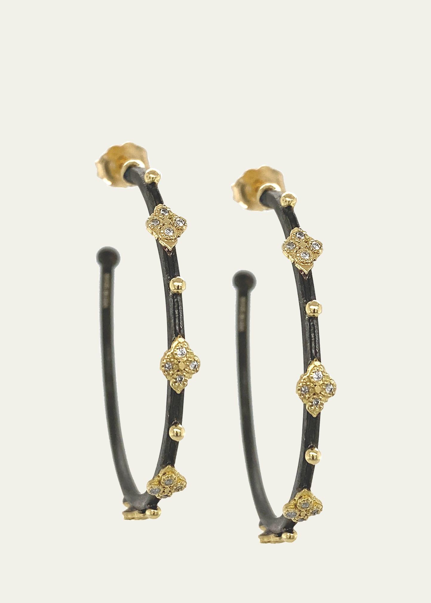 From the Old World Collection. Handcrafted of blackened sterling silver, these captivating hoop earrings are studded with 18K yellow gold details that shimmer with round white diamonds. Diamonds, 0.16 tcw Sterling silver/18K yellow gold Post back Made in USA SIZE Diameter, about 1.38. Lsd Jewelry - Jewelry Lsd Mp > Armenta > Saks Fifth Avenue > Barneys. Armenta. Color: Yellow Gold.