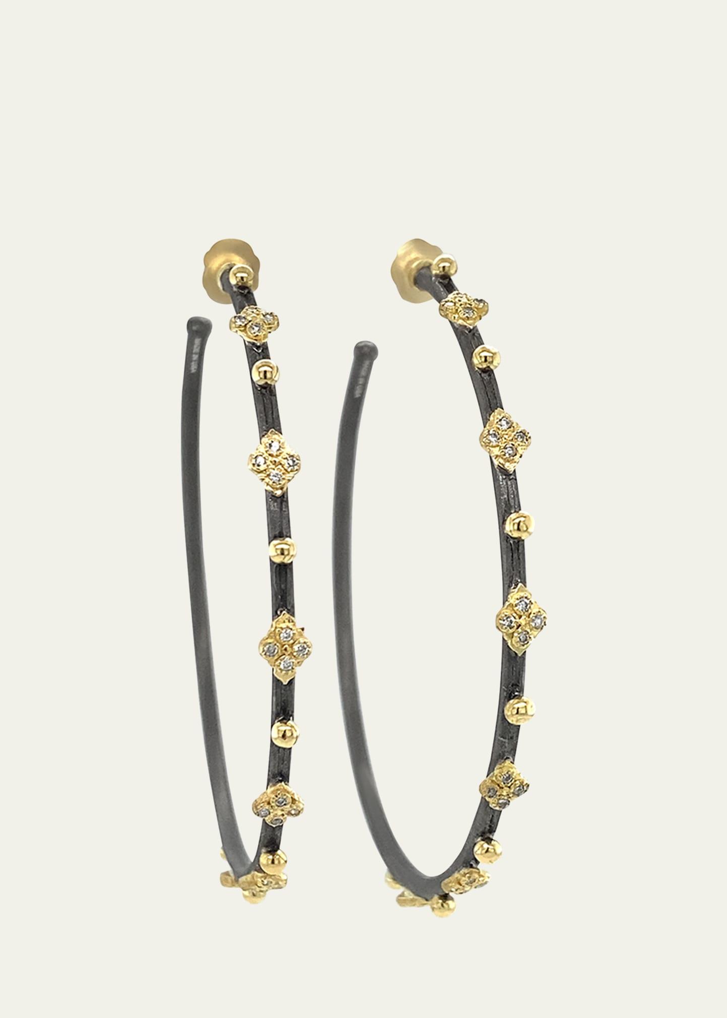 From the Old World Collection. Handcrafted of blackened sterling silver and 18K yellow gold, these remarkable hoop earrings are embellished with clusters of sparkling white diamonds. Diamonds, 0.24 tcw Sterling silver/18K yellow gold Post back Made in USA SIZE Diameter, about 2. Lsd Jewelry - Jewelry Lsd Mp > Armenta > Saks Fifth Avenue > Barneys. Armenta. Color: Yellow Gold.