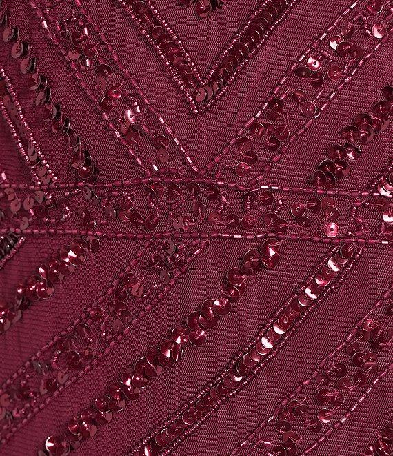 Oleg Cassini Beaded Mesh V-Neck Sleeveless Gown