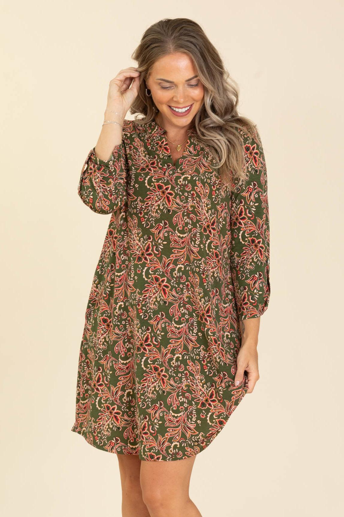Material and Care 94% Polyester 6% Spandex Hand Wash Cold Hang/Line Dry Size and Fit Small: Bust 38" Waist 40" Length 36" Medium: Bust 40" Waist 42" Length 36.5" Large: Bust 42" Waist 44" Length 37" X Large: Bust 44" Waist 46" Length 37.5" 2XL: Bust 48" Waist 50" Length 38" 3XL: Bust 50" Waist 52" Length 38.5" Erica is 5’7” and wearing her true size small Courtney is 5’8” and wearing her true size large
