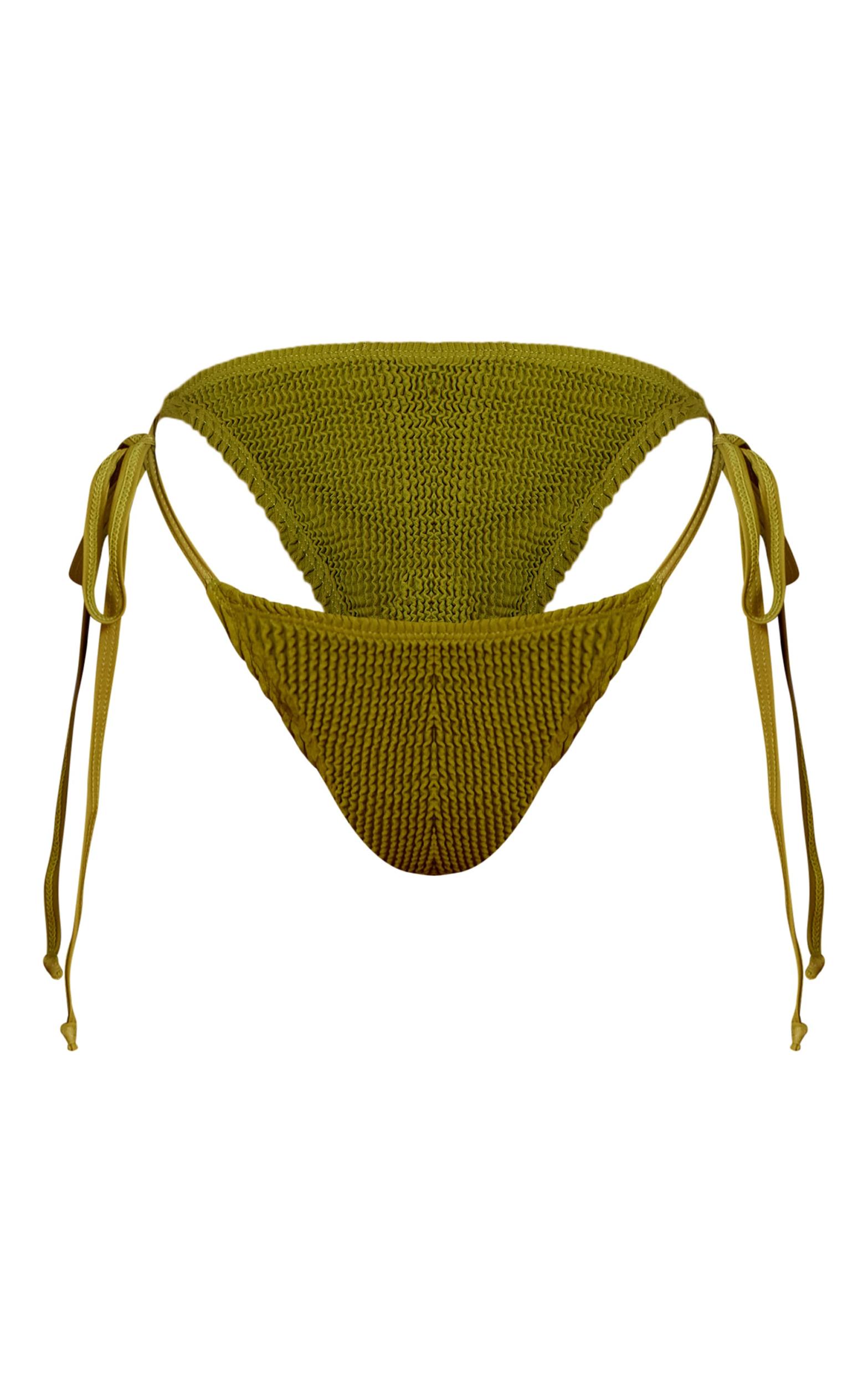 Complete your set with the olive crinkle double tie side bikini bottoms. Designed with an olive hie material, a crinkle texture and adjustable ties, these bottoms combine comfort with standout style. Team with the coordinating top for a cohesive look.Length approx 29cm/11.5inch (Based on sample size S)Model wears size SModel Height - 5ft 7inchp]:!mb-4inch>Brand: PrettyLittleThingCategory: SwimwearProduct type: Tanga Bikini BottomColor: OliveMaterial: Crinkle SwimOccasion: Day
