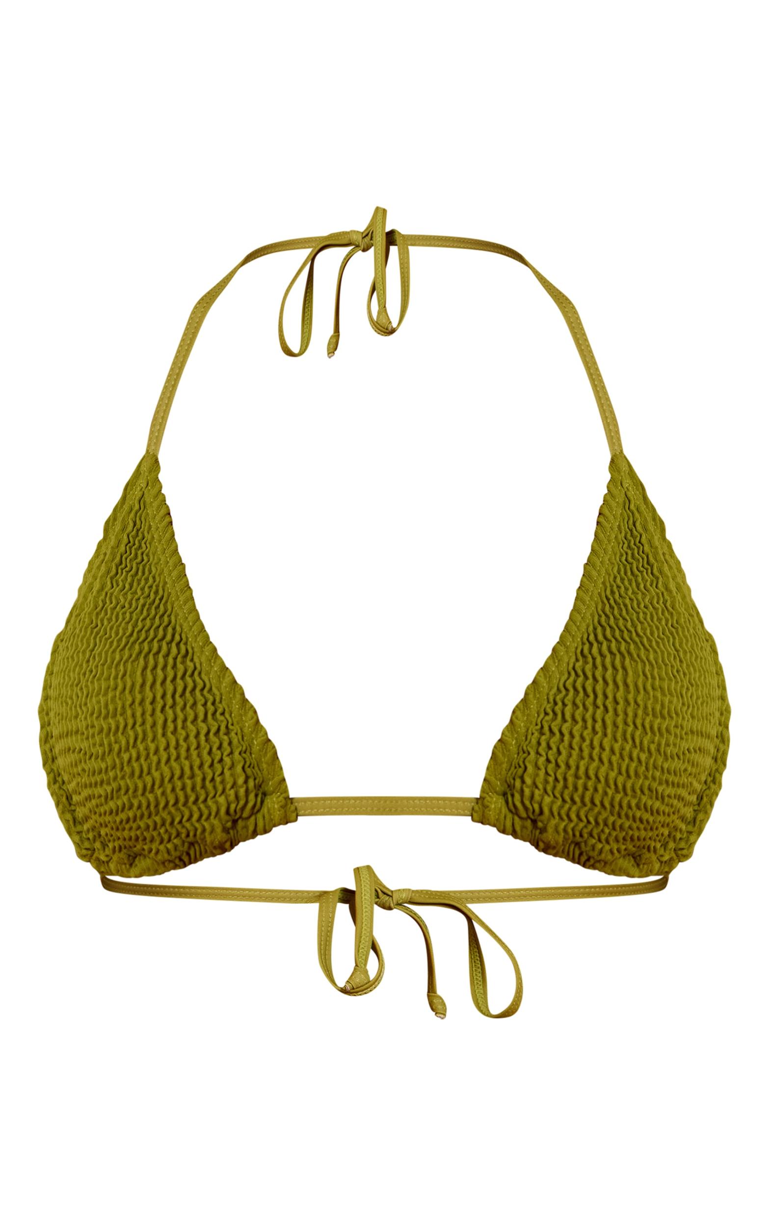 Keep it classic with the olive crinkle triangle tie bikini top. Designed in an olive crinkle material with tie-back fastening, this triangle top offers adjustability and comfort. Pair with matching bottoms for a coordinated swimwear set.Length approx 29cm/11.5inch (Based on sample size S)Model wears size SModel Height - 5ft 7inchp]:!mb-4inch>Brand: PrettyLittleThingCategory: SwimwearProduct type: Triangle Bikini TopColor: OliveMaterial: Crinkle SwimOccasion: Day