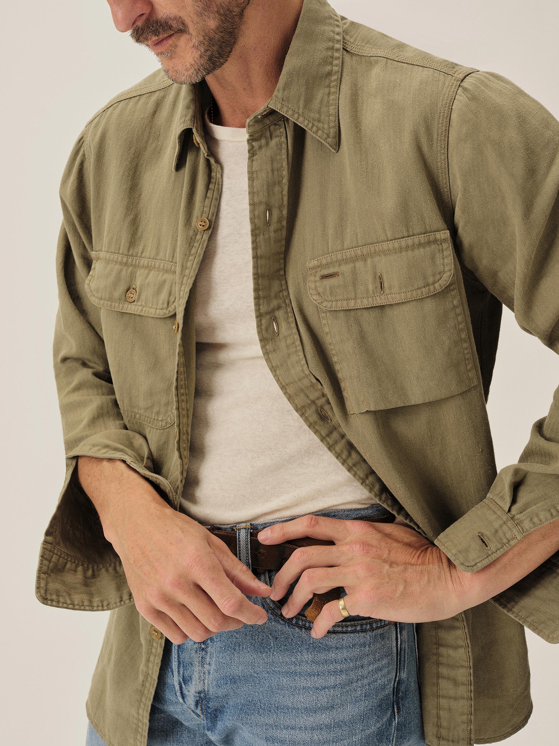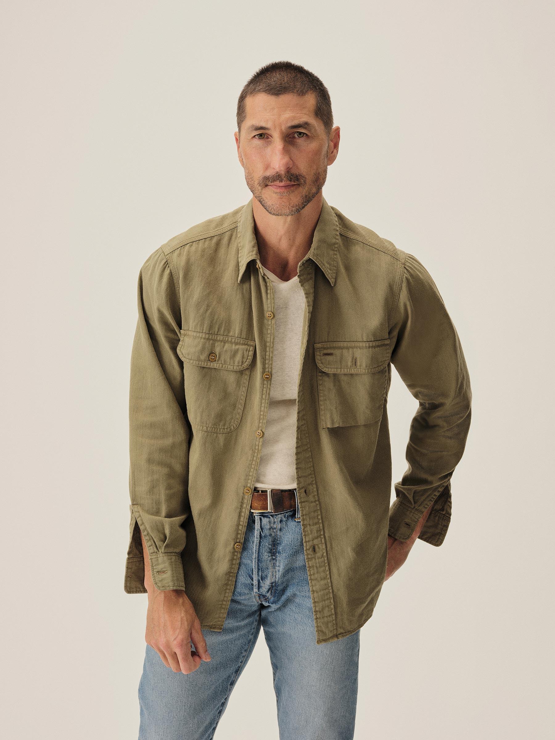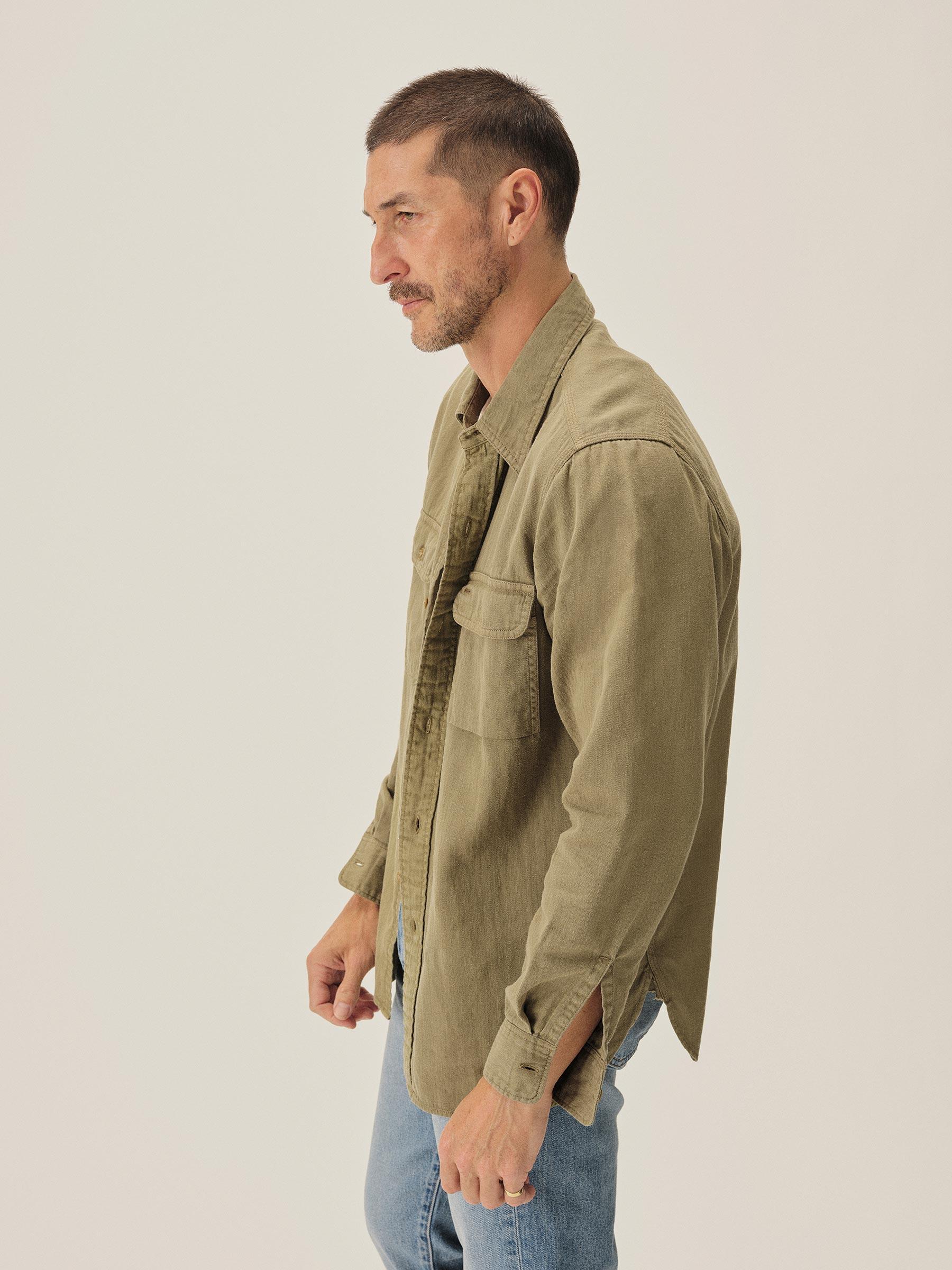 Olive Hemp HBT Soft Pack Station Shirt - Buck Mason- Modern American Classics