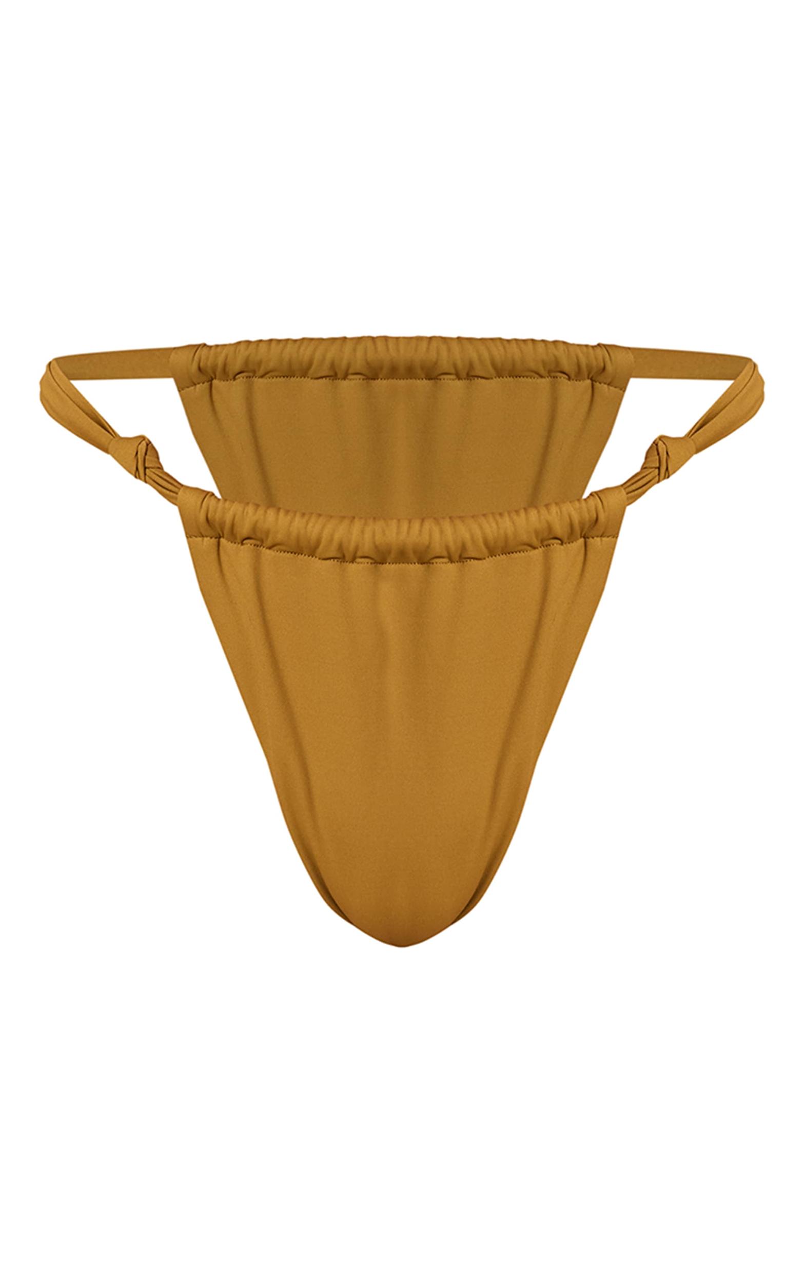 Complete the set with the olive knot detail ruched tanga bikini bottoms. Made from an olive material, they feature knot detailing, a ruched design, and a flattering tanga fit. Style with the matching bikini top and a clutch bag for a fool proof finish.Length approx 28cm/11inch (Based on sample size US 4)Model wears size UK 8/ EU 36/ AUS 8/ US 4Model Height - 5ft 8inchp]:!mb-4inch>Brand: PrettyLittleThingCategory: SwimwearProduct type: Tanga Bikini BottomColor: OliveMaterial: SwimOccasion: Day