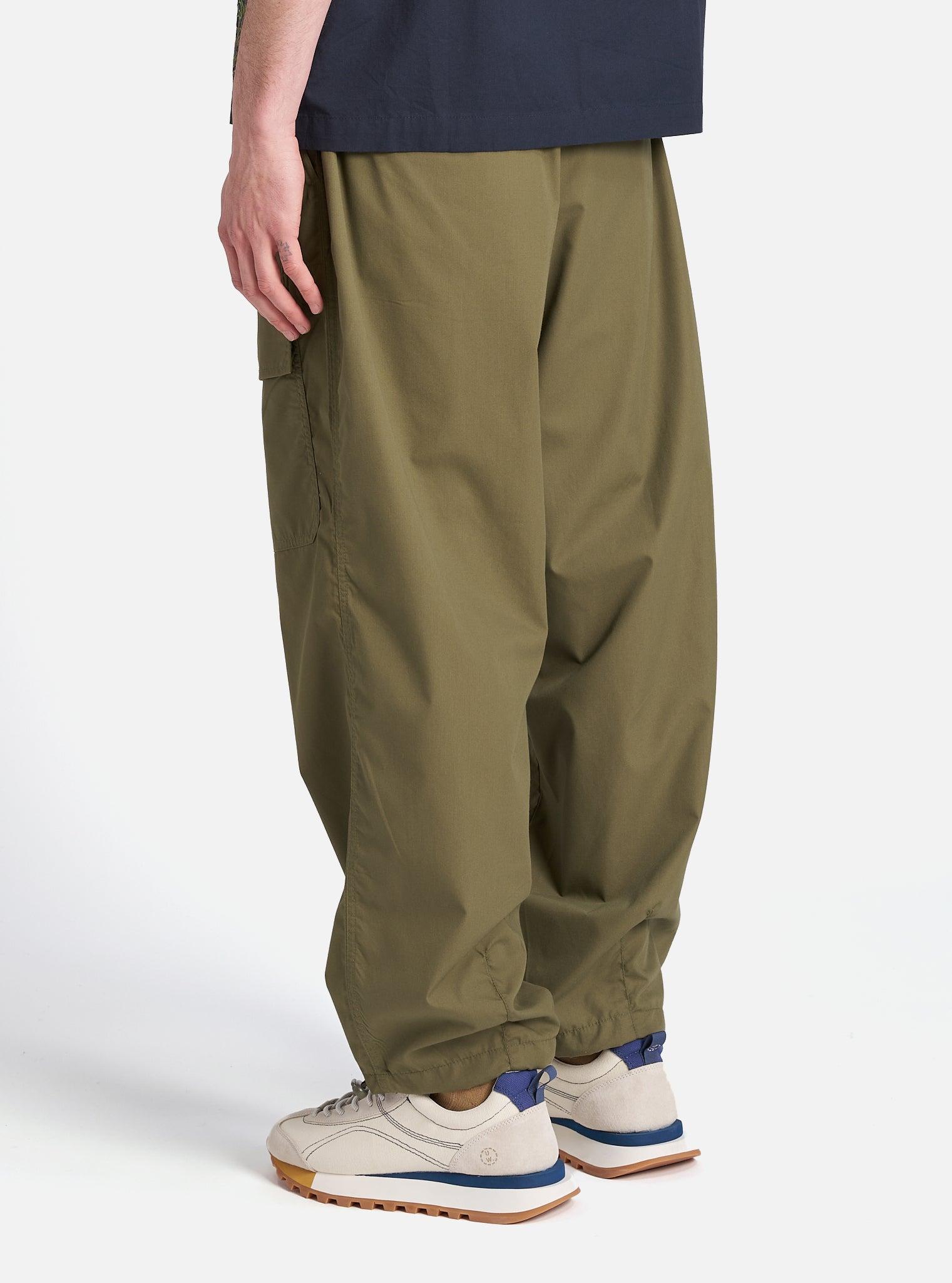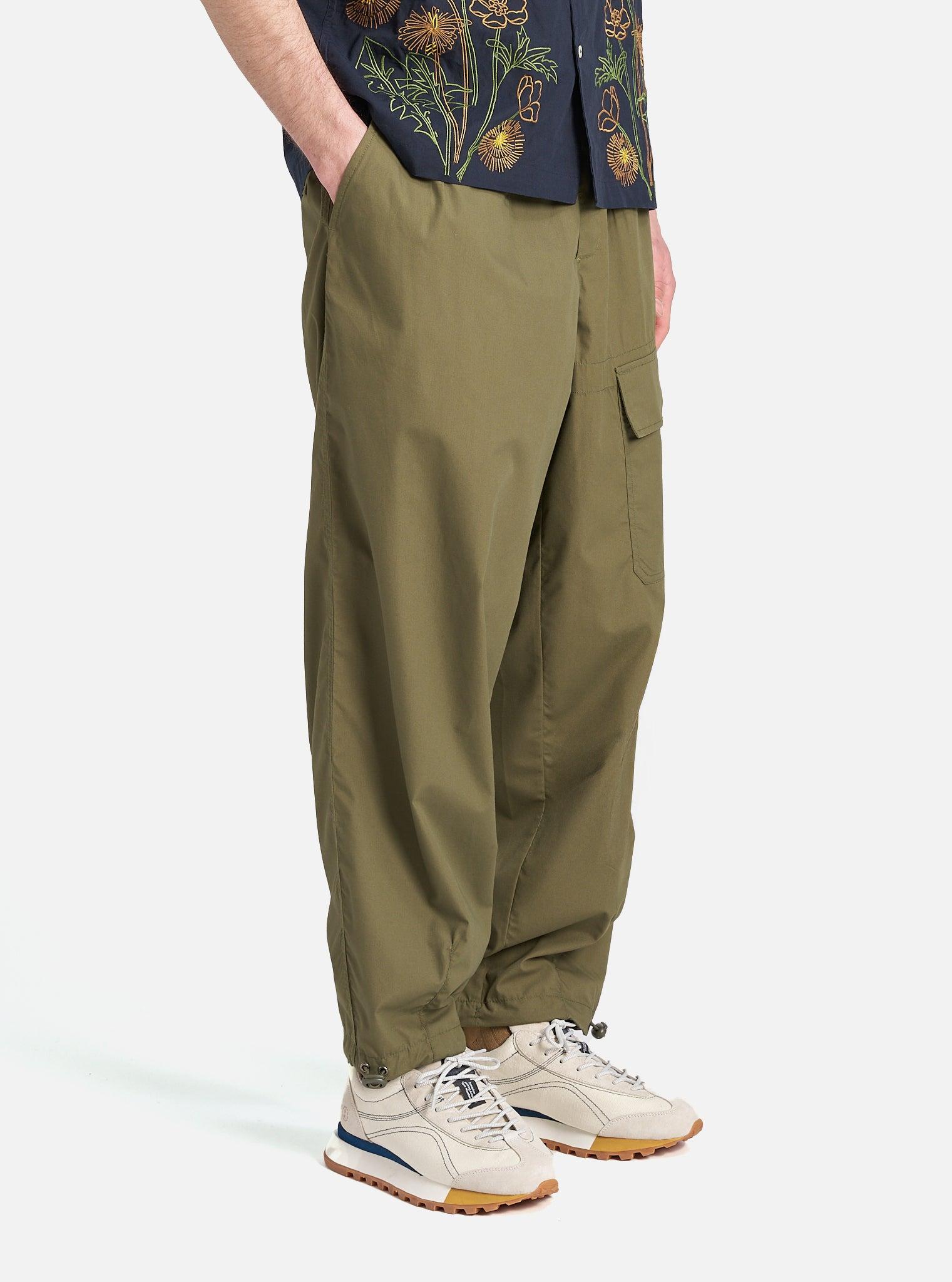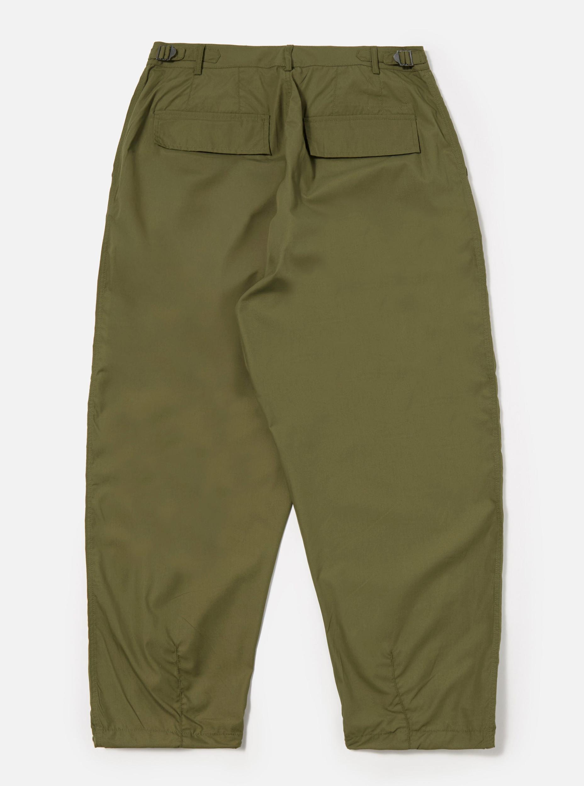 The same shape as our loose cargo trousers, with a change to the pocket—we have added this one to the front. These have waist adjusters, and drawcord hems. Our model is 6' 0'' with a 30' Waist and is wearing a size ‘32.’ Woven from recycled polyester fibres and cotton, this compact fabric has a clean, utilitarian look. Lightweight but extremely durable, it is comfortable, quick drying, and practically immune to creases—so it is great out of the bag, wardrobe or suitcase. • Loose fit. • Side buckle waist adjusters. • Two back flap pockets. • One front leg pocket. • Button fly. • Darted hem and drawcord. • Fabric Composition: 65% Recycled Polyester, 35% Cotton. • Washcare: Wash at 30 degrees. Do not bleach. Do not tumble dry. Cool iron. Do not dry clean. Wash like colours together. Do not iron decoration. • Please be aware that the measurements above are technical measurements that are based on the garment laid flat and are useful as a general guide only. Measured in Centimetres. 26 28 30 32 34 36 38 Outside Leg Including Waistband. 101 101 103 108 111 111 111 Waist. 36 38.5 41 43.5 46 48.5 51 Thigh - 2.5cm Below Crotch. 35 36.5 38 39.5 41 42.5 44 Hem Opening Width. 23 23 23 24 25 26 27 Front Rise Including Waistband. 29 30 31 32 33 34 35 Back Rise Including Waistband. 44 45 46 47 48 49 50
