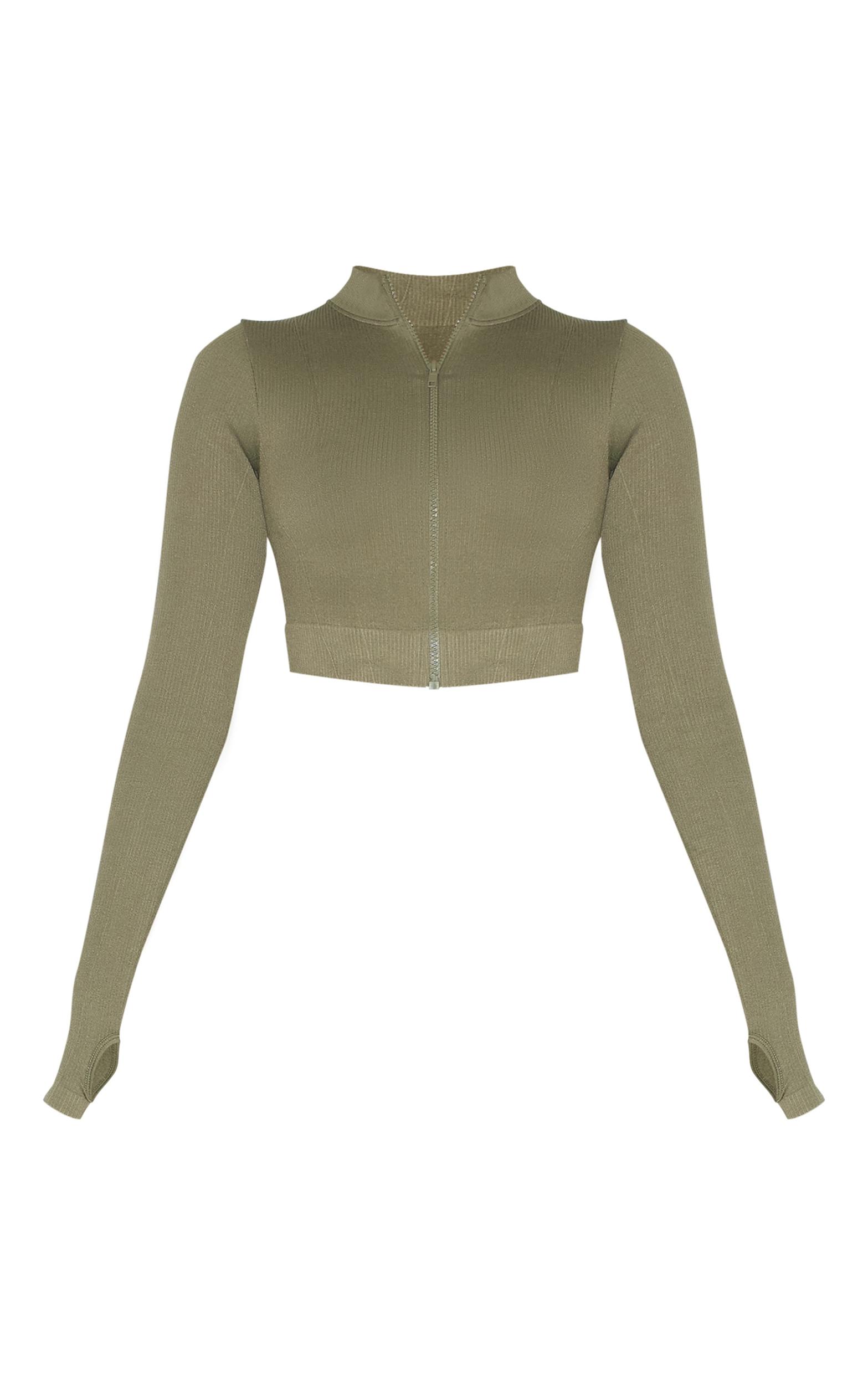 Olive Seamless Seam Detail Cropped Sports Jacket