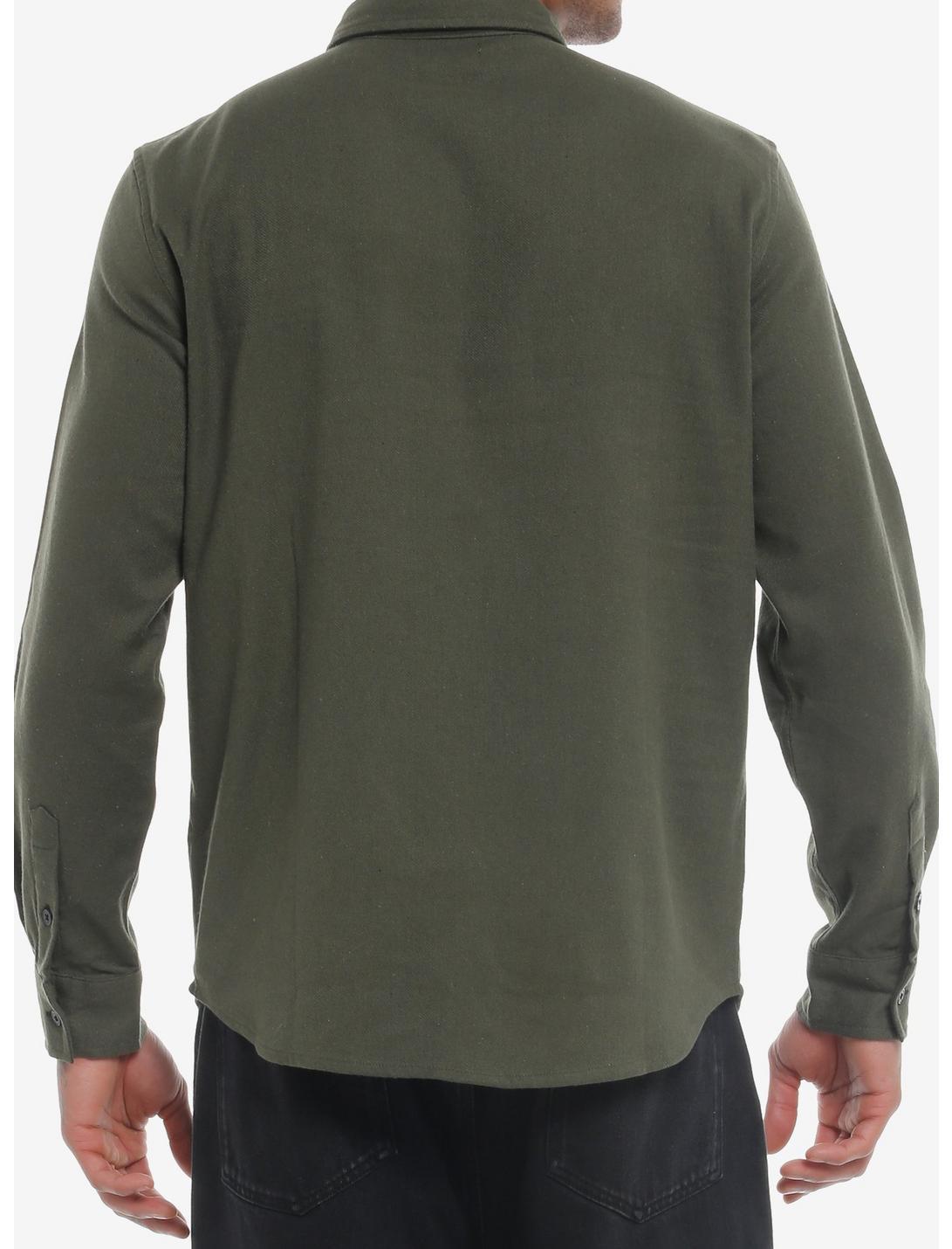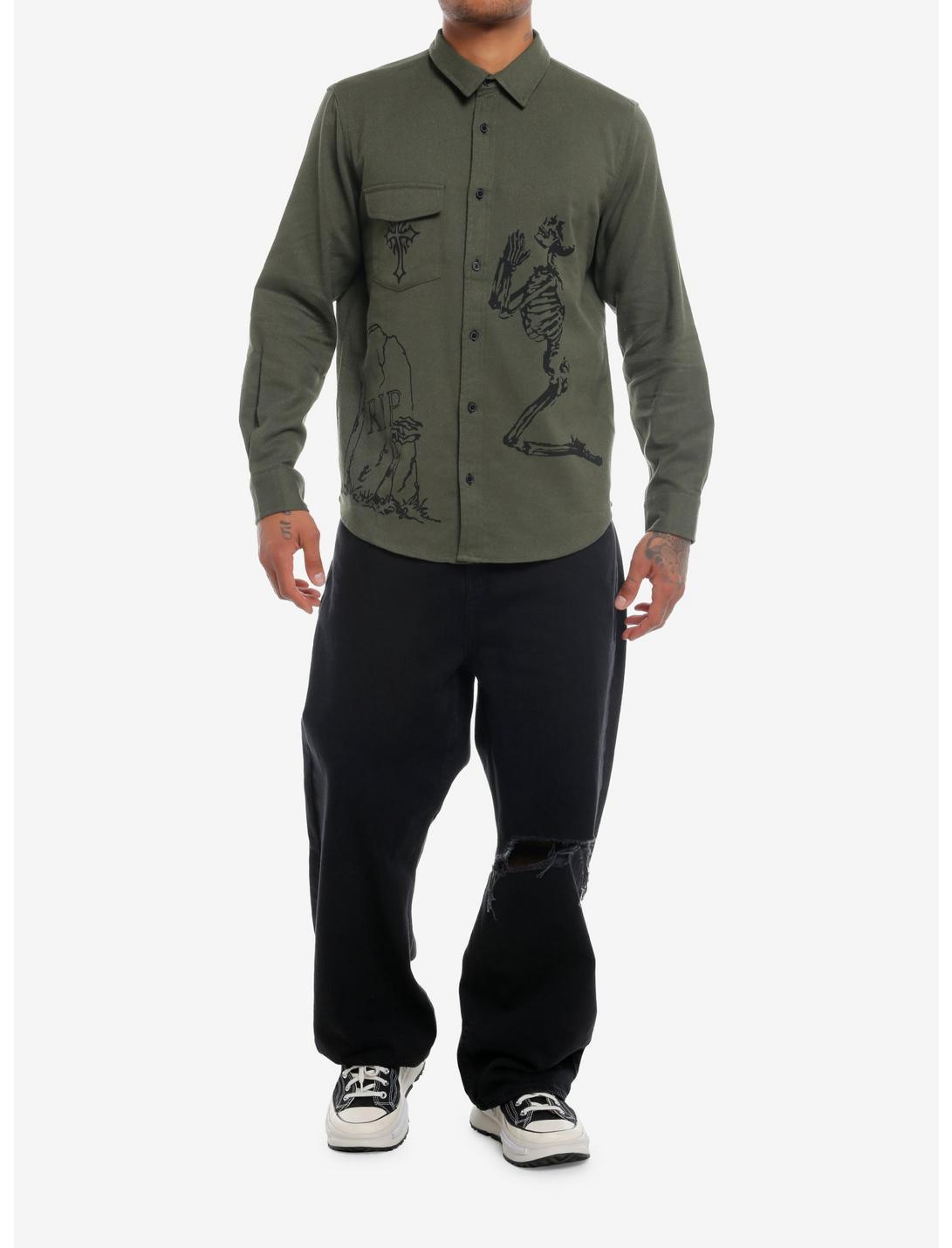 Olive Skeleton Grave Twill Long-Sleeve Woven Button-Up