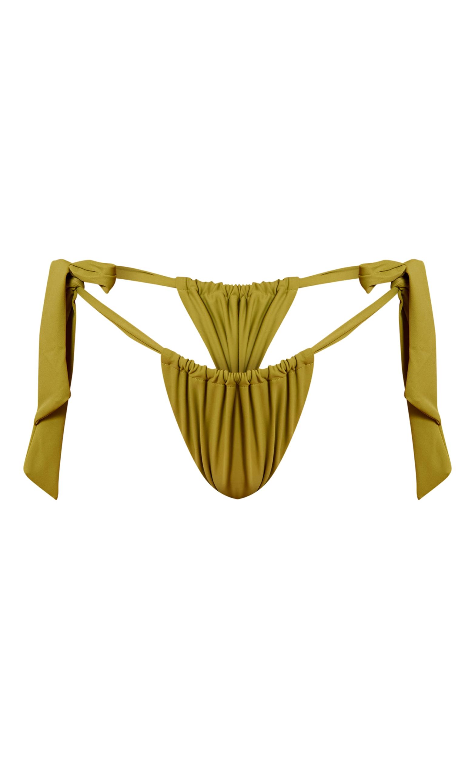 Keep things simple with the olive thick strap tie side bikini bottoms. Made from an olive swim fabric, these feature thick ties for added comfort. Gold jewelry and the matching bikini top to bring elevated flair to this beachy basic.Length approx 29cm/11.5inch (Based on sample size US 4)Model wears size UK 8/ EU 36/ AUS 8/ US 4Model Height - 5ft 7inchp]:!mb-4inch>Brand: PrettyLittleThingCategory: SwimwearProduct type: Tanga Bikini BottomColor: OliveMaterial: SwimOccasion: Day