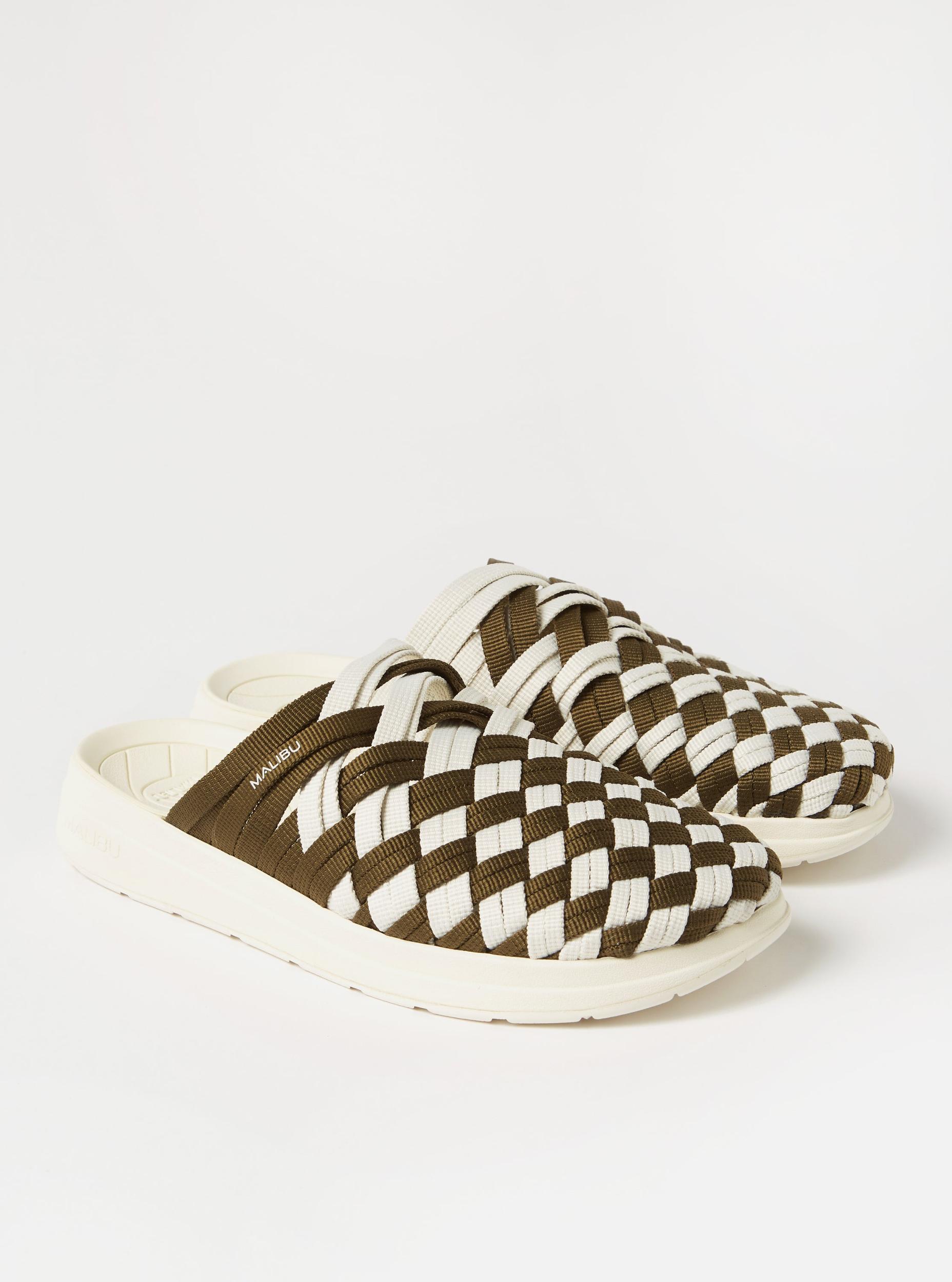 Malibu Sandals was founded in 2014 by Kevin O'Neill with inspiration taken from both the Californian city that bears its name, and a love of the iconic South American 'Huarache' sandal. Anatomically designed with the foot in mind, every pair of Malibu Sandals is hand-crafted from vegan materials too. We think they are great, and we hope you do too! The 'Colony' features a classic mule design with a handwoven basket weave upper. The robust 3-piece outsole has a soft anatomically correct EVA footbed layered on top of a firm EVA midsole and a slightly lugged traction rubber outsole. • Product Code: MS21-13/2400. • Traditional handwoven mule-design upper. • Vegan suede leather. • EVA midsole. • Ergonomic arch support & sole. [sizing] UK US EUR 5 6 38 6 7 39-40 7 8 41 8 9 42 9 10 43 10 11 44
