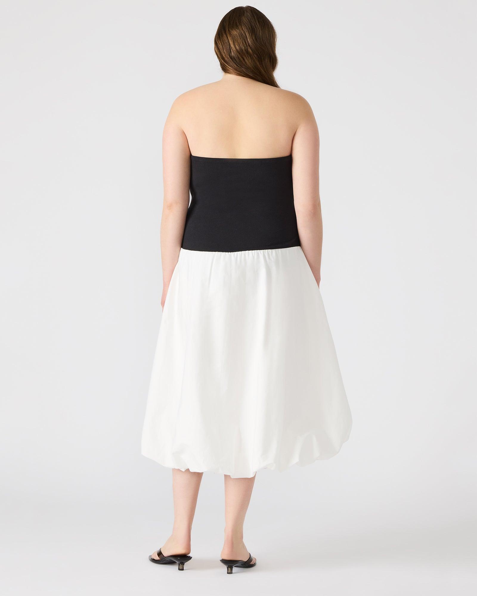 Introducing the OLIVER dress, a sleek and stylish midi strapless bubble dress. Perfect for any occasion, this dress offers a flattering fit and elegant look. Made with high-quality materials, it is both comfortable and chic. Elevate your wardrobe with this must-have dress. Strapless dress Pull-over style Bottom bubble skirt 100% cotton Hand wash Fekes is 5ft 10in and is wearing a size small Grace is 5ft 10in and is wearing a size large Imported
