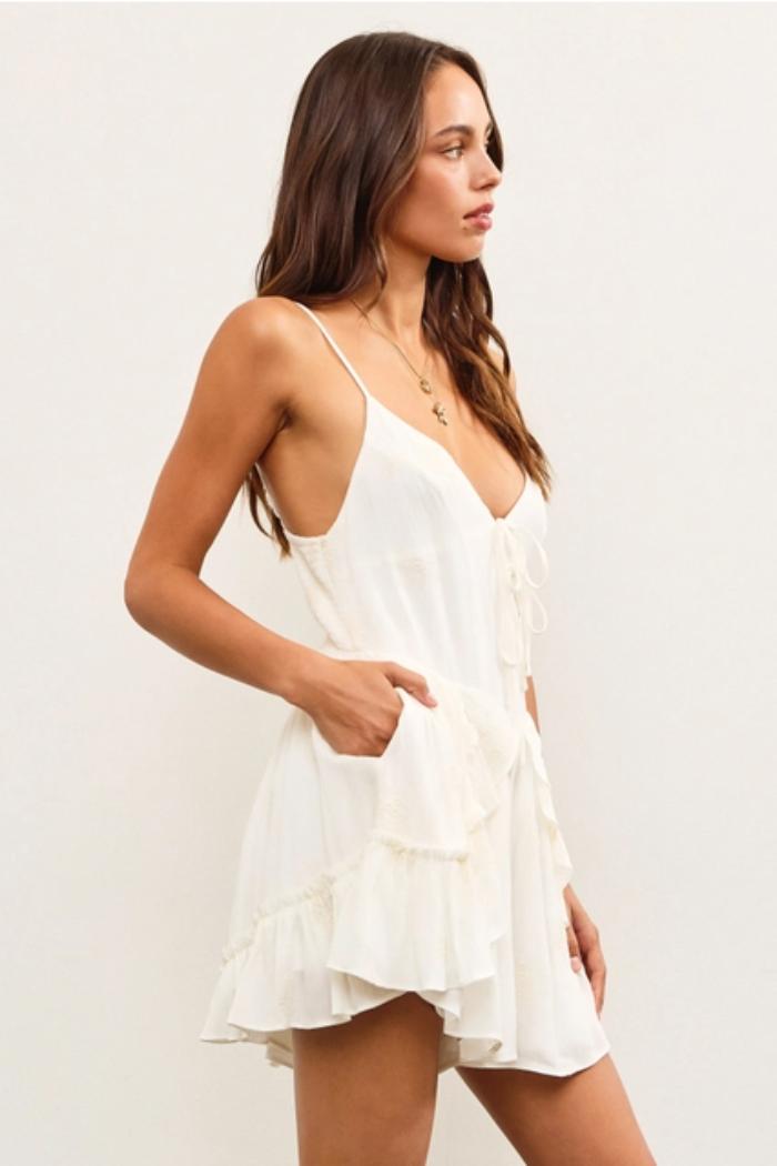 Playful, pretty, and effortlessly flirty — the Olivia Cami Romper is your new warm-weather favorite. Featuring a layered ruffle V-neckline and an easy cami silhouette, this one-piece brings a carefree elegance to your everyday style. Whether you're brunch-bound or beachside, Olivia moves with you and flatters from every angle. Pair it with sandals for day or dress it up with wedges for sunset strolls.