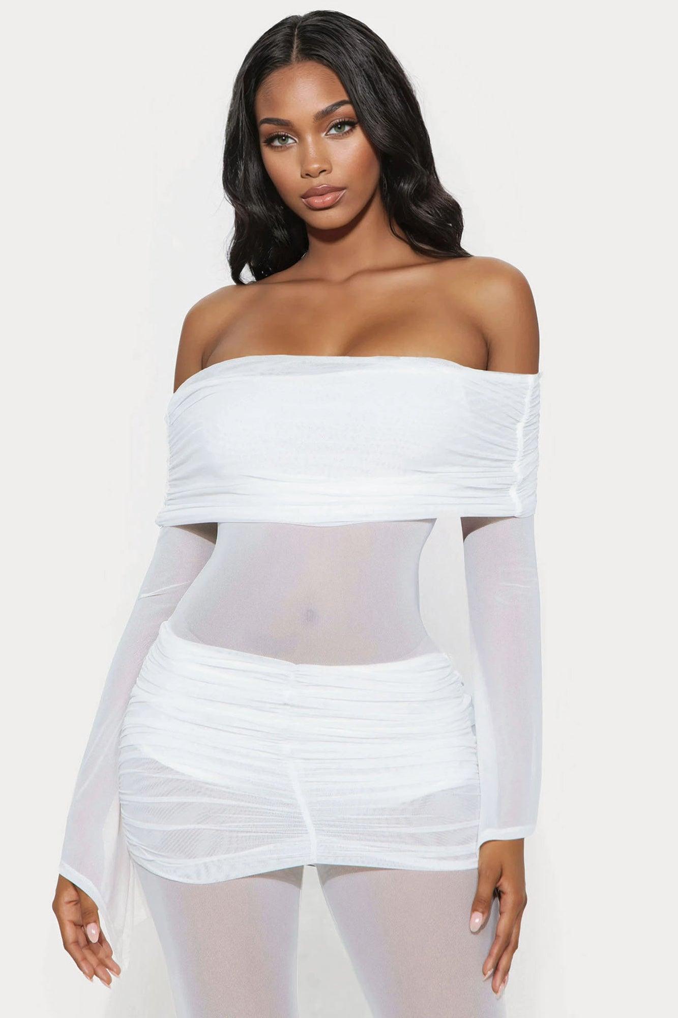 Olivia Ruched Mesh Jumpsuit - White Female