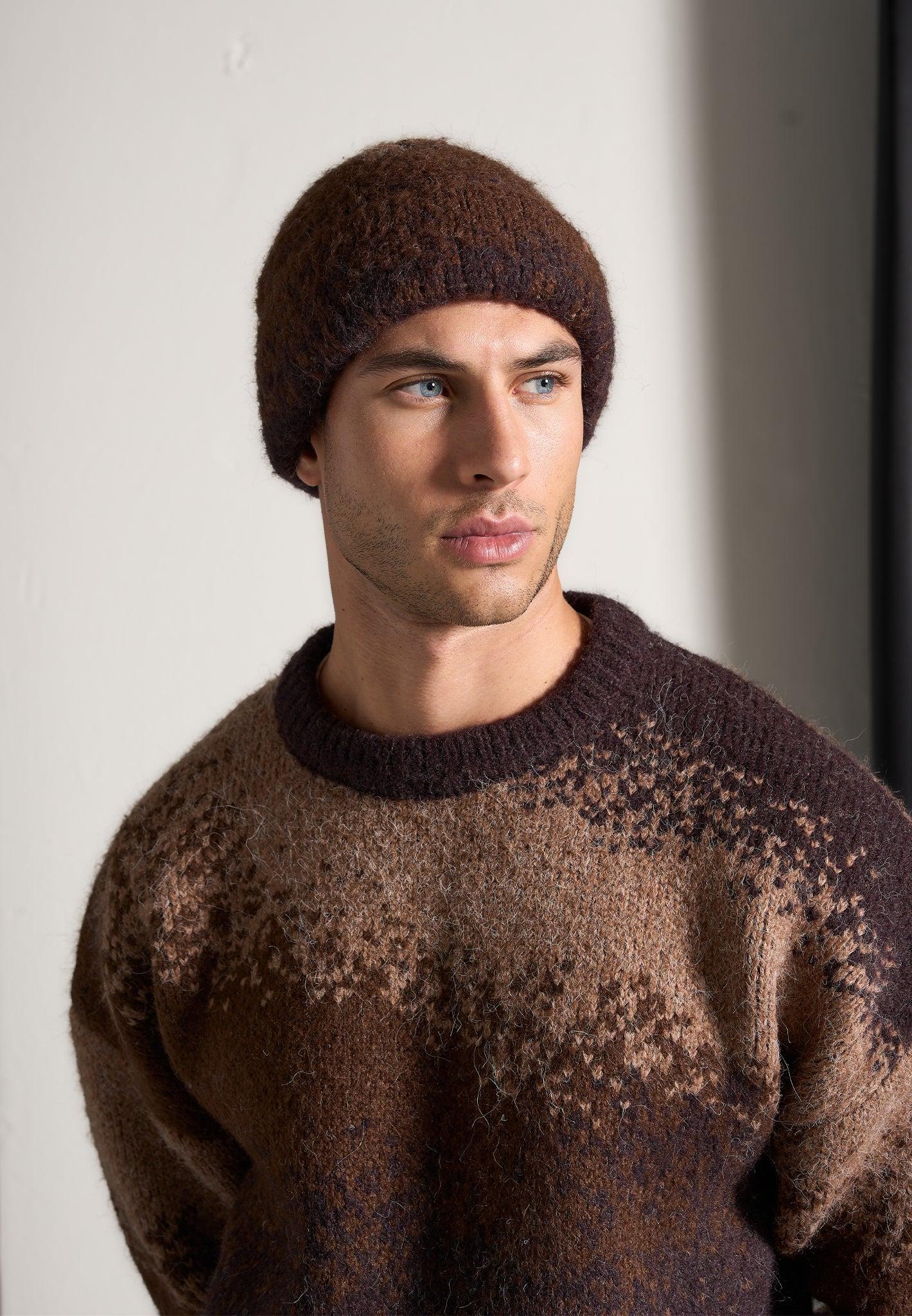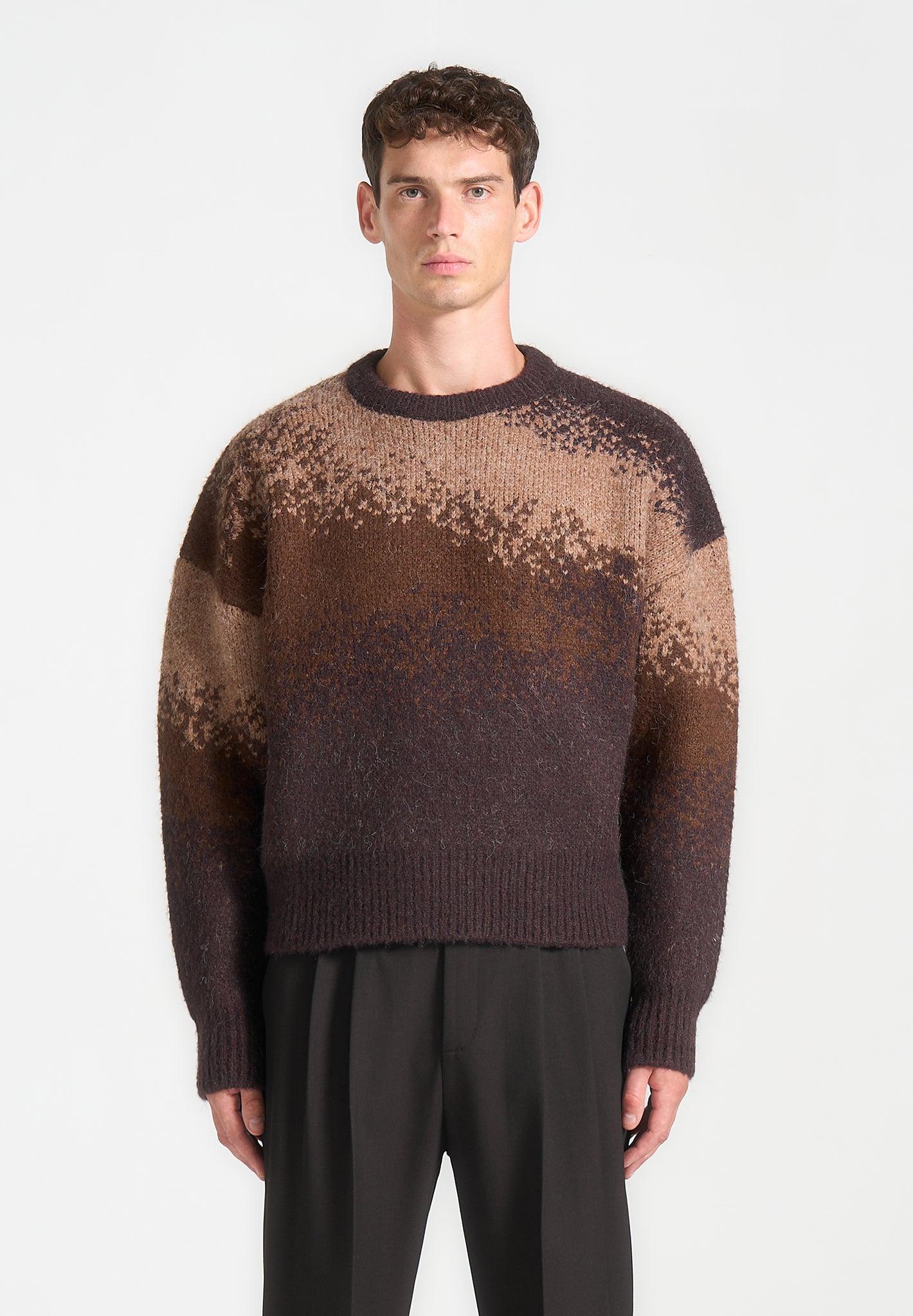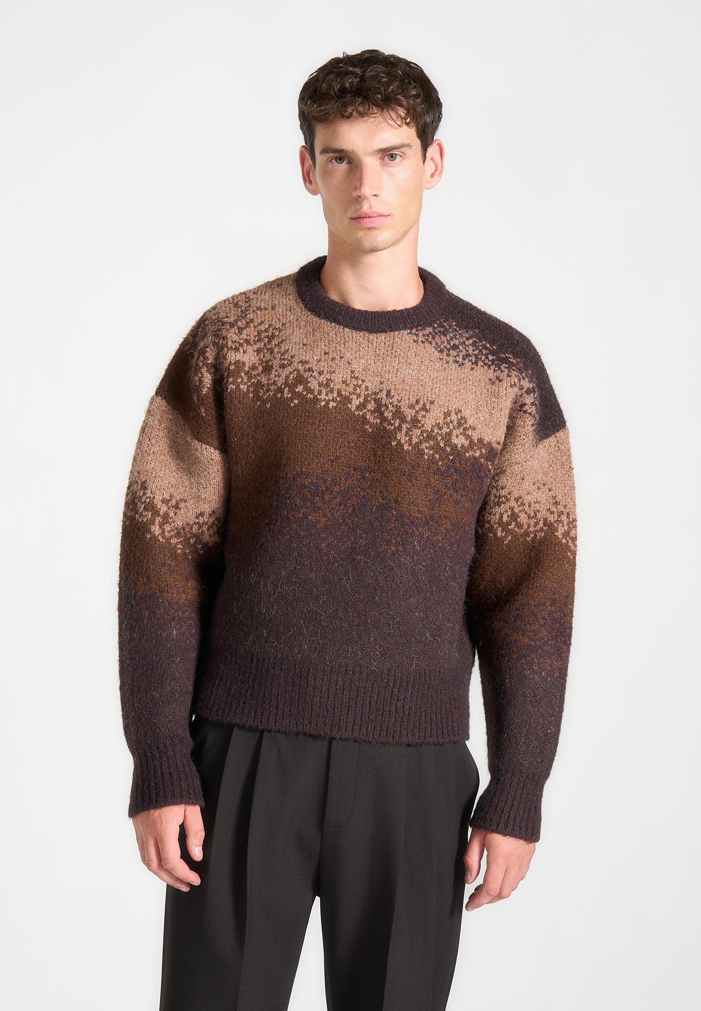 Ombré Knit Crewneck Sweater - Brown Male