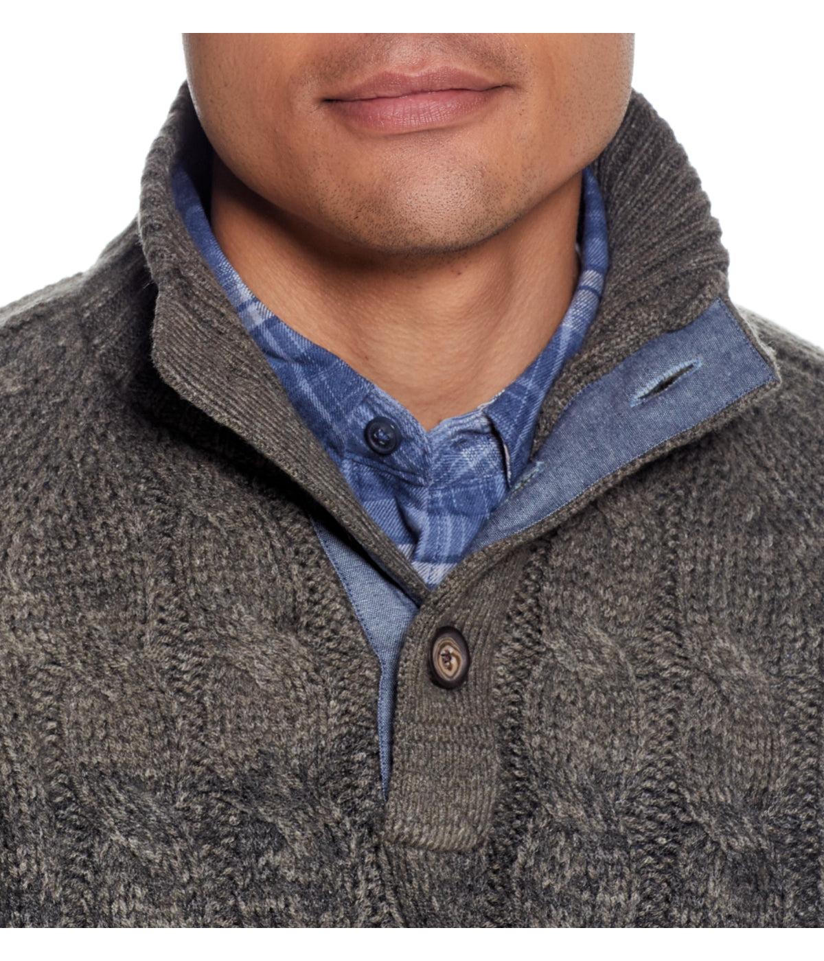 Ombre Cable Button Mock Neck Sweater Camouflage Marl