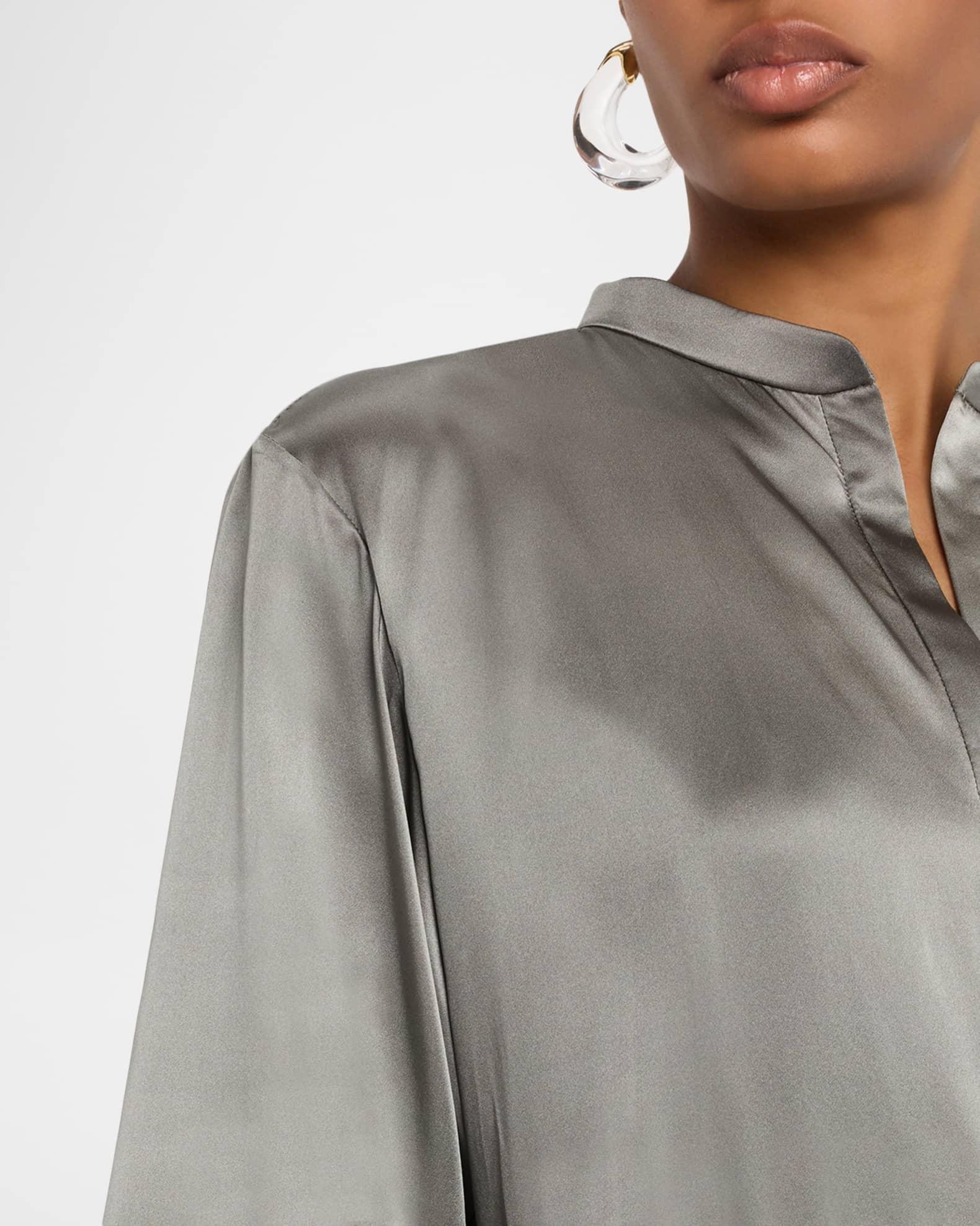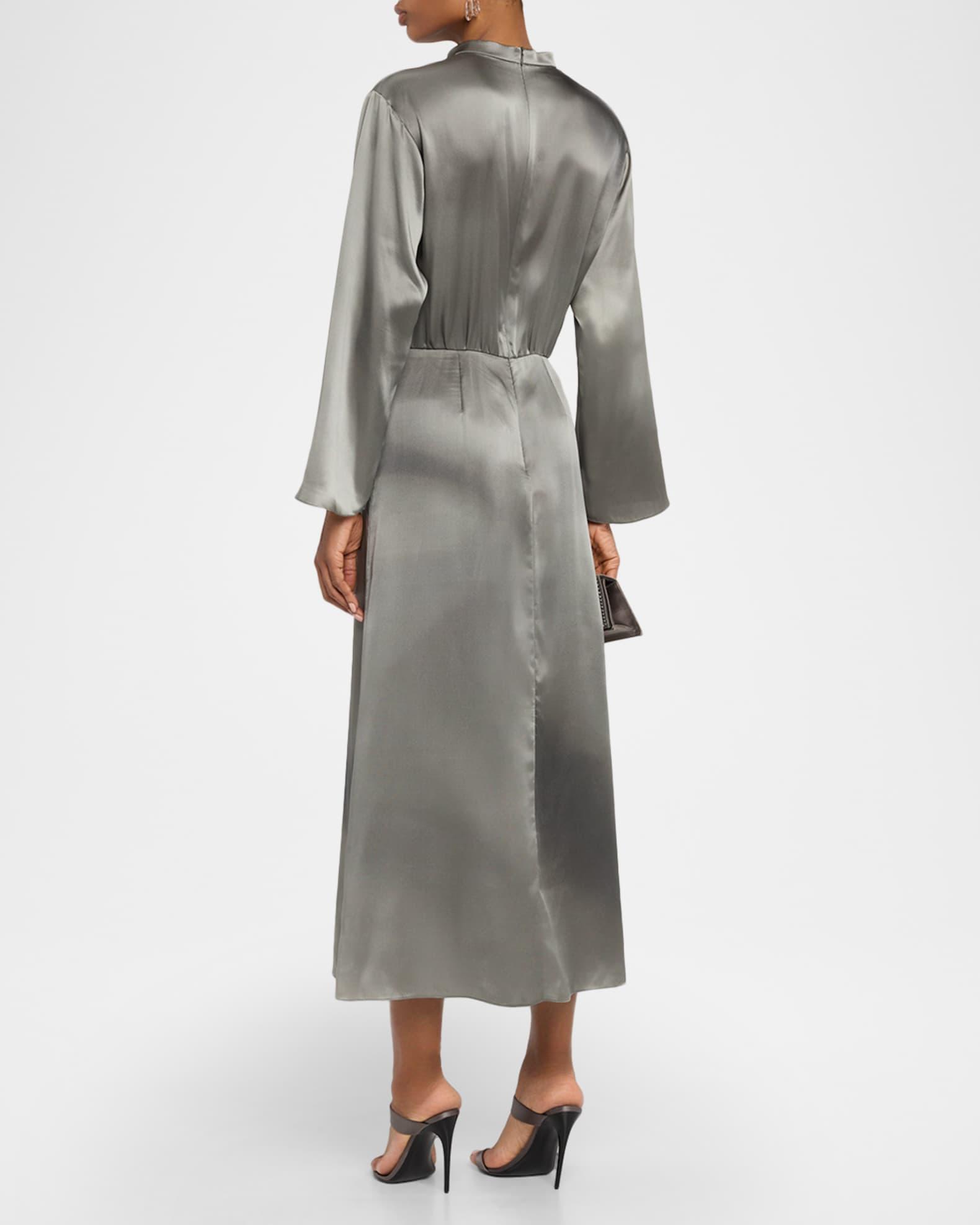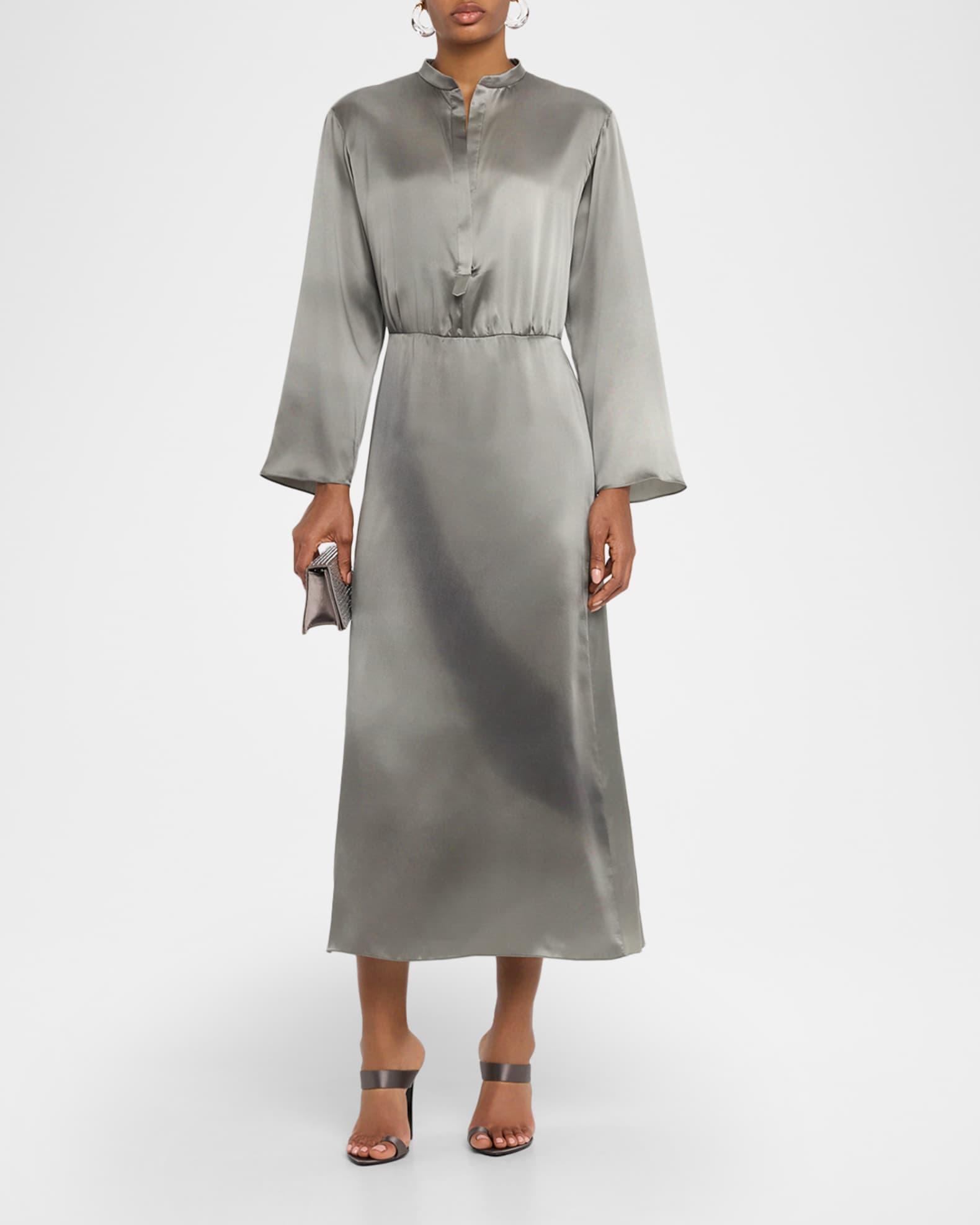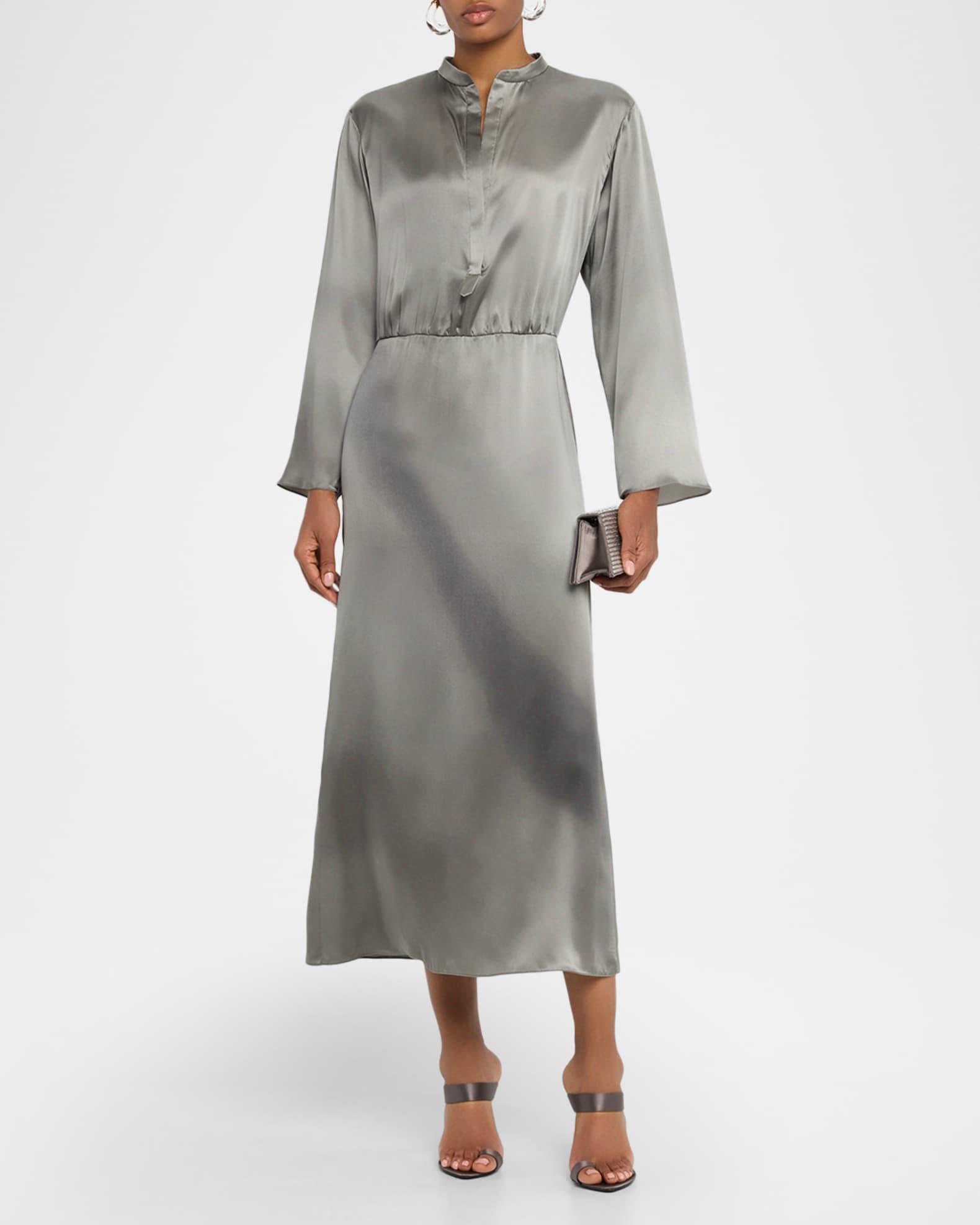 Giorgio Armani dress featuring an ombre print Round neckline; split V front Long sleeves A-line silhouette Hem falls below the knee Back zip Silk Dry clean Made in Italy
