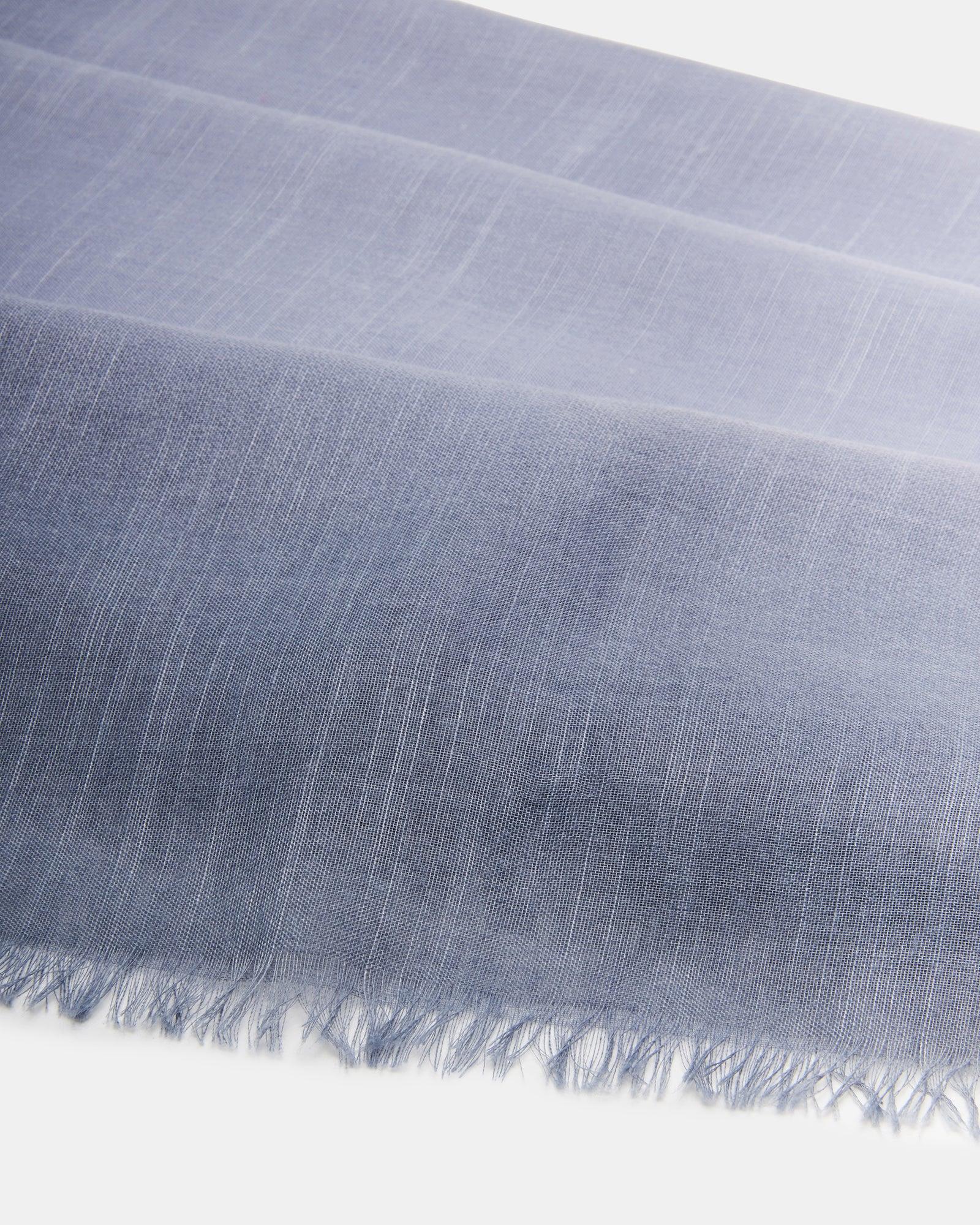 Introducing the OMBRE SCARF in denim fabric. This lightweight scarf features a gradient color effect, offering both style and functionality. Made for all occasions, it adds a touch of elegance to any outfit. Grab yours now and elevate your wardrobe with this must-have accessory. Ombre lightweight scarf 75" x 50" Synthetic materials Imported