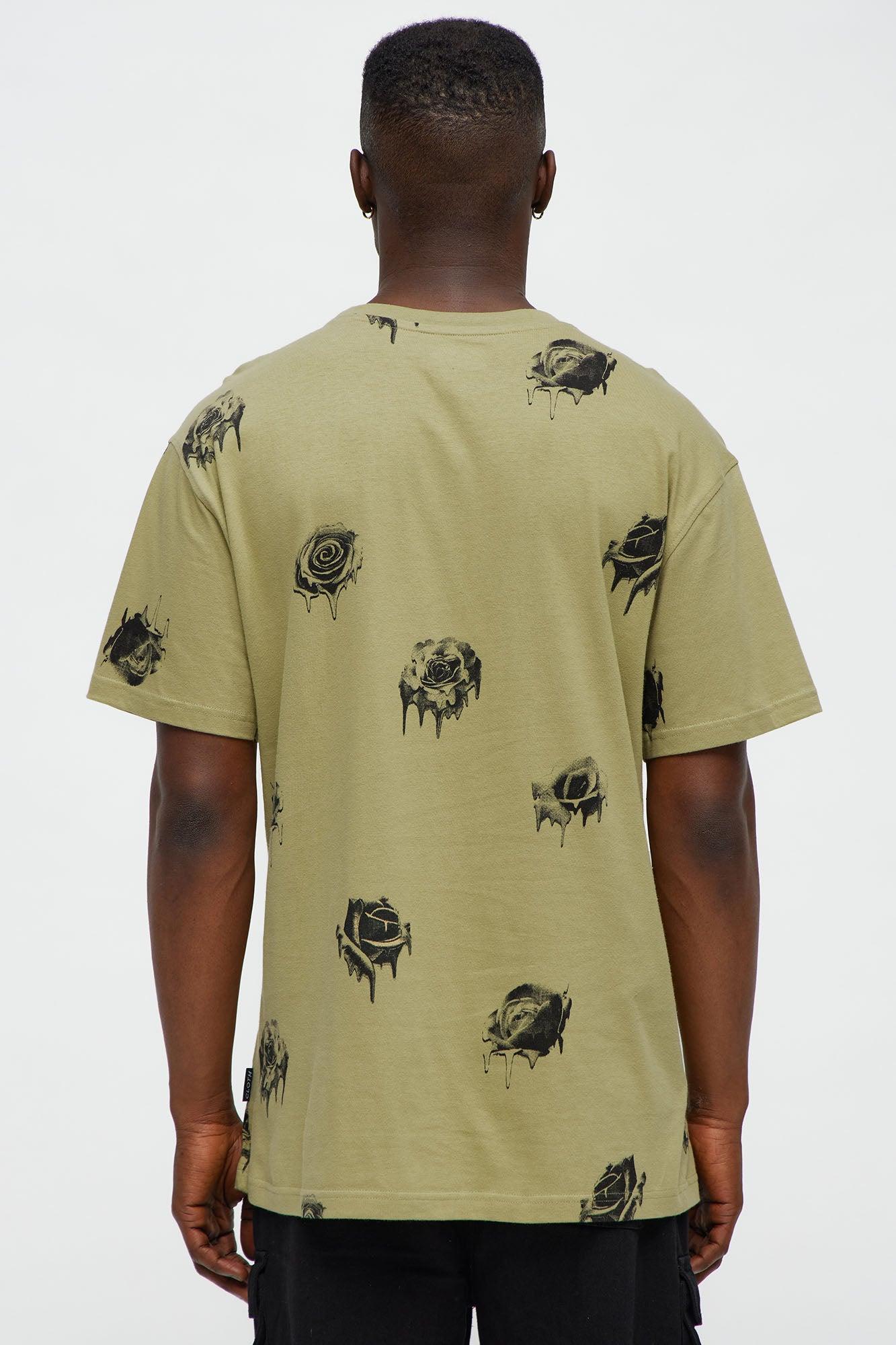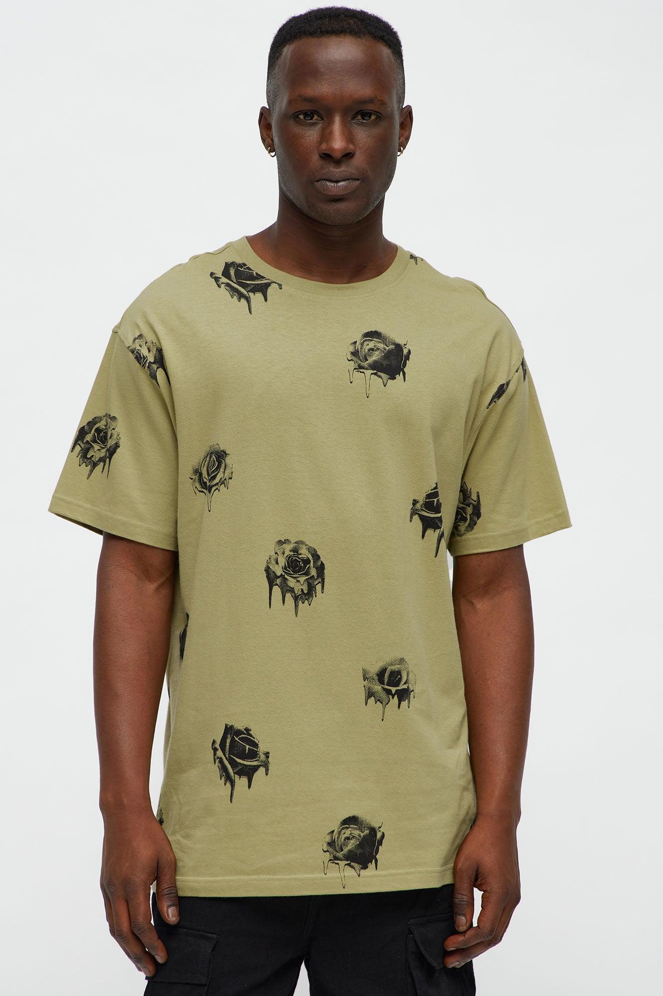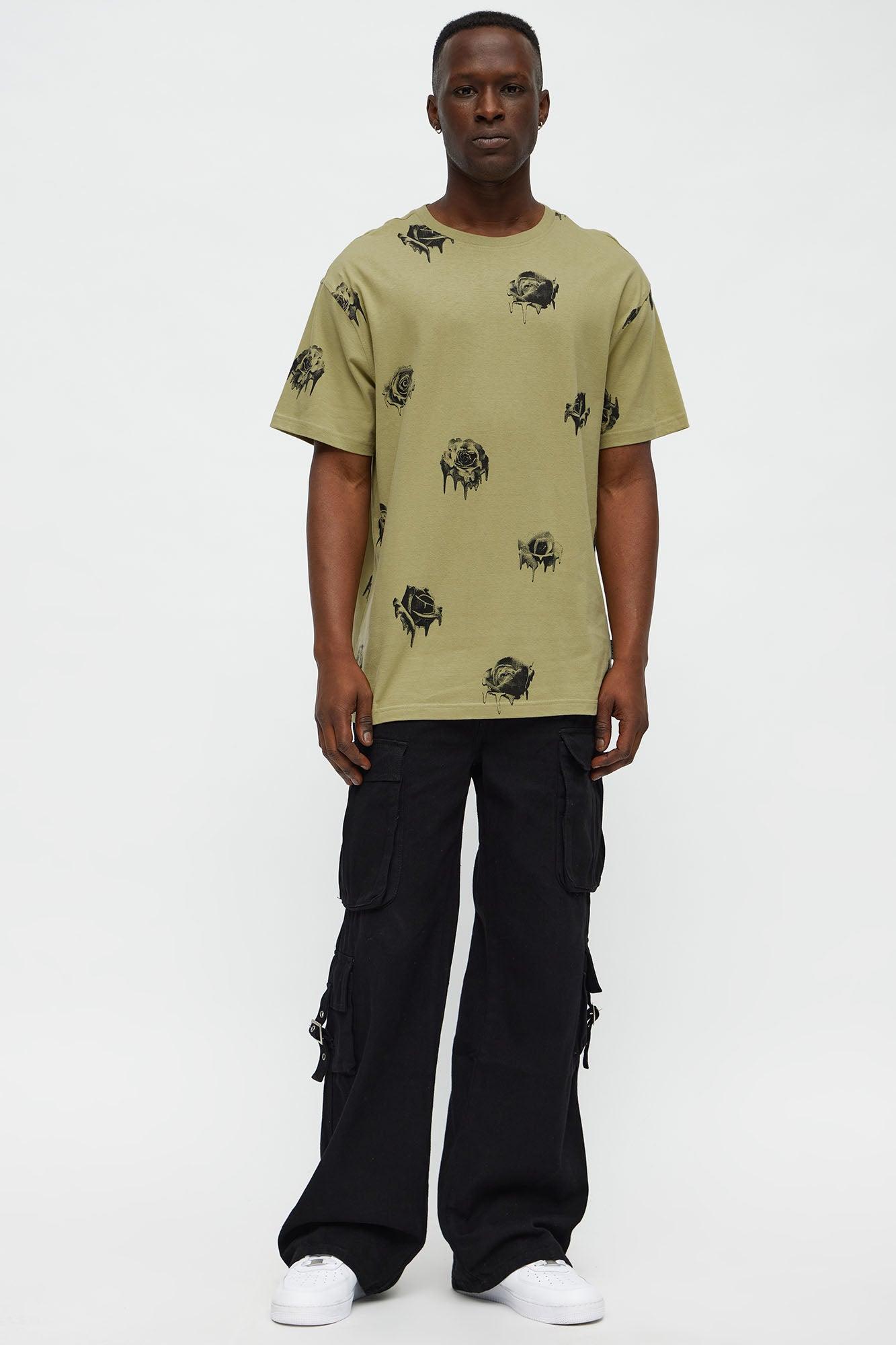 Available In Grey/combo And Olive/combo. Relaxed Fit Crew Neck All Over Rose Graphic Details Short Sleeves Disclaimer: Due To The Printing Process A Difference In Saturation May Occur. Each Garment Is Unique. 100% Cotton Imported