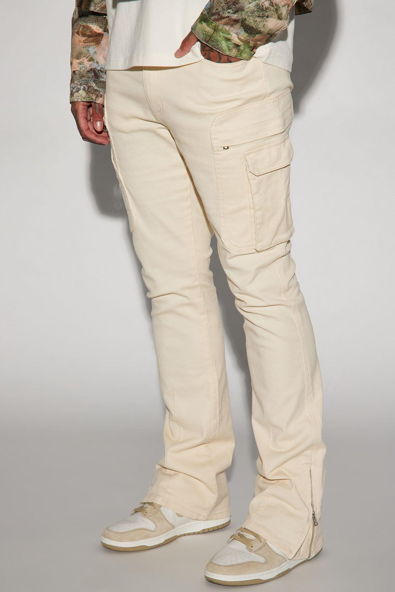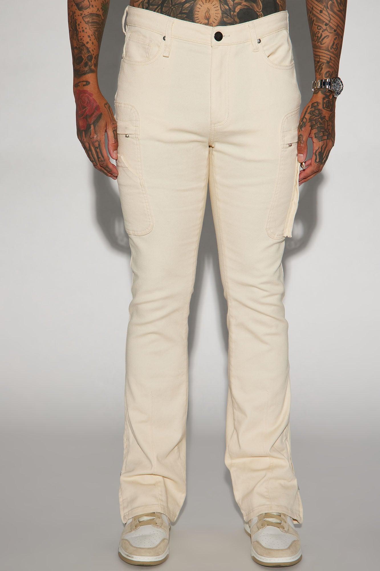 Available In Black And Cream. Stacked Skinny Flare Fit Stretch Denim Zip Fly Button Closure 5 Pocket Cargo Zipper Pockets Ankle Zipper 98% Cotton 2% Spandex Imported California Proposition 65WARNING: Cancer and Reproductive Harm - www.P65Warnings.ca.gov.
