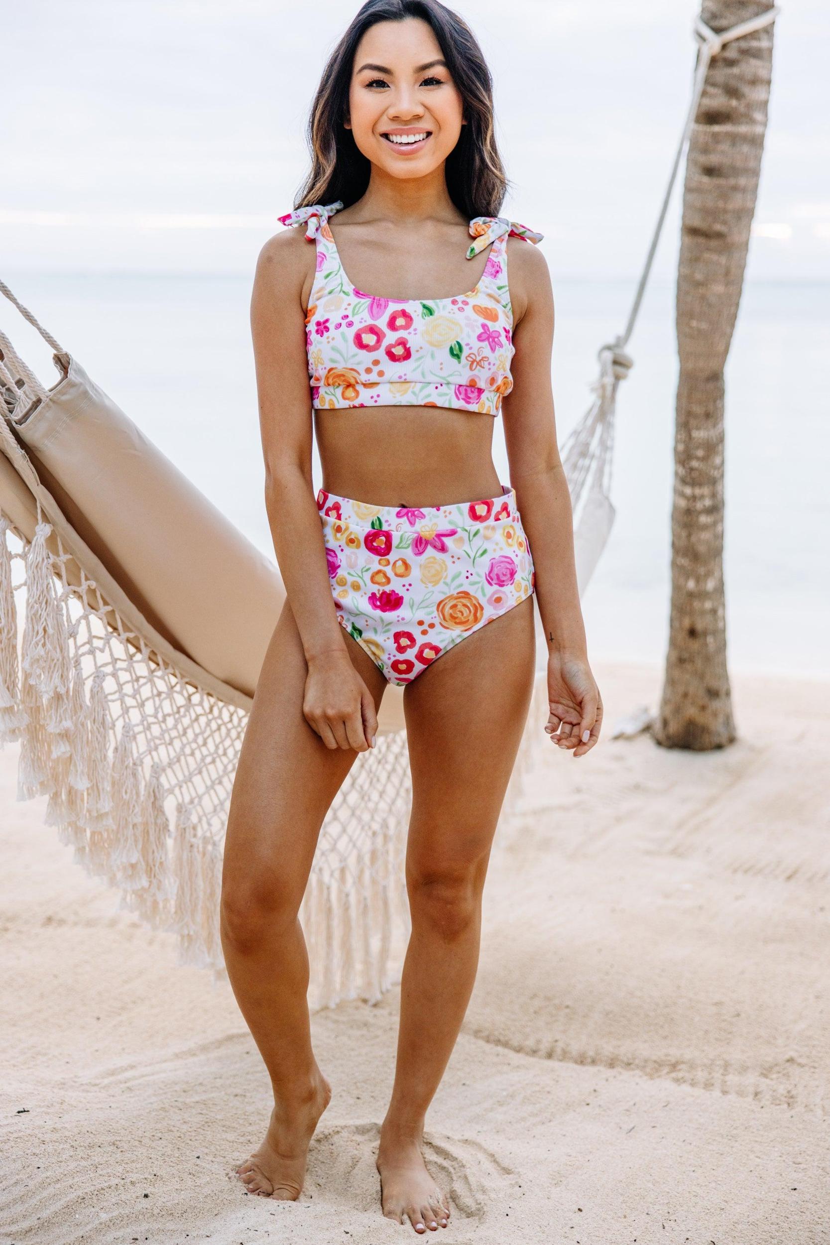 This is the perfect bikini to grab for a vacation that just got thrown together on a whim! It's so classic and super cute! The ribbed fabric and classic cut make this swimmy so easy to wear and style with cover ups! These bikini bottoms features a higher cut waist, floral print, and ribbed fabric. Small: Waist stretches from 24" to 28"Medium: Waist stretches from 26" to 30"Large: Waist stretches from 28" to 32"XLarge: Waist stretches from 30" to 34" Material has a generous amount of stretchCindy is wearing the small.