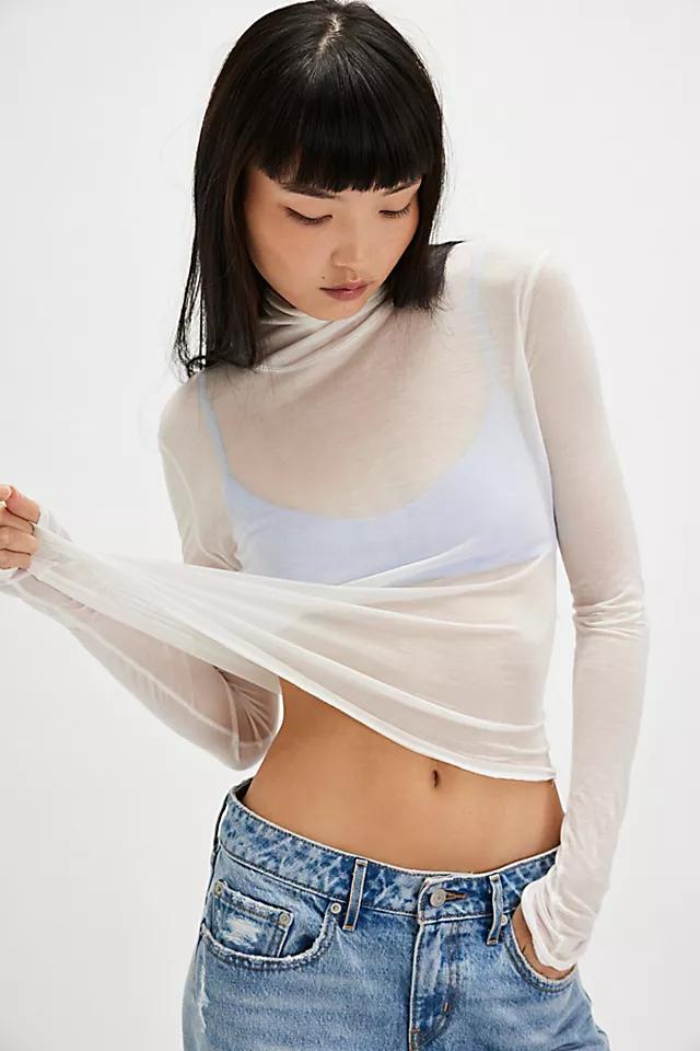 Lightweight and airy, this long sleeve from Intimately is featured in a breezy, tissue-weight fabrication with a sleek turtle neckline for a truly timeless layer.