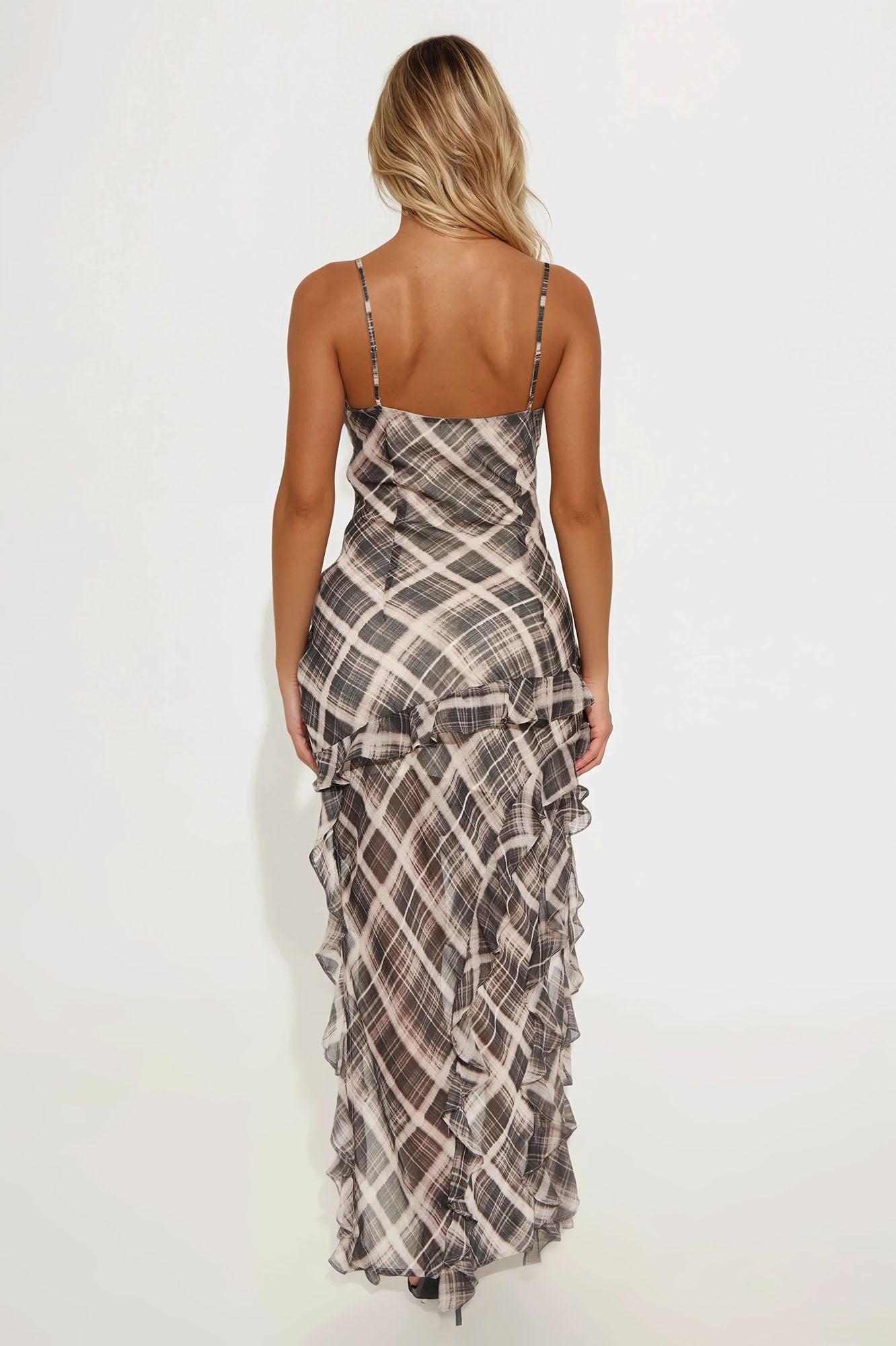 On The Edge High Low Plaid Maxi Dress - Grey/combo Female