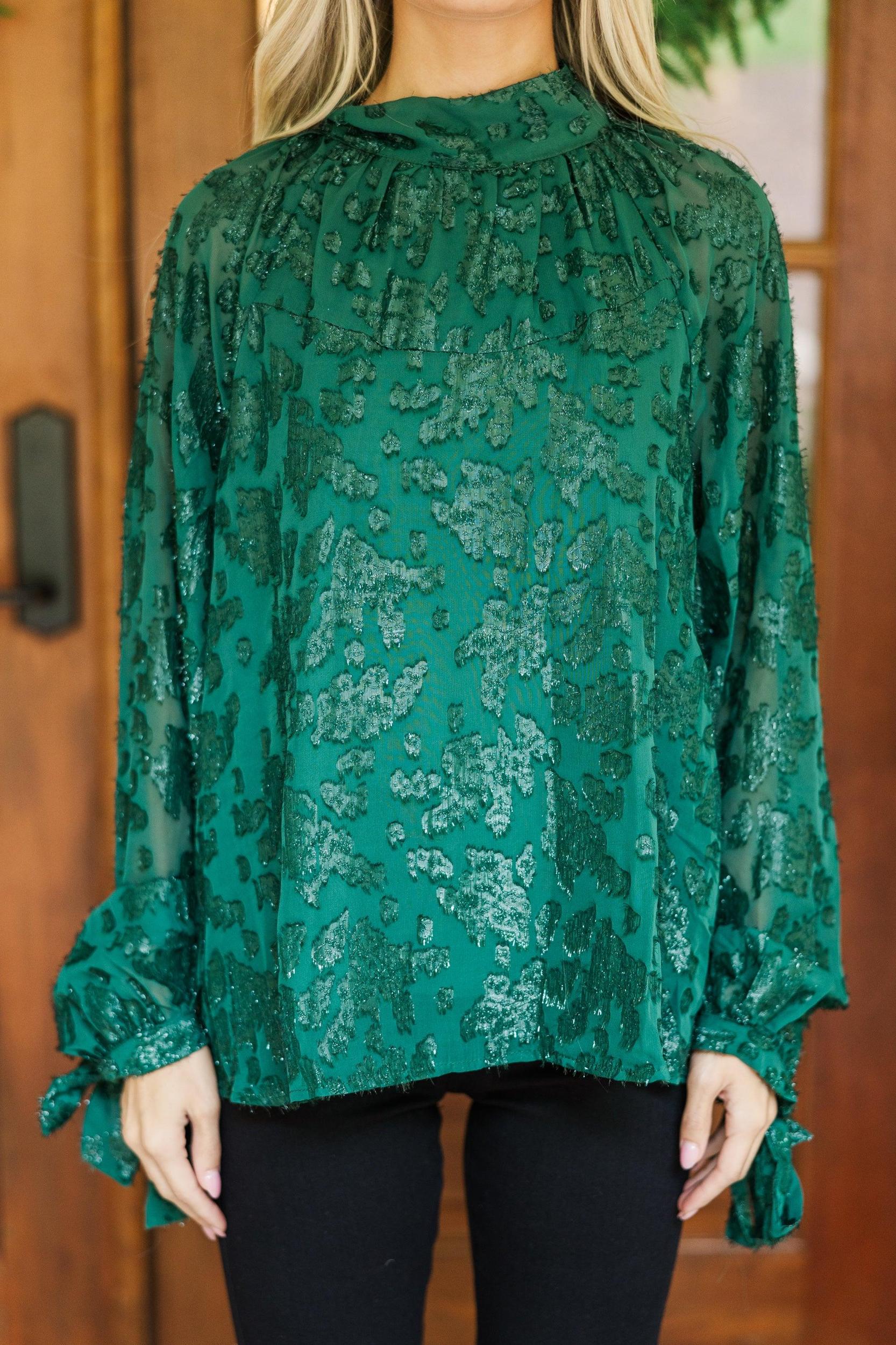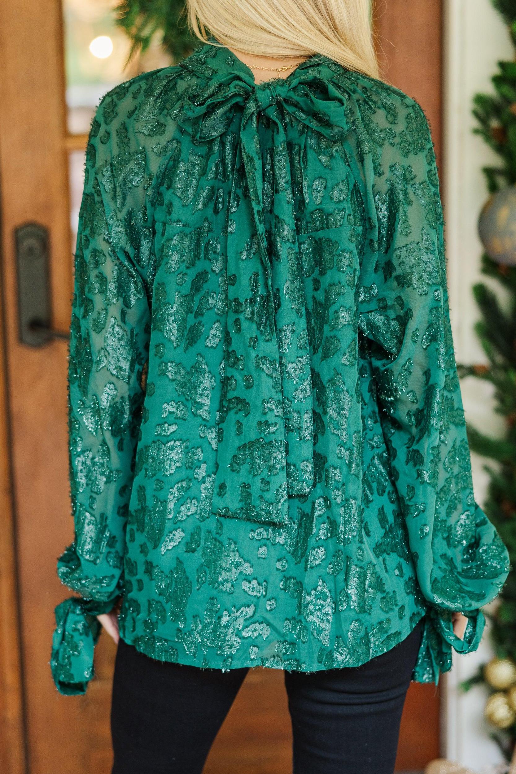 We really hope this blouse is on your list of holiday must haves! It's definitely on ours! That rich hue is perfection and we love that lace fabric! This blouse is going to look so good with your favorite jeans and pants this season! Mock neckline Tied bow detail in back Long sleeves with boes Lace fabric No stretch Baileigh is wearing the small.