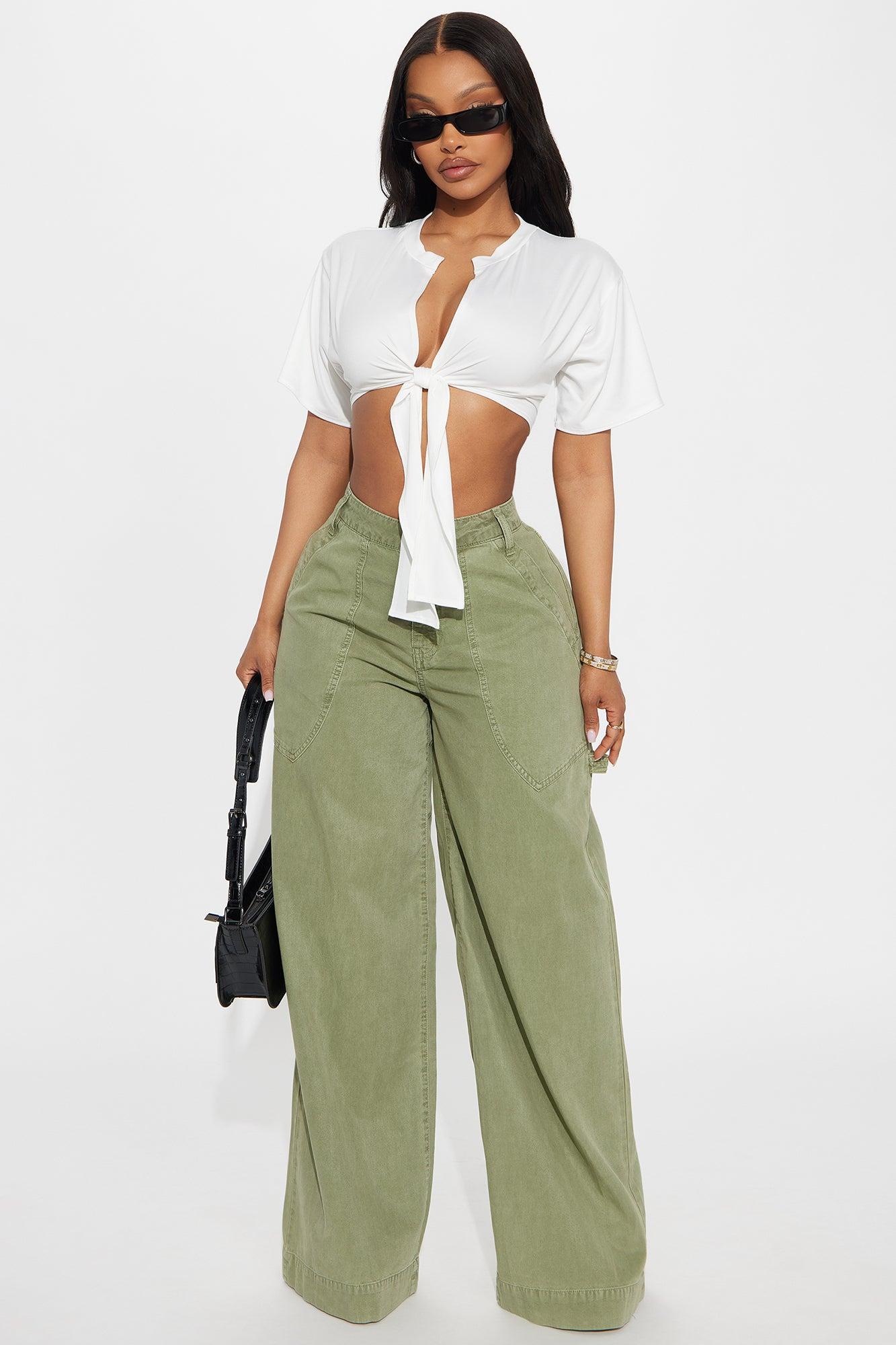Available In Black And White. Short Sleeve Top Stretch Tie Front Knot Detail Cropped 96% Polyester 4% Spandex Imported California Proposition 65WARNING: Cancer and Reproductive Harm - www.P65Warnings.ca.gov.