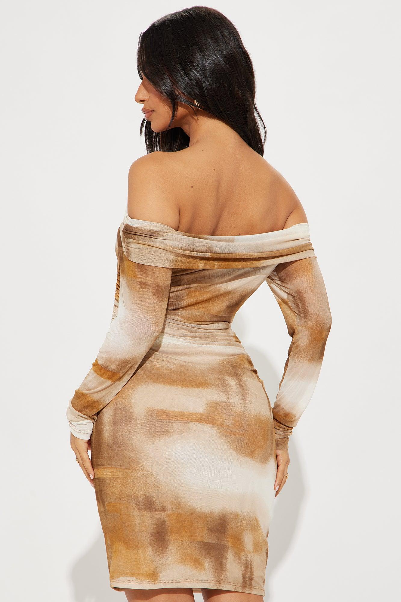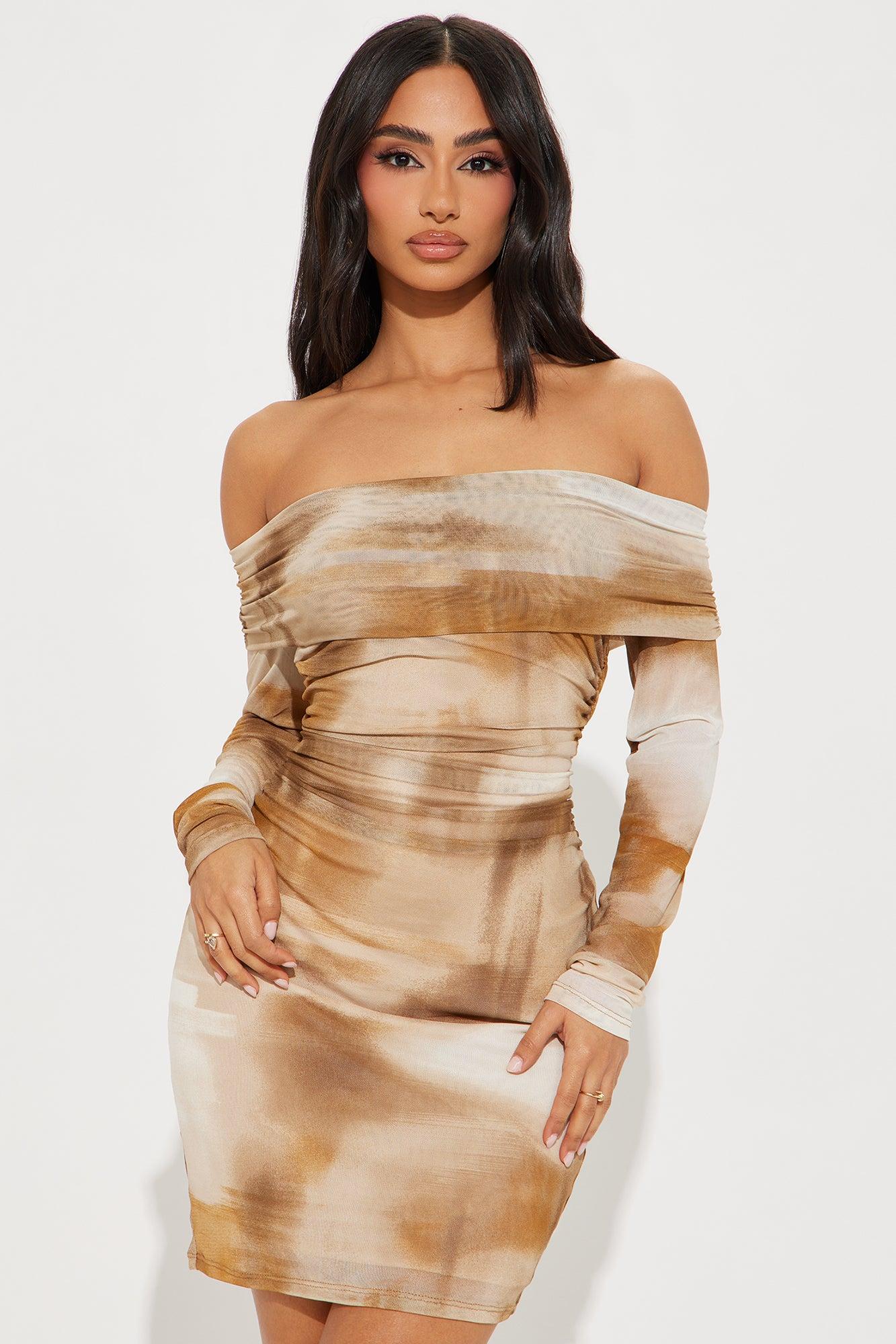 On Your Mind Mesh Mini Dress - Taupe/combo