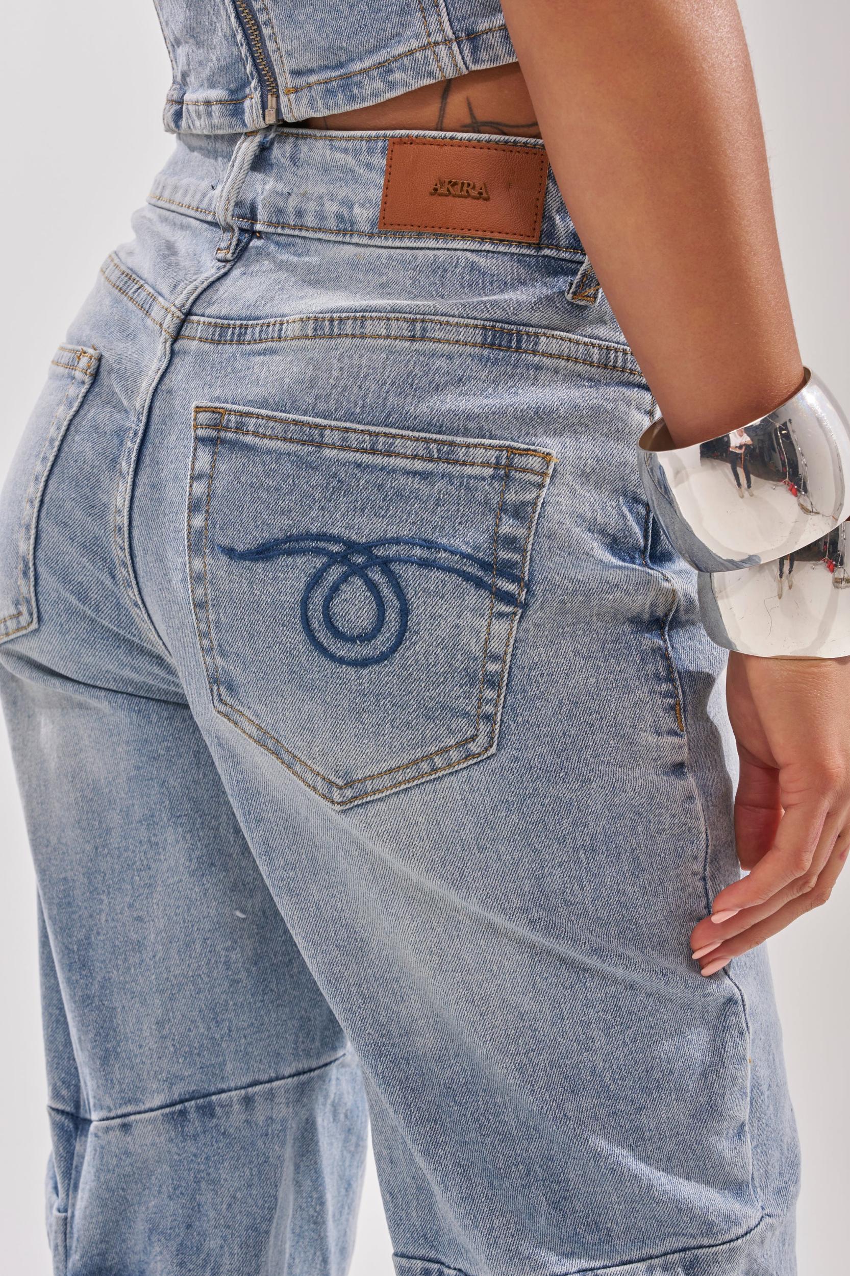 The AKIRA Label On Your Mind Stacked Denim is crafted from semi-stretchy denim in a light-wash colorway. It features a high-rise first, functional belt loops, a classic five-pocket design with embroidered accents on the rear, a button-zip front closure, and a stacked, ultra-ruched construction on the pant legs. Complete with a skinny-leg silhouette. Style with the coordinating AKIRA Label On Your Mind Denim Corset, platform pumps, and a clutch for a finished look. - 99% Cotton 1% Spandex- Slight Stretch- Imported (all measurements approximate from size small)- 10” Rise- 34” Inseam- Model is 5’7” and is wearing size smallProduct ID: 1074537