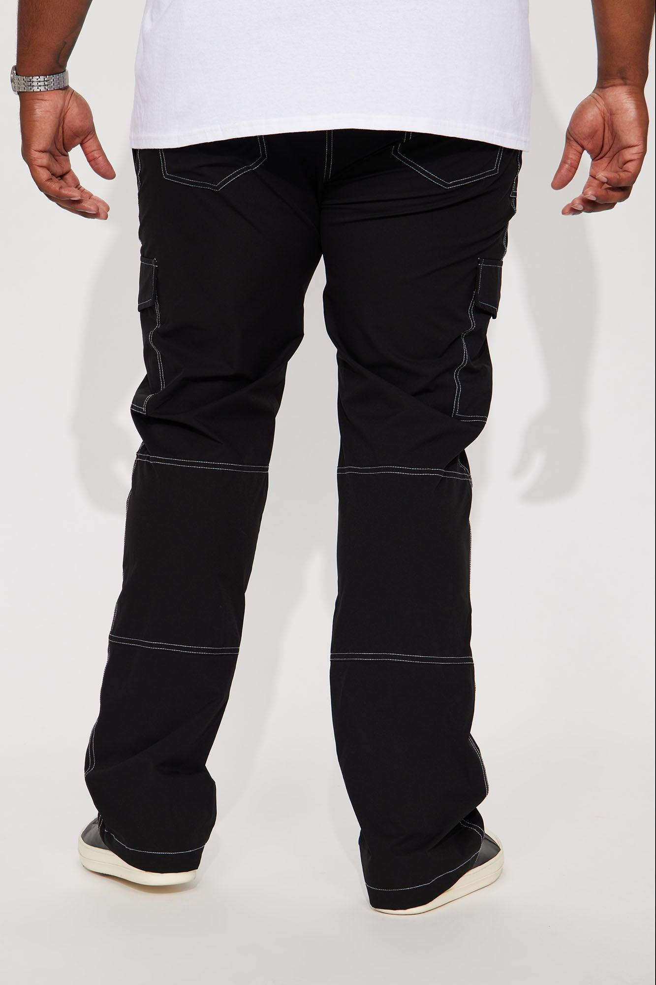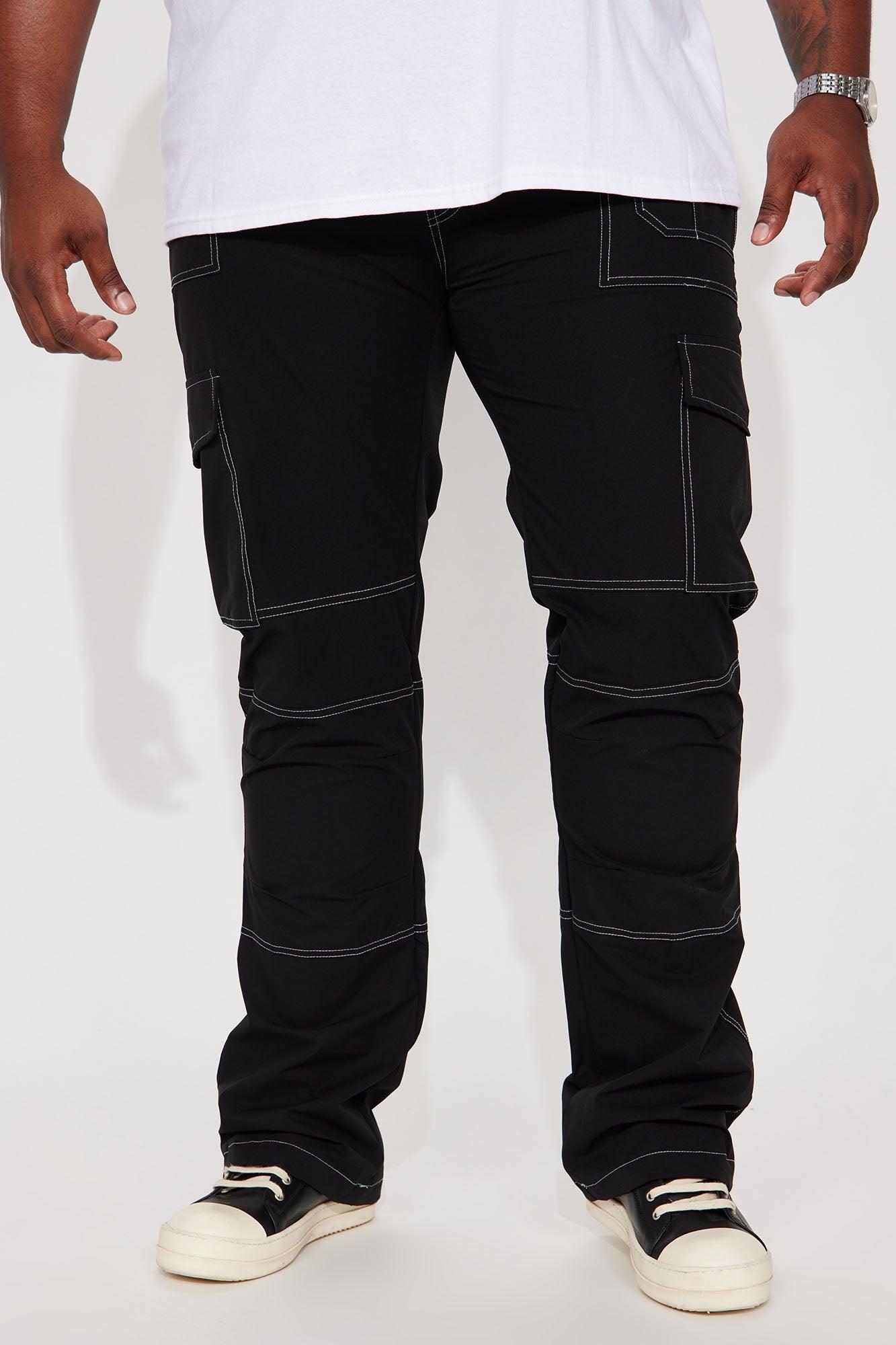 Available In Black. Stacked Flare Fit Zip Fly Button Closure Stitched Detail Cargo Pockets Back Pockets Shell: 100% Polyester Imported California Proposition 65 WARNING: Cancer and Reproductive Harm - www.P65Warnings.ca.gov.