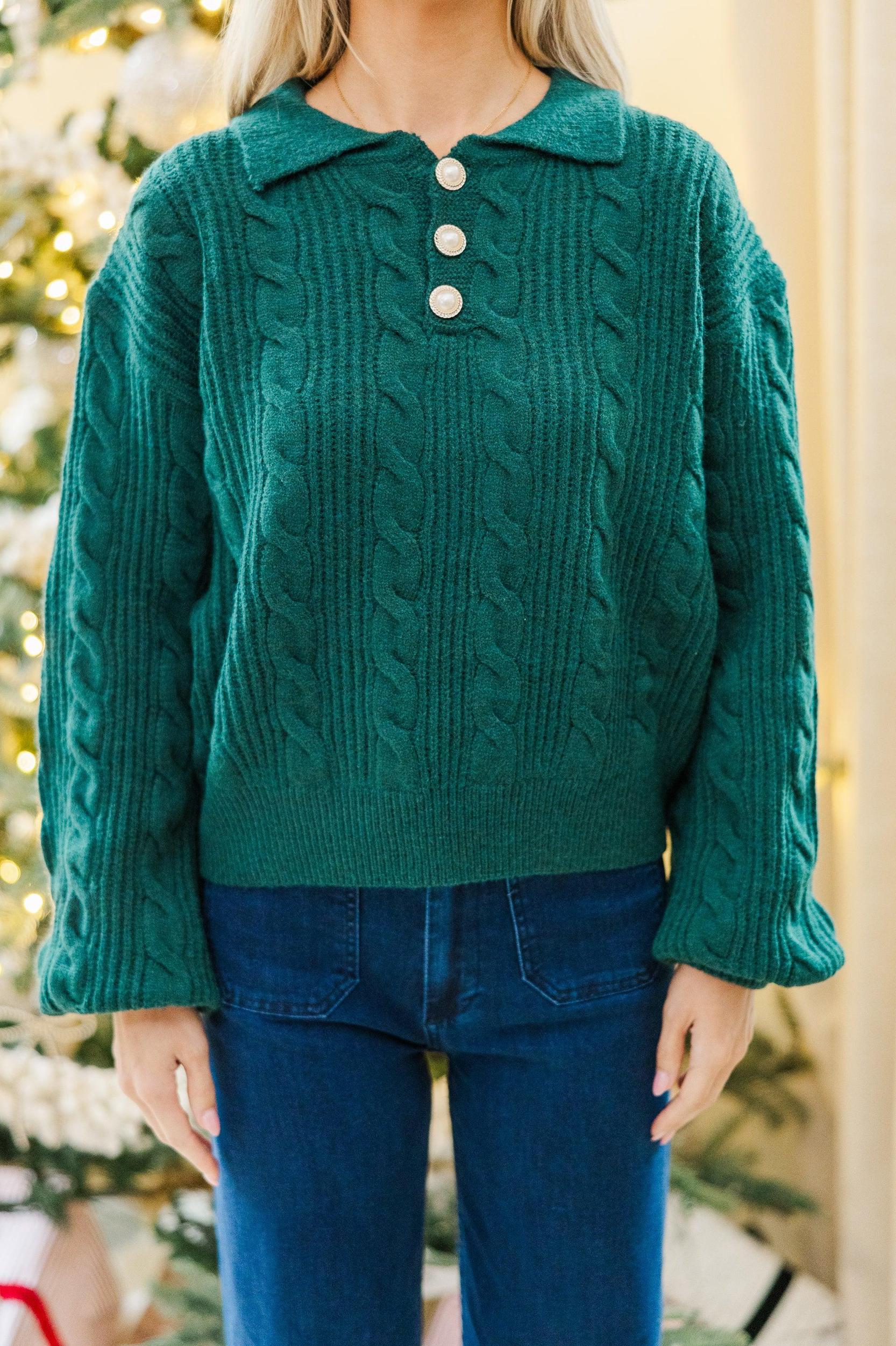 Embrace timeless elegance with our solid cream cable knit sweater, designed to add a touch of sophistication to your wardrobe. This cozy piece features a classic cable knit pattern that offers both texture and warmth, making it a perfect choice for chilly days. The charming collar adds a refined detail, while the pearl button accents elevate the overall look, giving this sweater a chic and polished finish. Collared partial button down neckline Long bubble sleeves Cable knit fabric Generous stretch Baileigh is wearing the small.