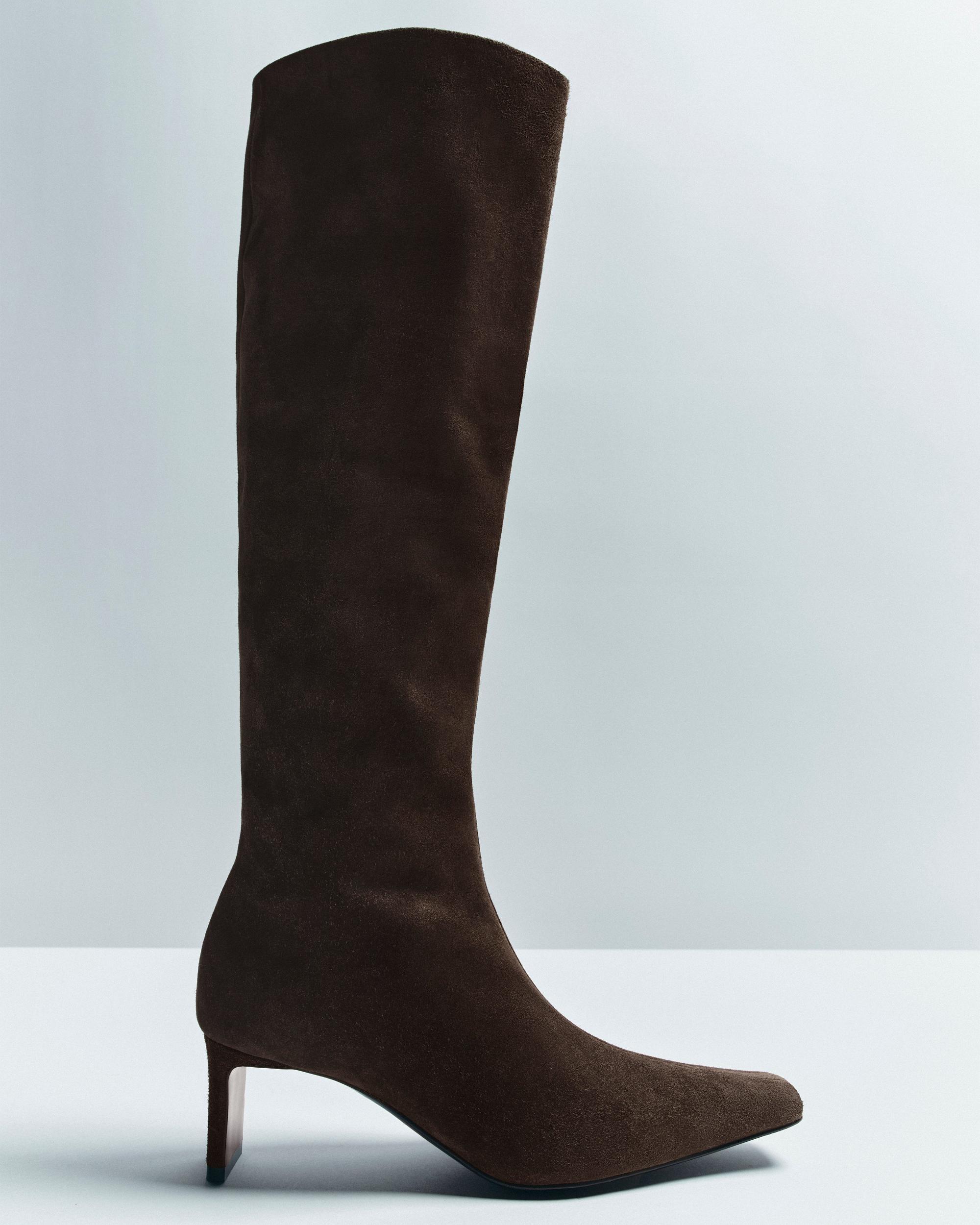 Shaped by a circular side seam, this off-the-shoulder top is sculpted of smooth, crisp silk gazar. Raw-edged collar and concealed zipper at back.