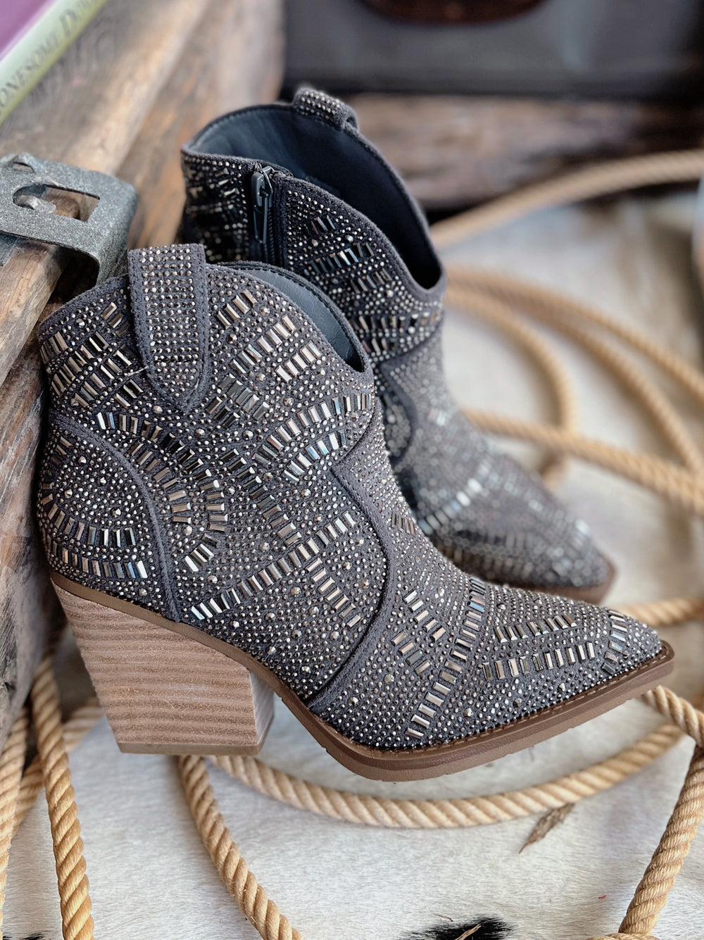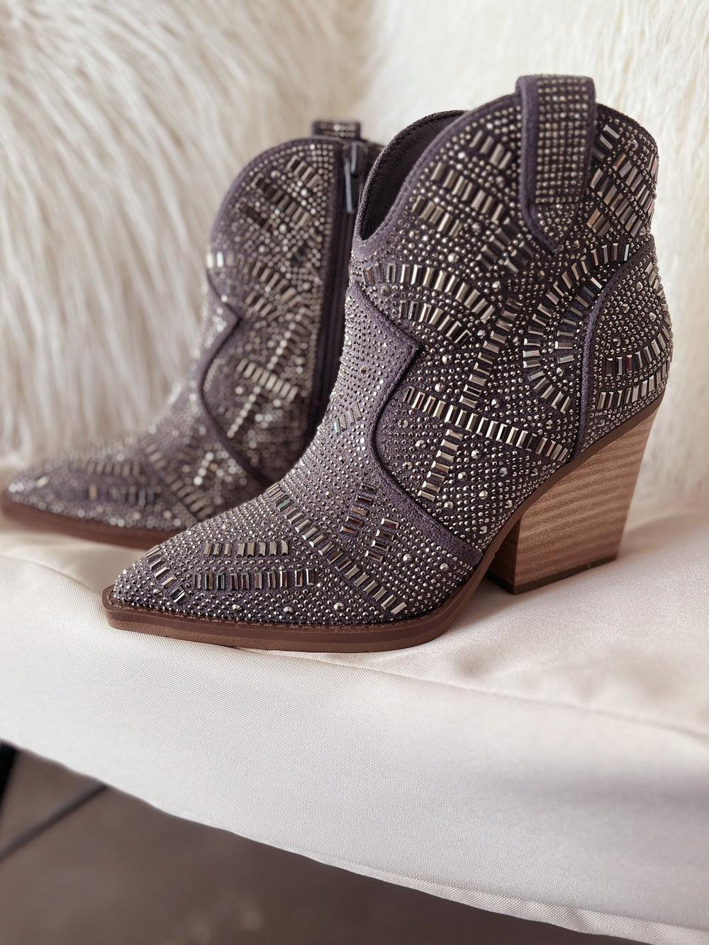 The One Day Grey Maze of Life Booties are your shortcut to style! With a 3" heel, pointed toe and grey rhinestone maze design details, you'll strut in confidence and find your way through life with ease. Plus, the inside zipper means you won't find yourself endlessly searching for a way out. Look great, feel great!
