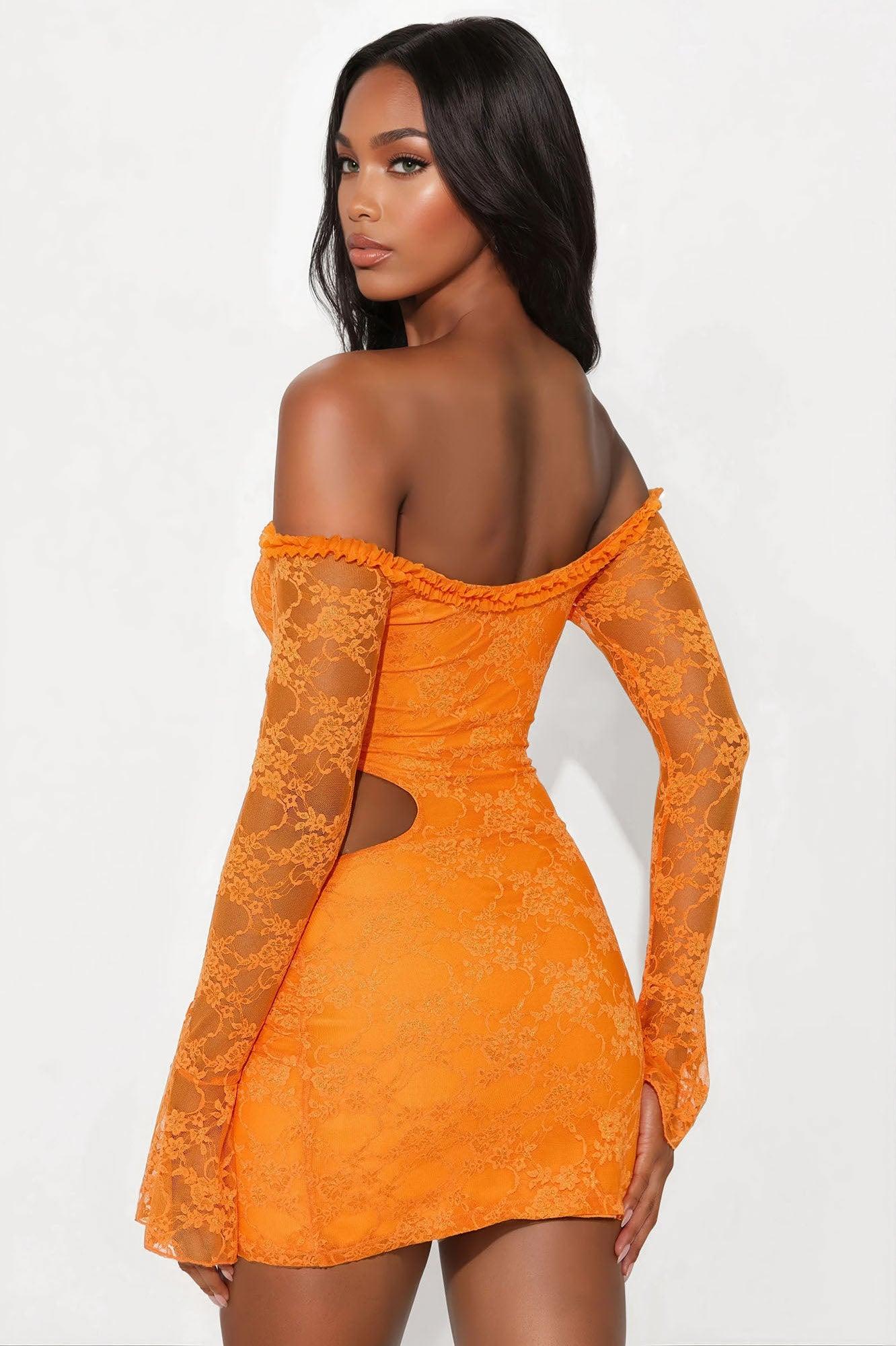One Of One Lace Mini Dress - Orange Female