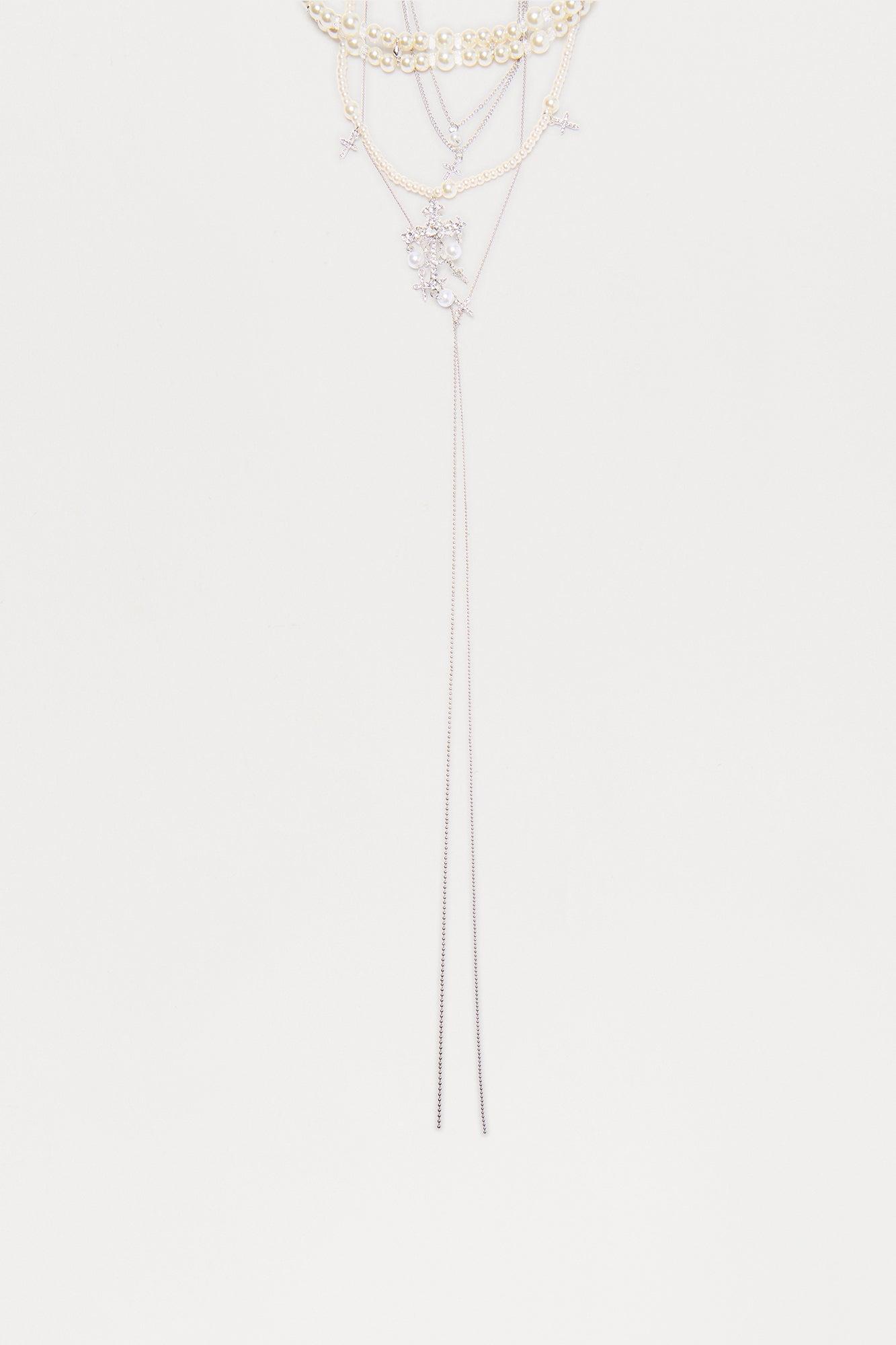 Available In Silver. Layered Necklace Rhinestone Detail Pearl Detail Lobster Clasp Closure Imported California Proposition 65WARNING: Cancer and Reproductive Harm - www.P65Warnings.ca.gov.