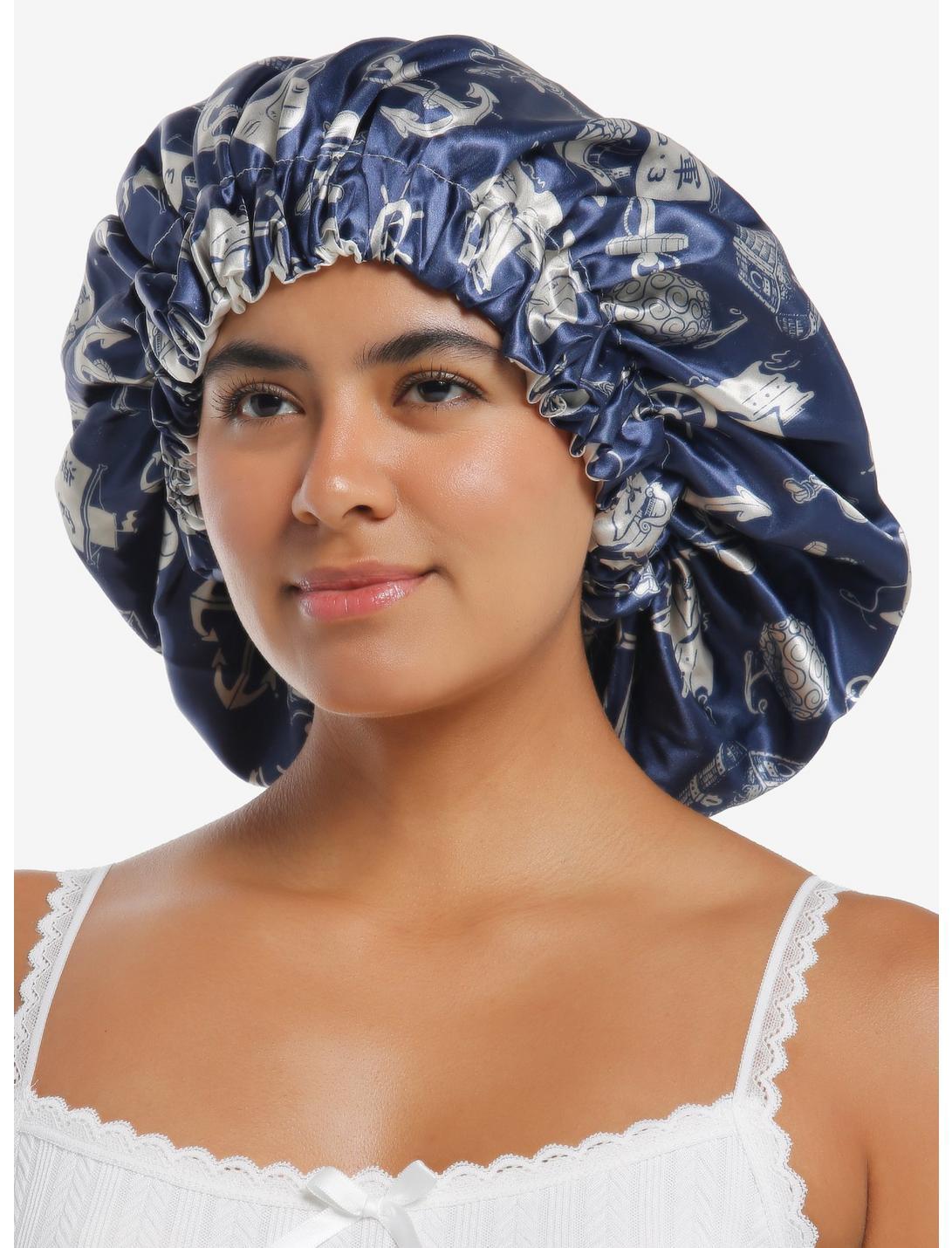Protect your hair while you sleep with this One Piece satin bonnet! Featuring an allover print of anchors, Devil Fruits, the Jolly Roger and more. Comes with a smooth elastic band.11'' x 9 1/2''PolyesterImported