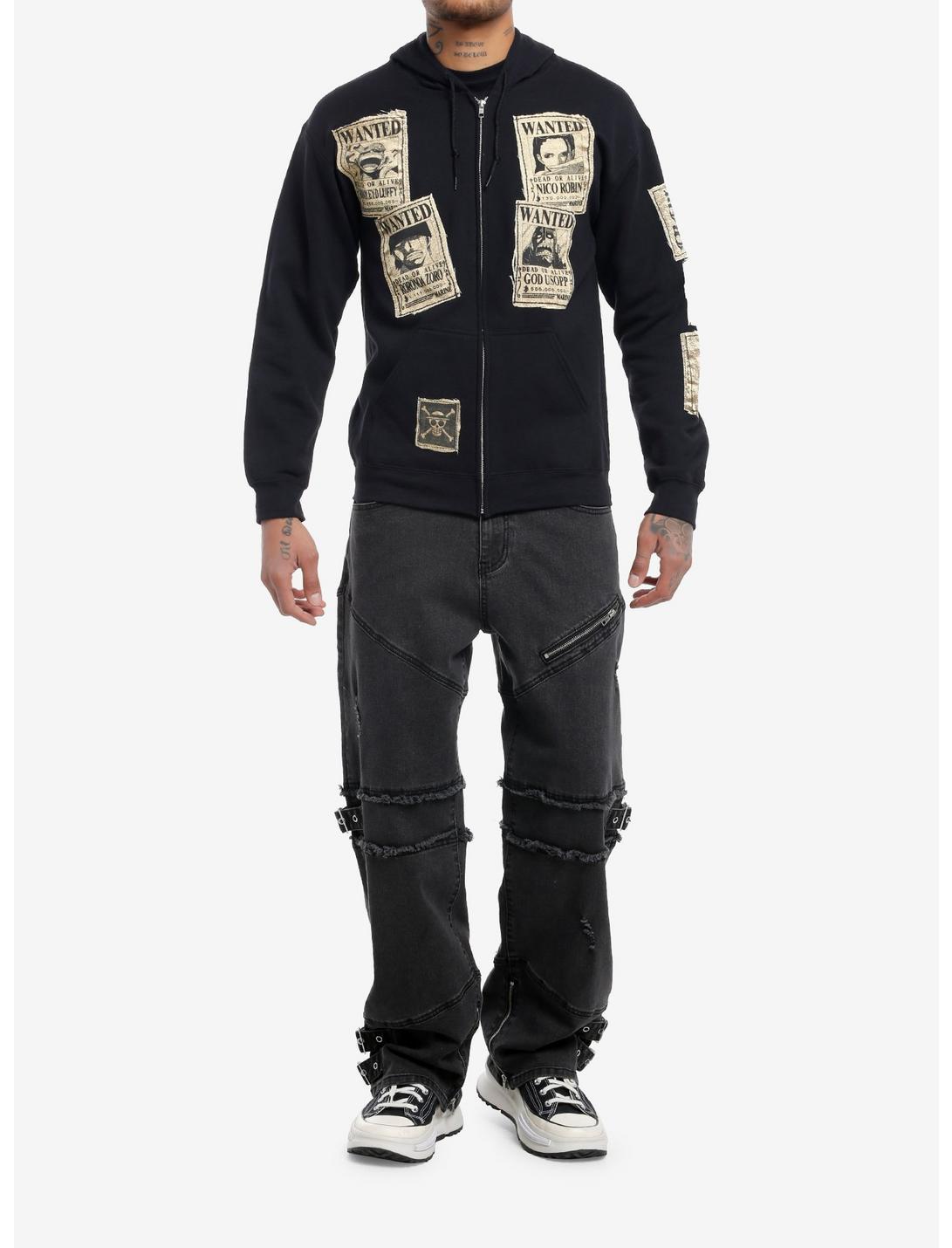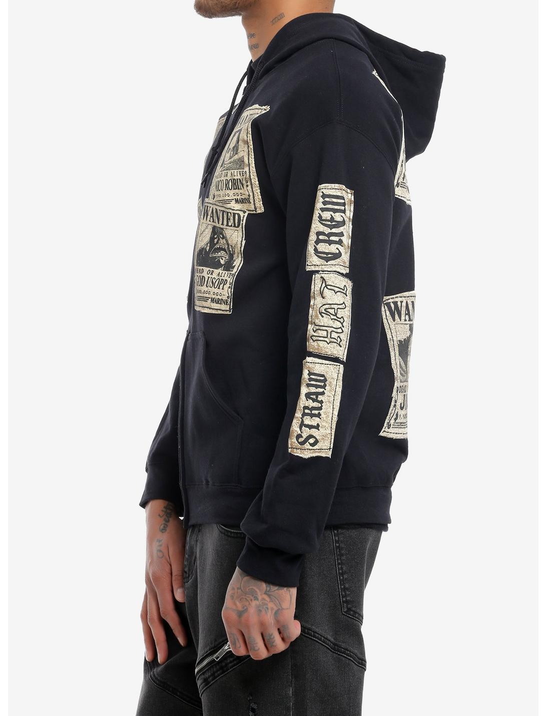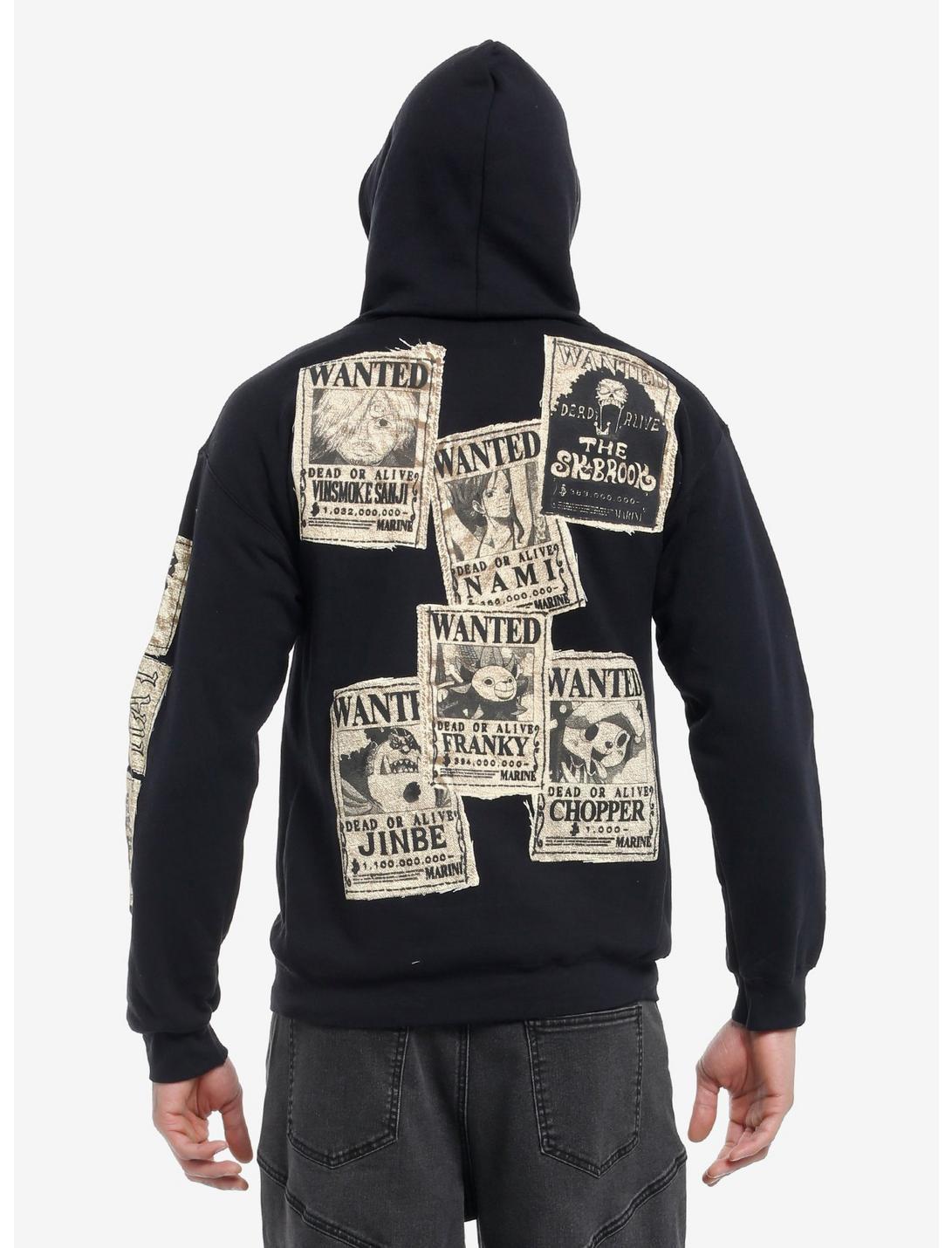 Wanted: this One Piece hoodie! Rep the Straw Hat Pirates in a different way: through their Wanted posters! They're featured as textured patches all over the front and back, plus "Straw Hat Crew" on separate patches on the sleeve.50% cotton; 50% polyesterWash cold; dry lowImportedListed in men's/unisex sizesModel is 6'1"Model wears size Medium
