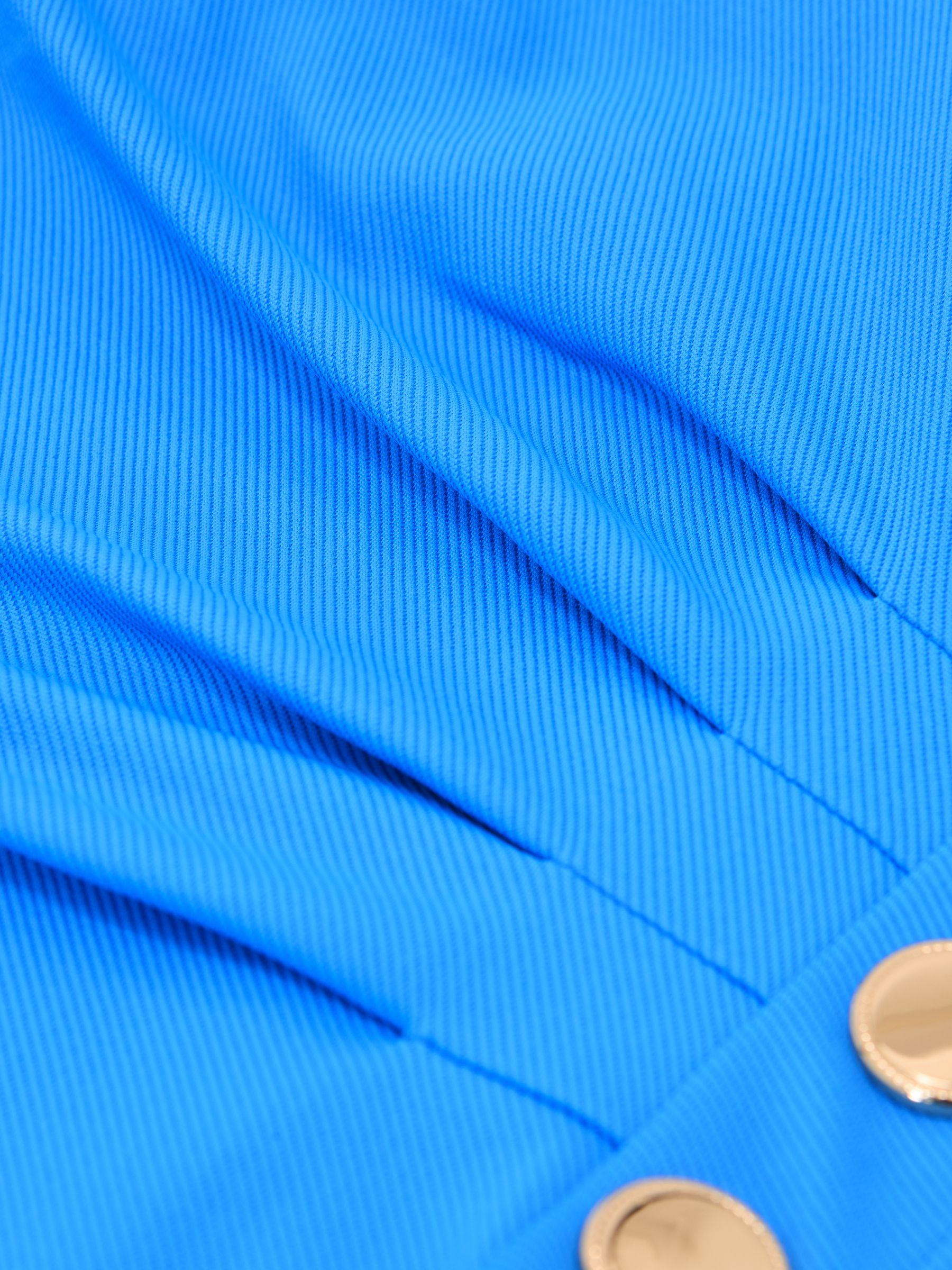 The Palma swimsuit is made from double-layer ribbed fabric with powermesh for shaping. It’s a one-shoulder silhouette with decorative buttons and side ruching. Powermesh for sculpting and shape-enhancing. Double-layer ribbed fabrication. One-shoulder design. Decorative gold-tone buttons. Side ruching. Removable padding. High-leg cut. Medium coverage. The model is wearing a size 8. Measurements of Model: 5ft9 / 175cm.