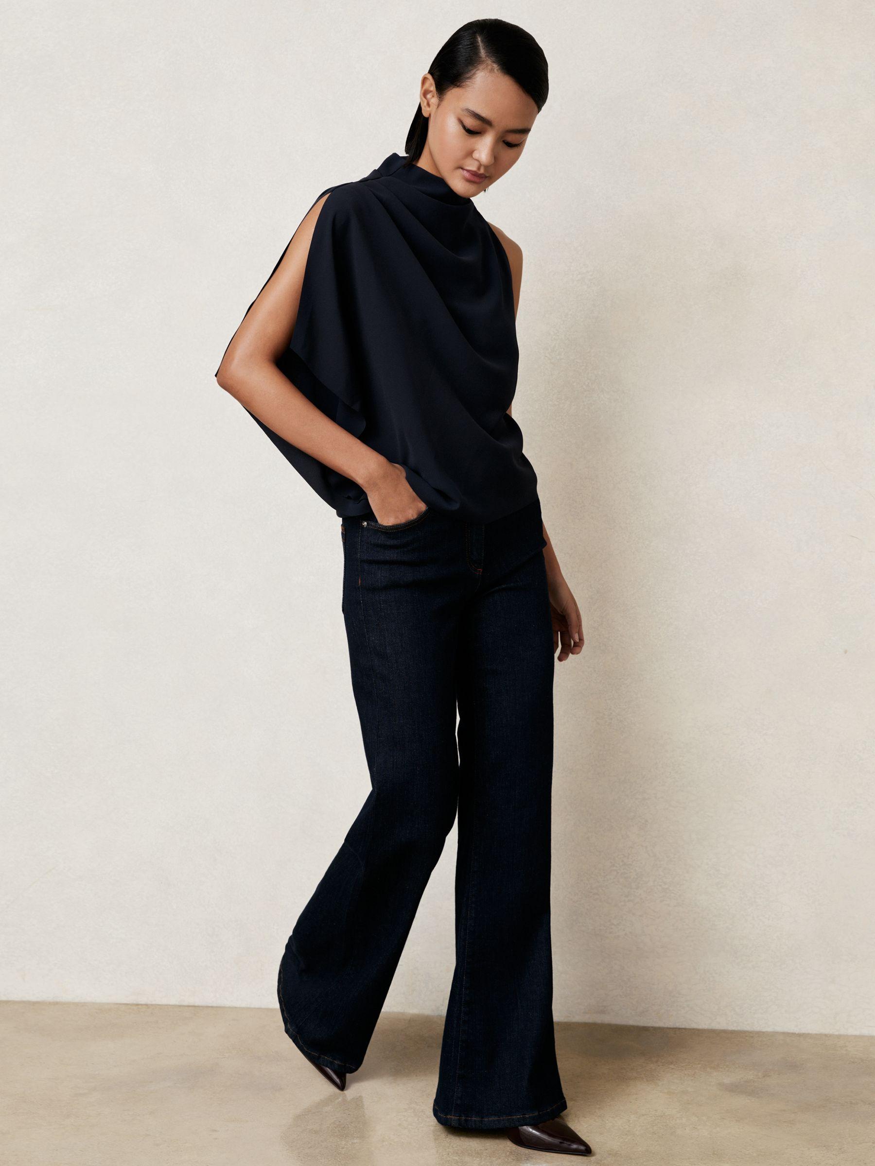 One-Shoulder Draped Top in Navy